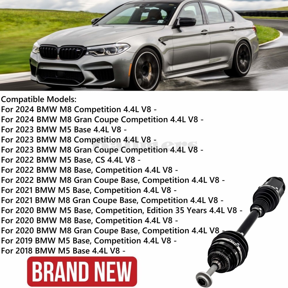 OE Part Number: 31608062093 Compatible Models: For 2024 BMW M8 Competition 4.4L V8 - For 2024 BMW M8 Gran Coupe Competition 4.4L V8 - For 2023 BMW M5 Base 4.4L V8 - For 2023 BMW M8 Competition 4.4L V8 - For 2023 BMW M8 Gran Coupe Competition 4.4L V8 - For 2022 BMW M5 Base, CS 4.4L V8 - For 2022 BMW M8 Base, Competition 4.4L V8 - For 2022 BMW M8 Gran Coupe Base, Competition 4.4L V8 - For 2021 BMW M5 Base, Competition 4.4L V8 - For 2021 BMW M8 Gran Coupe Base, Competition 4.4L V8 - For 2020 BMW M5 Base, Competition, Edition 35 Years 4.4L V8 - For 2020 BMW M8 Base, Competition 4.4L V8 - For 2020 BMW M8 Gran Coupe Base, Competition 4.4L V8 - For 2019 BMW M5 Base, Competition 4.4L V8 - For 2018 BMW M5 Base 4.4L V8 - Home Payment Shipping Return Policy About Us Contact Us Feedback Title Other Catalytic Converter Shock Absorbers Struts Other Fuel Pump 31608062093 New Front Left Driver Side Shaft Axle for 2018-2022 BMW F90 M5 AWD Front Left Driver Side Shaft Axle 31608062093 for BMW F90 M5 AWD Only 18-22 Specification: Condition: NEW Type: Shaft Axle Warranty: 12 Month Warranty & 30 DAYS Free Return Fitment Type: Direct Replacement OE Part Number: 31608062093 Compatible Models: For 2024 BMW M8 Competition 4.4L V8 - For 2024 BMW M8 Gran Coupe Competition 4.4L V8 - For 2023 BMW M5 Base 4.4L V8 - For 2023 BMW M8 Competition 4.4L V8 - For 2023 BMW M8 Gran Coupe Competition 4.4L V8 - For 2022 BMW M5 Base, CS 4.4L V8 - For 2022 BMW M8 Base, Competition 4.4L V8 - For 2022 BMW M8 Gran Coupe Base, Competition 4.4L V8 - For 2021 BMW M5 Base, Competition 4.4L V8 - For 2021 BMW M8 Gran Coupe Base, Competition 4.4L V8 - For 2020 BMW M5 Base, Competition, Edition 35 Years 4.4L V8 - For 2020 BMW M8 Base, Competition 4.4L V8 - For 2020 BMW M8 Gran Coupe Base, Competition 4.4L V8 - For 2019 BMW M5 Base, Competition 4.4L V8 - For 2018 BMW M5 Base 4.4L V8 - Package: 1 X Front Left Side Axle Shaft ( As shown in the picture ) Terms of sales Delivery details Payment About us Contact us Terms of sales If you are not sure about the compatibility, or you are looking for other car parts, just contact us. We are happy to offer any help. Bellow information will help: VIN(Vehicle Identification Number), detailed car model, part number and photos of the parts. as the information in the " vehicle compatible chart" section above is generated by eBay Motors and not from us. 📣30-day window for returns and exchanges for reason other than defect. 📣Standard 1 year warranty on all parts except as noted. 📣 We do not warranty for improper installation or usage after time of purchase. 📣 Please make sure your address and contact information is accurate and correct. 📣 Except the product costs, international buyers may need to pay additional import taxes to local customs. Our prices do NOT include taxes. Delivery details 👉Domestic orders are usually shipped within 2 working days. Delivery is between 2-5 business days. (except holidays and weekends). Sometimes the carrier may not update the tracking in time, so we arranged staff to follow up the tracking status of all orders. If there is any abnormality, we will provide solutions to guarantee the rights and interests of customers. (Domestic orders will be shipped FREE of charge via UPS/ FedEx/ USPS at our discretion.) 👉Outside the United States, orders will be shipped within 3 working days and delivered within 2-7 working days. Apart from the product cost, international buyers may have to pay additional import duties to the local customs. Our price does not include tax. (International orders will be shipped via DHL, FedEx, UPS) Payment Please use the eBay checkout system when paying for your order. Immediate payment is required for all orders. About us We are a leading auto parts supplier with our own supply chain system. Our products are produced according to the original factory standard, with high quality and a competitive price, and the warranty period is one year. Our Advantage: Expert Guidance and Support: Our team of knowledgeable and experienced professionals is here to provide expert guidance and support. Exceptional Quality Assurance: Quality is our top priority. All our auto parts undergo rigorous testing and quality assurance processes to meet or exceed industry standards. Competitive Pricing and Value : We understand the importance of competitive pricing without compromising on quality. Our commitment is to provide customers with value for their money, offering affordable auto parts that don't sacrifice performance or reliability. Specialized in automotive shock absorber and catalytic converter parts, fuel pump, Transfer Case, ignitioncoil, Vacuum Pump, Repair kit, etc. Contact us ❤️ Communication is the best way to solve the problem. If you have any problems after purchasing, please contact us in time, before opening return or case 🔔Please contact us before committing to buy if you have any questions about the applicability, warranty or conditions of the product. ⚠️Notes: Due to the time difference, we may not be able to reply in time. Please be patient. Please don't worry. We will definitely reply your email within 24 hours. Main Brand
