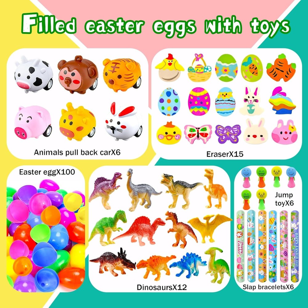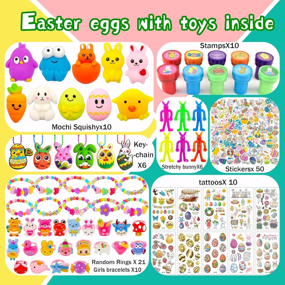 Free eBay listing template designed by dewiso.com 318 pcs Easter Eggs 100 pack Easter Eggs Bulk wtih 218 Toys inside Small Toys for Easter Egg Easter Basket Stuffers Hunt Party Favors for Kids Toddlers Boys Girls FREE AND FAST SHIPPING! About this item 🐣Super Value Pack : 100 easter eggs for kids with toys inside, a variety of 218 pcs toys: , 6 slap bracelets, 6 animal pull back cars, 15 easter themed erasers, 10 mochi squishy, 6 stretchy easter bunny, 6 jump toy, 10 stamps, 12 mini dinosaurs toy, 6 easter keychains, 10 pcs temporary tattoos for kids, 100 pcs easter stickers and 21 cute rings and 10 bracelets for little girls. 🐇Safe and Durable: These plastic Easter eggs for kids are made of high-quality plastic that is non-toxic and BPA-free. They are easy to open and close, and won't break or fade easily. All bulk Easter eggs and Easter toys have a soft surface and smooth edges, ensuring your child can play safely. These high-quality plastic eggs are suitable for both indoor and outdoor play,not for kids under 3 years old. 🎊Easter gift for all occasions : Our stuffed easter eggs suitable for many occasions such as kids easter basket stuffers,easter egg fillers, easter goody bags stuffers for kids, easter trinkets, easter treats for kids, easter party favors, easter party supplies, easter prizes, eggs for easter egg hunt, classroom rewards, carnival prizes in bulk, easter eggs filled with toys for kids, stuffed easter eggs, easter baskets for kids. 🍭FUN EDUCATIONAL TOYS: These Easter eggs with toys are not only fun to play with, but also provide interactive activities that develop social skills and improve eye-hand coordination. Kids will be delighted when they discover the prizes filled with colorful Easter eggs. 🎁The Perfect Easter Gift: Give your child the perfect gift and make this Easter unforgettable. Our Easter eggs bulk are made of premium quality, ensuring a delightful and magical experience for children, making them the ultimate Easter gift. Make Easter more exciting, fun, and engaging for your child. Product We offer a 30-Day Return Policy on items which you are not completely satisfied with. You have the option for a full-refund or an exchange of the item. No returns are available on items shipped outside of the US . Shipping We offer Free Shipping to the US and ship within 2 business days of payment, usually sooner. We use UPS express shipping. That's why your products are usually delivered within 3 days . Contact We try our very best to make sure every customer is completely satisfied. If there's a problem , message us! We're happy to help. 24/7 live chat available.
