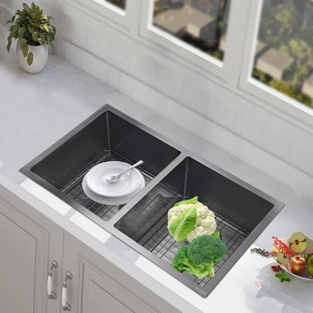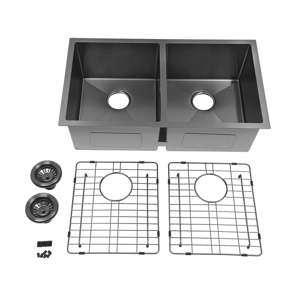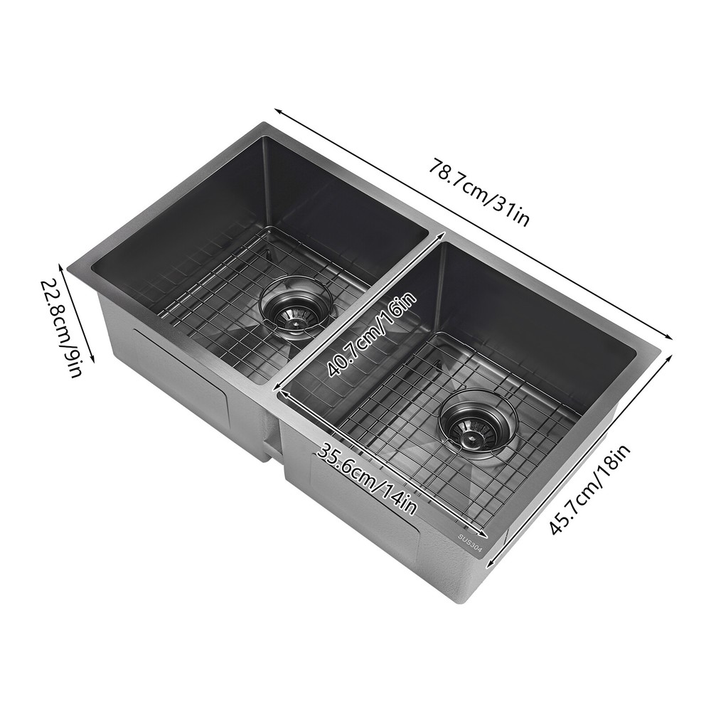 31''x18'' Double Bowl Composite Drop-in Kitchen Sink 2 Bowl Set Stainless Steel Description This double-bowl kitchen sink is made of high-quality material and adopts exquisite workmanship to ensure good performance and long service life. The large capacity design allows you to wash dishes and prepare food at the same time, effectively improving the efficiency of kitchen use. This beautiful and practical kitchen sink is the key to creating an ideal kitchen space. It will be the new start of your new life in the kitchen! Key Features Build to Last: Made of 304 stainless steel, with CNC welding and nano-coating processes, this product is rust-resistant , corrosion-resistant , and deformation-resistant , ensuring your long-term use. Large Capacity: Two large bowls provide you with ample space to accom modate and clean a large amount of tableware (not included), improving kitchen efficiency. Moreover, the 2 separate bowls are equipped with separate drain holes so they can be used independently. You can wash different dishes and vegetables at the same time without interfering with each other. High Drainage Efficiency: The X-shaped water guideline enables rapid drainage, which can reduce blockage. Thoughtful Design: Soundproofing pads can effectively reduce noise and will not disturb your life. Generous Appearance: The black color scheme and smooth lines give this product a generous appearance, making it easy to blend into your kitchen. Convenient Cleaning: The smooth surface and rounded corners are not easy to accumulate stains, so you can easily clean it with w ater and cloth (not included). In addition, the thickened nano-coating can reduce oil adsorption, prevent bacterial growth, and make it easier to clean. Customer Service: We stand behind all our guests and look forward to assisting you with your purchase. It is our pleasure to answer your confusion and questions. The end of the story between us is definitely not "we sell and you buy". Details Drain Rack: It can be used to drain water from bowls and chopsticks (not included). Filter: It can be used to filter residue. You can press it down to store water. Application It can be widely used in homes, restaurants, laundry rooms, basements, bars, kitchens, food trucks, dessert shops, coffee shops, hotels, garages, gardens, etc. for cleaning tableware, vegetables, fruits, etc. Specifications Color: Black Style: Modern Shape: Rectangle Material: 304 Stainless Steel Process: CNC Welding, Nano Spraying Assembly Required: Yes Number of Bowls: 2 Single Bowl Size(L*W): 35.6*40.7cm/14*16in Overall Product Size: 78.7*45.7*22.8cm/31*18*9in Pakage Size: 84*51*29cm/33.07*20.08*11.42in Gross Weight: 9kg/19.84lbs Net Weight: 8kg/17.64lbs Package Included 1* Double Bowl Sink 2* Drain Racks 2* Filters All Accessories for Assembly Notes Please check the size carefully before ordering. Please do not scratch its surface with sharp objects to obtain a longer service life. If you want to get a better installation result, we recommend that you hire a professional worker to install it. Please allow the slight color difference caused by the shooting light and 1-3cm error due to manual measurement, and make sure you do not mind before you order. Payment Delivery details Terms of sales About us Contact us Payment We accept ebay payment 。 Fees such as import duties, taxes are not included in the item price or shipping costs. These charges are the buyer's responsibility. Delivery details Shipping: 2-9 working days to: USA Terms of sales We maintain high standards of excellence and strive for hundred percent customer satisfaction. Feedback is very important to us. We hope that you contact us immediately before you give neutral or negative feedback, so that we can address your concerns. It is impossible to address issues if we do not know about them! About us Your satis faction is our ultimate goal. We work hard to earn your trust and future business. Our certified technicians have tested each item before shipping. The unit comes with 1 year limited warranty on all manufacturing defects. a) If you receive a defective item, you may return it or ask for a discount. Please contact us within 14 days after you receive the package. b) What you returned must be intact and in its original packaging as re? u. Customer is responsible for shipping costs of the returned item. c) We will cover the cost of shipping back t with the shipping rate indicated in the registration page. We will send you a new unit or refund the full payment you paid. Thank you. Contact us Business Hour Business Hour: Monday To Friday: 8:30 AM to 5:00 PM (Beijing China time) Due to time zones, our reply to your questions may not be immediately. But within above working time, we will reply your email within 24 hours. If it's non-workdays, please kindly be patient and wait till Monday. Please contact us with ebay message. Please feel free to contact us if you have any questions. Monday To Friday: 8:30 AM to 5:00 PM (Beijing China time) Due to time zones, our reply to your questions may not be immediately. But within above working time, we will reply your email within 24 hours. If it's non-workdays, please kindly be patient and wait till Monday. Please contact us with ebay message. Please feel free to contact us if you have any questions. Brand Unbranded MPN Does Not Apply Type Double Sink Item Length 78.7cm/31in Item Width 45.7cm/18in Item Height 22.8cm/9in Color Black Style Modern Shape Rectangle Material 304 Stainless Steel Process CNC Welding, Nano Spraying Assembly Required Yes Number of Bowls 2 Single Bowl Size(L*W) 35.6*40.7cm/14*16in Pakage Size 84*51*29cm/33.07*20.08*11.42in Gross Weight 9kg/19.84lbs Net Weight 8kg/17.64lbs