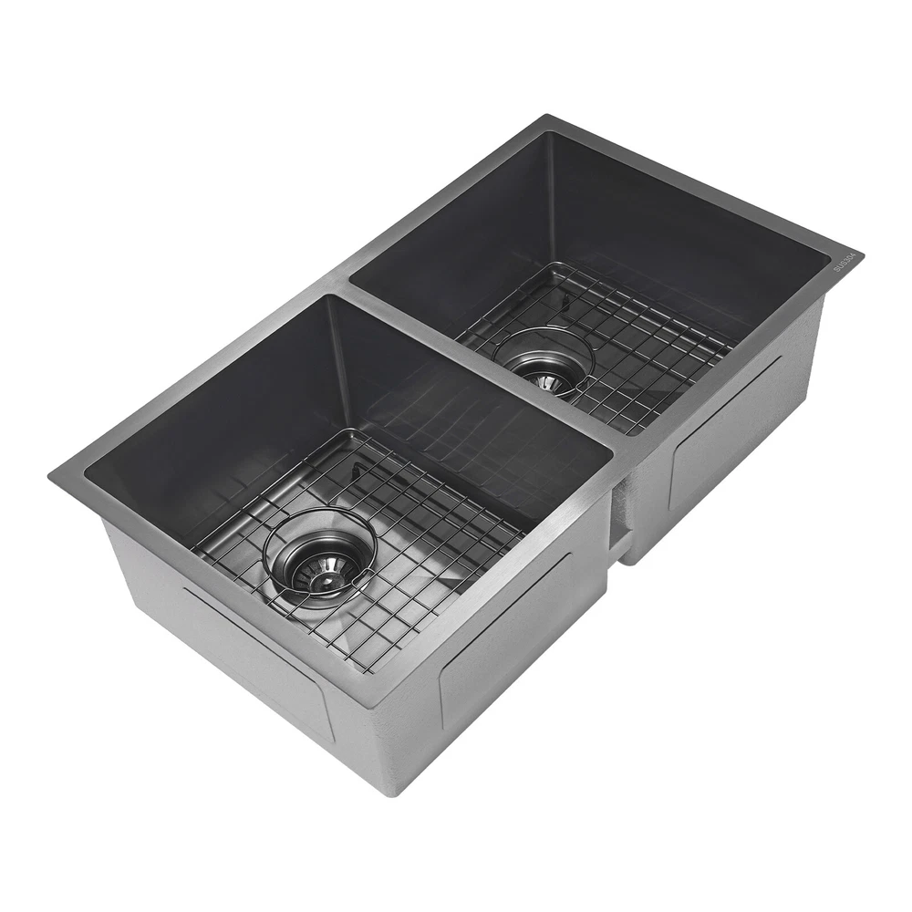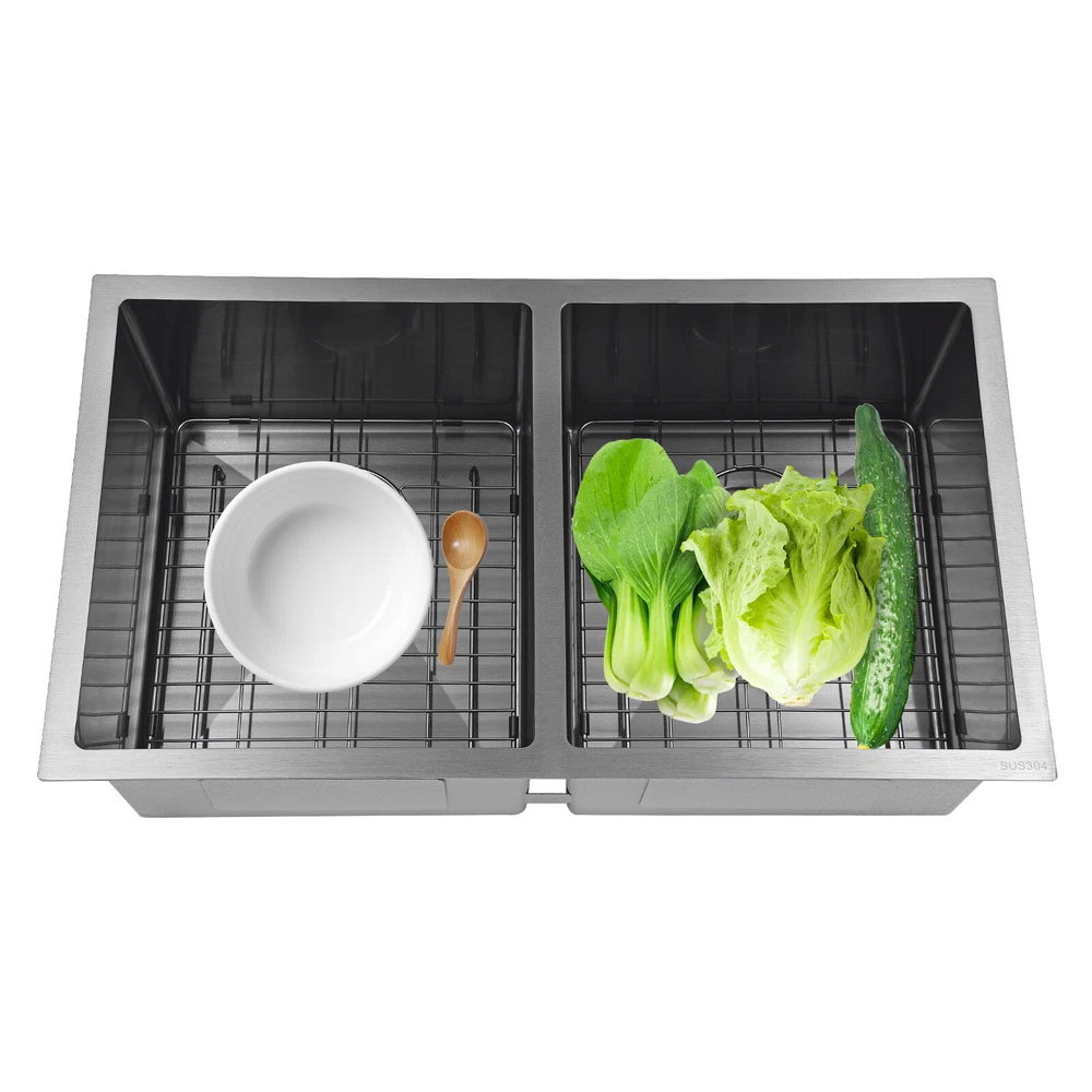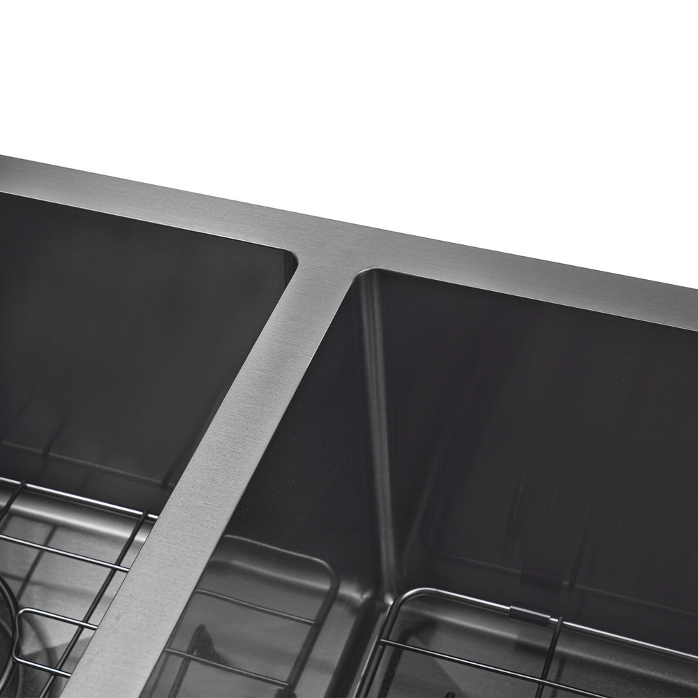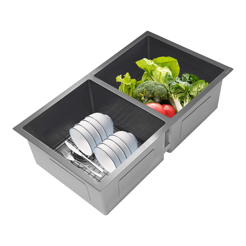 31''x18'' Double Bowl Composite Drop-in Kitchen Sink 2 Bowl Set Stainless Steel Description This double-bowl kitchen sink is made of high-quality material and adopts exquisite workmanship to ensure good performance and long service life. The large capacity design allows you to wash dishes and prepare food at the same time, effectively improving the efficiency of kitchen use. This beautiful and practical kitchen sink is the key to creating an ideal kitchen space. It will be the new start of your new life in the kitchen! Key Features Build to Last: Made of 304 stainless steel, with CNC welding and nano-coating processes, this product is rust-resistant , corrosion-resistant , and deformation-resistant , ensuring your long-term use. Large Capacity: Two large bowls provide you with ample space to accom modate and clean a large amount of tableware (not included), improving kitchen efficiency. Moreover, the 2 separate bowls are equipped with separate drain holes so they can be used independently. You can wash different dishes and vegetables at the same time without interfering with each other. High Drainage Efficiency: The X-shaped water guideline enables rapid drainage, which can reduce blockage. Thoughtful Design: Soundproofing pads can effectively reduce noise and will not disturb your life. Generous Appearance: The black color scheme and smooth lines give this product a generous appearance, making it easy to blend into your kitchen. Convenient Cleaning: The smooth surface and rounded corners are not easy to accumulate stains, so you can easily clean it with w ater and cloth (not included). In addition, the thickened nano-coating can reduce oil adsorption, prevent bacterial growth, and make it easier to clean. Customer Service: We stand behind all our guests and look forward to assisting you with your purchase. It is our pleasure to answer your confusion and questions. The end of the story between us is definitely not "we sell and you buy". Details Drain Rack: It can be used to drain water from bowls and chopsticks (not included). Filter: It can be used to filter residue. You can press it down to store water. Application It can be widely used in homes, restaurants, laundry rooms, basements, bars, kitchens, food trucks, dessert shops, coffee shops, hotels, garages, gardens, etc. for cleaning tableware, vegetables, fruits, etc. Specifications Color: Black Style: Modern Shape: Rectangle Material: 304 Stainless Steel Process: CNC Welding, Nano Spraying Assembly Required: Yes Number of Bowls: 2 Single Bowl Size(L*W): 35.6*40.7cm/14*16in Overall Product Size: 78.7*45.7*22.8cm/31*18*9in Pakage Size: 84*51*29cm/33.07*20.08*11.42in Gross Weight: 9kg/19.84lbs Net Weight: 8kg/17.64lbs Package Included 1* Double Bowl Sink 2* Drain Racks 2* Filters All Accessories for Assembly Notes Please check the size carefully before ordering. Please do not scratch its surface with sharp objects to obtain a longer service life. If you want to get a better installation result, we recommend that you hire a professional worker to install it. Please allow the slight color difference caused by the shooting light and 1-3cm error due to manual measurement, and make sure you do not mind before you order. Payment Delivery details Terms of sales About us Contact us Payment We accept ebay payment 。 Fees such as import duties, taxes are not included in the item price or shipping costs. These charges are the buyer's responsibility. Delivery details Shipping: 2-9 working days to: USA Terms of sales We maintain high standards of excellence and strive for hundred percent customer satisfaction. Feedback is very important to us. We hope that you contact us immediately before you give neutral or negative feedback, so that we can address your concerns. It is impossible to address issues if we do not know about them! About us Your satis faction is our ultimate goal. We work hard to earn your trust and future business. Our certified technicians have tested each item before shipping. The unit comes with 1 year limited warranty on all manufacturing defects. a) If you receive a defective item, you may return it or ask for a discount. Please contact us within 14 days after you receive the package. b) What you returned must be intact and in its original packaging as re? u. Customer is responsible for shipping costs of the returned item. c) We will cover the cost of shipping back t with the shipping rate indicated in the registration page. We will send you a new unit or refund the full payment you paid. Thank you. Contact us Business Hour Business Hour: Monday To Friday: 8:30 AM to 5:00 PM (Beijing China time) Due to time zones, our reply to your questions may not be immediately. But within above working time, we will reply your email within 24 hours. If it's non-workdays, please kindly be patient and wait till Monday. Please contact us with ebay message. Please feel free to contact us if you have any questions. Monday To Friday: 8:30 AM to 5:00 PM (Beijing China time) Due to time zones, our reply to your questions may not be immediately. But within above working time, we will reply your email within 24 hours. If it's non-workdays, please kindly be patient and wait till Monday. Please contact us with ebay message. Please feel free to contact us if you have any questions. Brand Unbranded MPN Does Not Apply Type Double Sink Item Length 78.7cm/31in Item Width 45.7cm/18in Item Height 22.8cm/9in Color Black Style Modern Shape Rectangle Material 304 Stainless Steel Process CNC Welding, Nano Spraying Assembly Required Yes Number of Bowls 2 Single Bowl Size(L*W) 35.6*40.7cm/14*16in Pakage Size 84*51*29cm/33.07*20.08*11.42in Gross Weight 9kg/19.84lbs Net Weight 8kg/17.64lbs