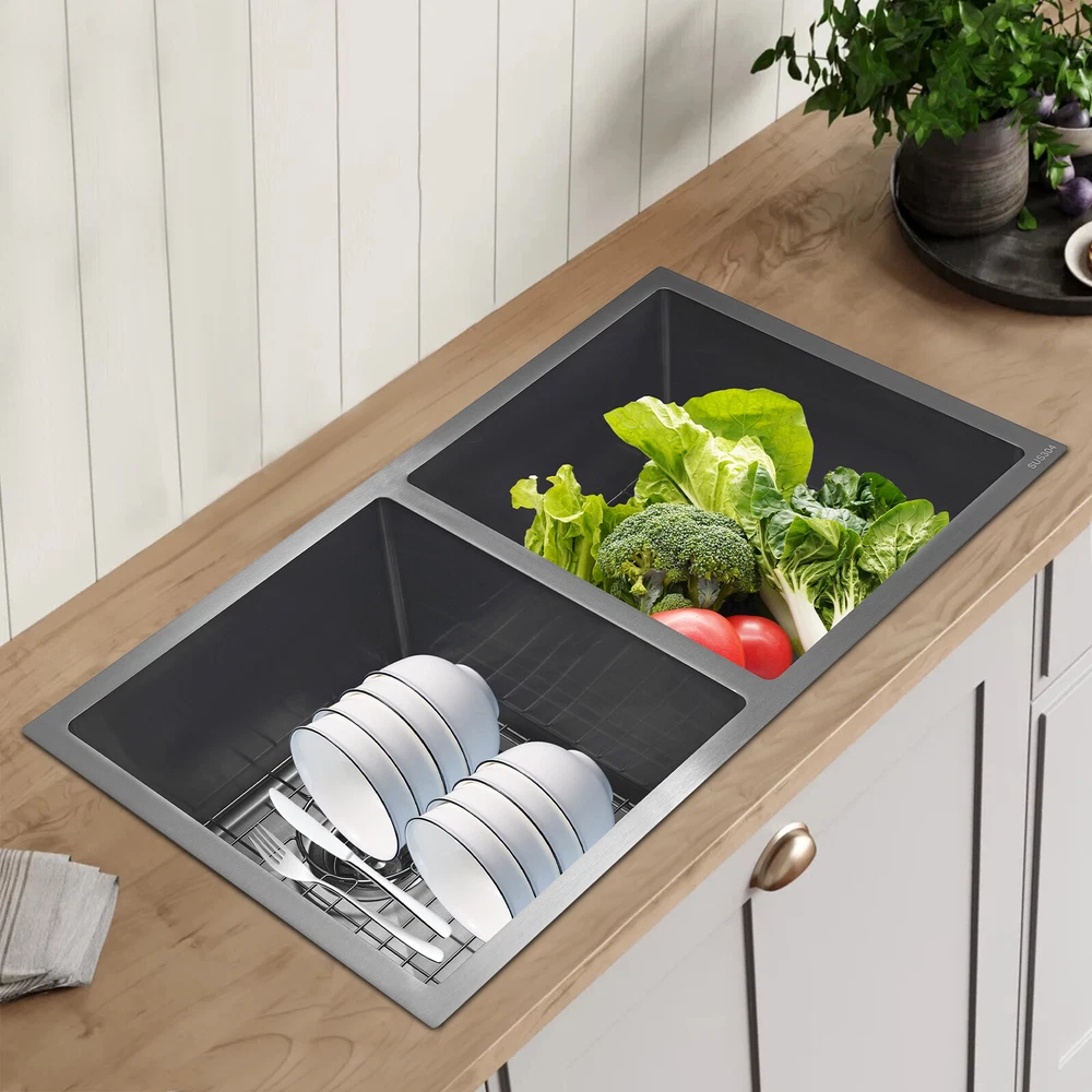 Nano Stainless Steel Double Bowl Topmount Kitchen Sink Scratch-Resistant