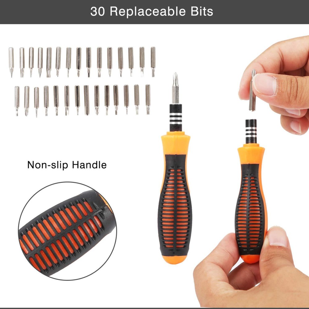 1. This screwdriver set is a game-changer! The magnetic tips make handling tiny screws effortless, and the non-slip grip ensures precision. With 30 high-quality bits, it covers everything from phones to game controllers—no more struggling with stripped screws. The chrome-vanadium steel feels sturdy and durable, and the compact case keeps everything organized. A must-have for DIY repairs!