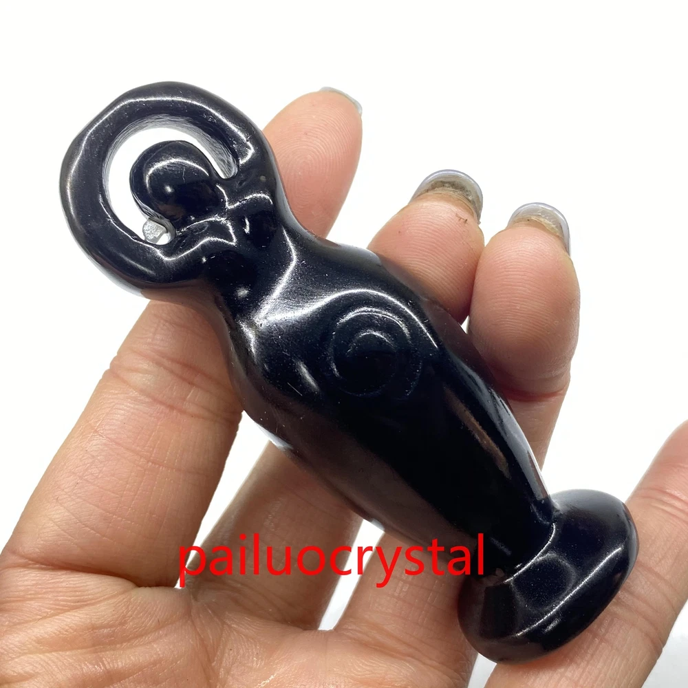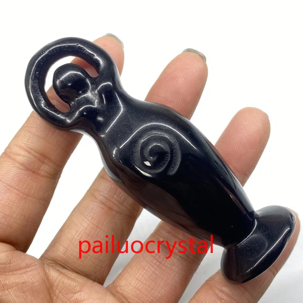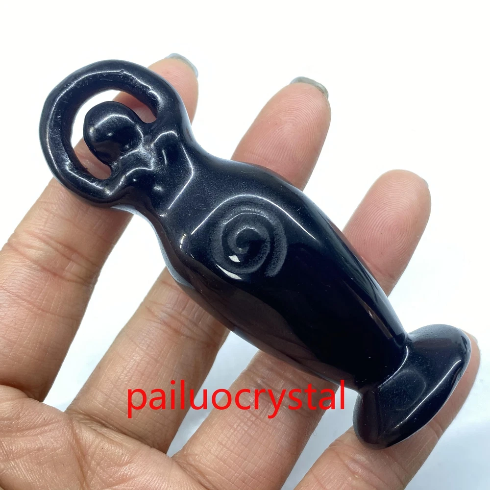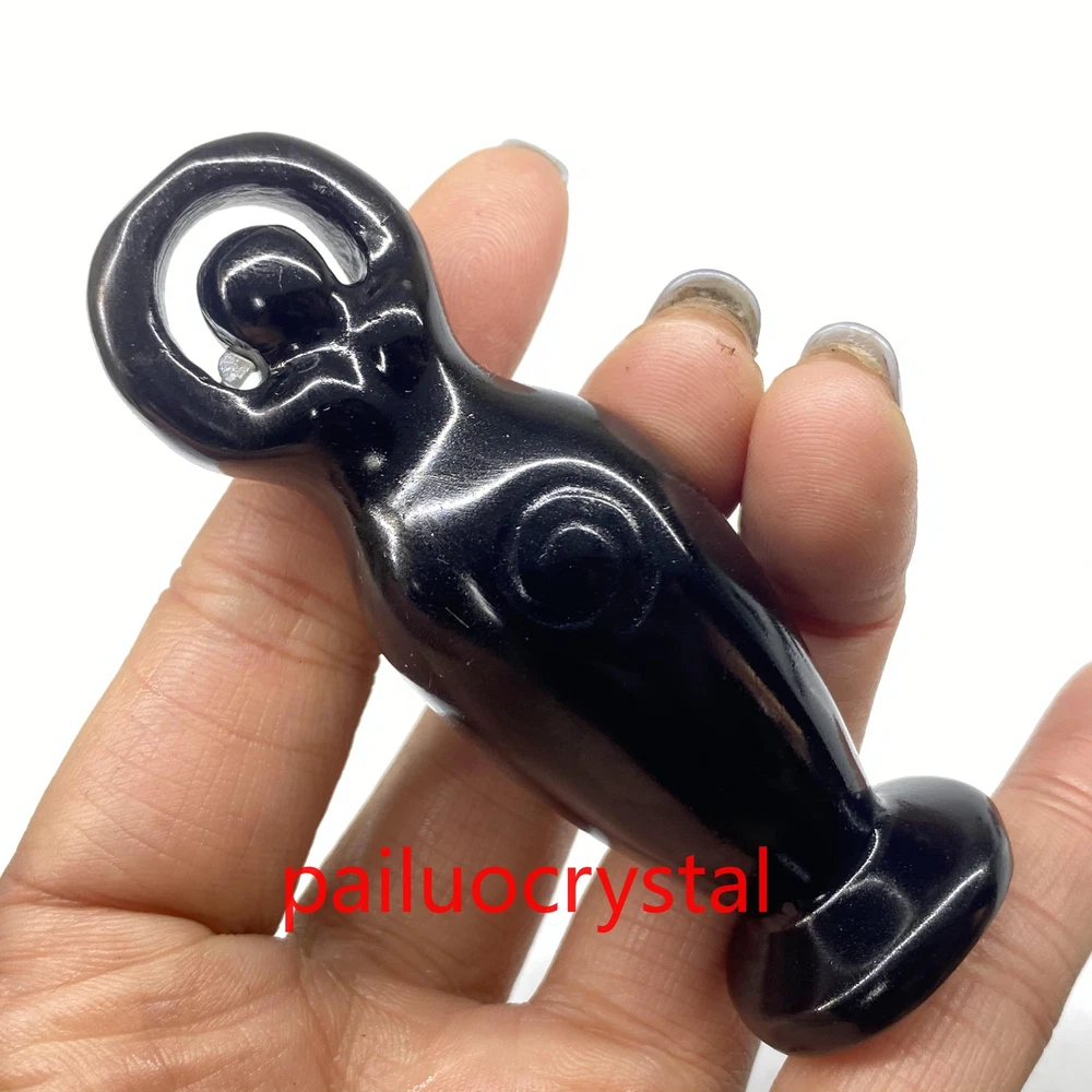 3.2" Natural Obsidian Goddess Totem Skull Quartz Crystal Carved Figurines 1pc