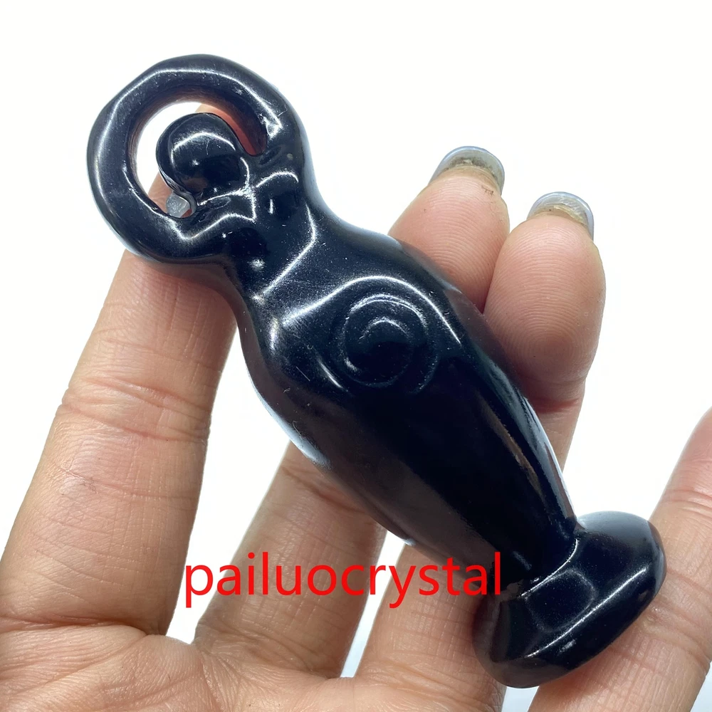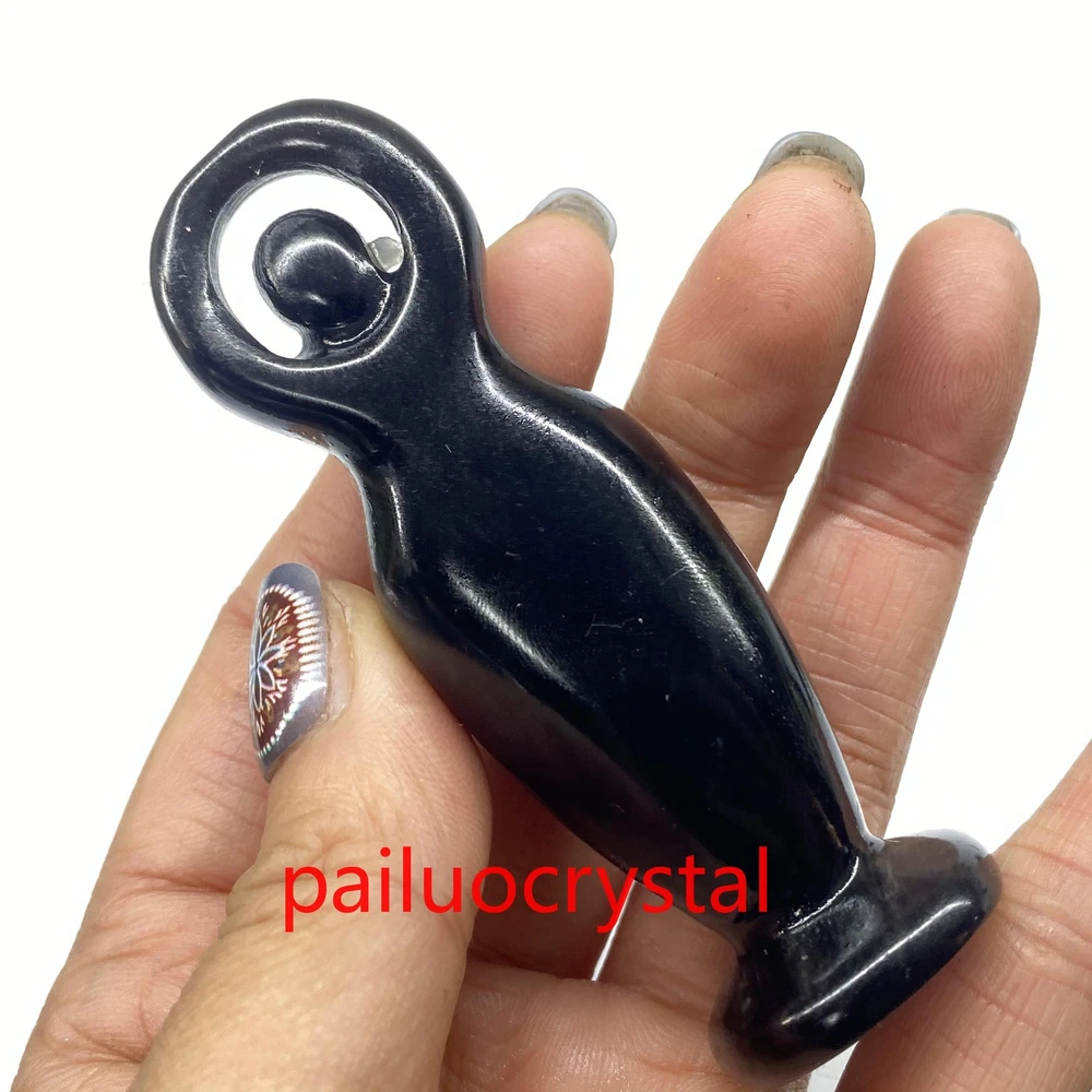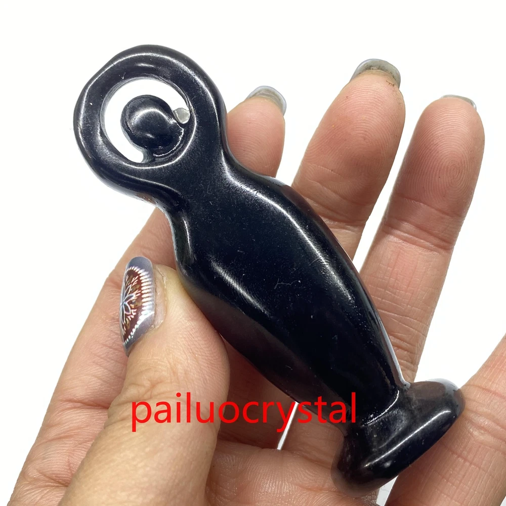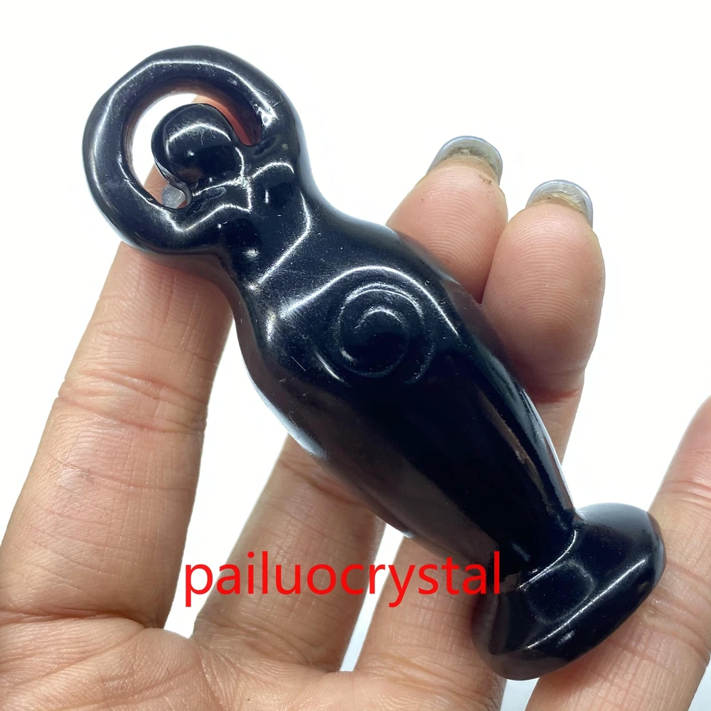 3.2" Natural Obsidian Goddess Totem Skull Quartz Crystal Carved Figurines 1pc