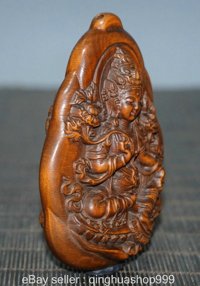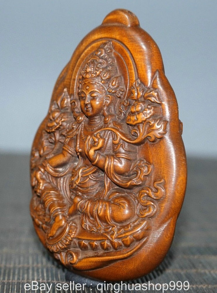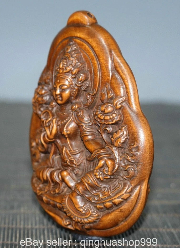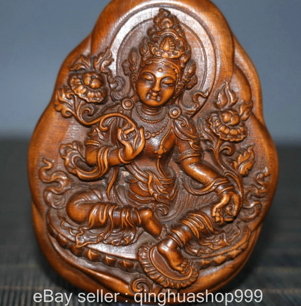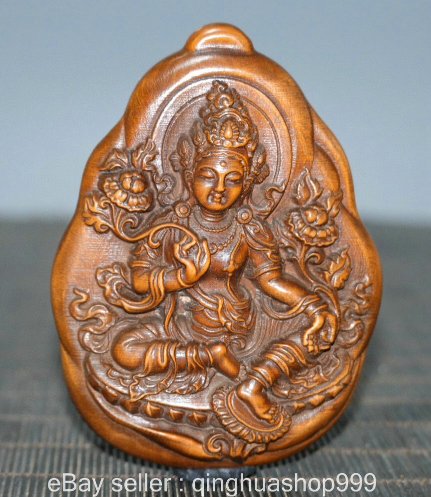 3.2" Old China Buddhism Marked Boxwood Carving 2-sided Green Tara Statue Pendant . Very Rare and high Value for collection ! We are deal business on antique over 30 years now and very happy to showing our collection items on ebay for learning together. In our collection, The difference kinds of Old wood carving Sculpture or Furniture . Natural Jade Carving , Antique Hongshan Culture Statue or Pendant , Shoushan Stone carving or seals. Antique porcelain vase or vessel. Tibet Buddhism Religion Items is our specialty.We experienced, vision, provides the high-quality service for you Please add us to your Favorite seller and enjoy order. Description Note: All the items in my store are genuine and original as ebay photos when you receive so Please bid with confidence and if you have any question please feel free to Email/Message me. Package will be shipped in 24 hours and 30 days return was accepted. 100% payment Guarantee ! If you have any questions, or when you want to submit a dispute case, please send an e-mail first, I will reply within 12 hours, all the problems can be solved, I accept the return money and 100% refund , so that all customers satisfaction is my request. size: Height:3.2 inch Width: 2.4 inch Thickness: 1 inch weight with packaging round 0.2 kg Shipping cost to all over the world in free cost ! Payment Only accept paypal payments. Delivery details shipping to USA : about 7-15 days to arrive. International shipping: about 10-20 days to arrive. Terms of sales A: No, no reason to accept any return. If you need to return it, you must bear the return shipping! We are trying to resolve easily. Please go ahead to contact us if you have any problem. We will resolve asap. B: Please do not leave neutral feedback or negative feedback for any reason, because we will try best to resolve well for your happy and we believe any mistake or misunderstand able to fixed. Thanks . C: honest, trustworthy, peace, to every buyer good shopping experience is our aim, wish for world peace! Combine Discount We recommend the combine shipping , If you won more items once that we will give you a 5 -20% discount off Original price ( Start from second item ) , Discount standard as follow : Buy 2-3 items once we can offer you the 10% discount on Total cost , Buy 4-6 items once we can offer you the 15% discount on Total cost , Buy 7-10 items able to get 20% discount on Total cost. Over 10 items please feel free to email us request for especially price ! Contact us Please pay within 7 days of purchase, otherwise, ebay will automatically open unpaid case. If you have any question, please contact us, we will give you the answer in a timely manner.