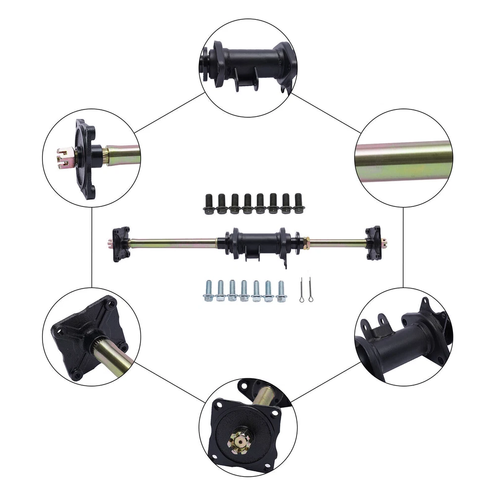 32" Rear Axle Complete Assembly Kit For 110/150/200cc ATV Go Kart Quad Buggy Specifications Applicable Models: For 110/150/200cc ATV Quad Bike Go Kart Condition: New Color: Black Material: Iron, Rubber Surface Treatment: Painting Number of Items: 1 Style: Modern Type: Rear Axle Complete Kit Way of Use: Direct Replacement Placement on Vehicle: Rear Product Fit: Direct Fit Assembly Method: Closed Overall Length: 810mm/32inch Wheel Hub: 4 Holes Gross Weight: 9.8kg/21.61lbs Net Weight: 9.5kg/20.94lbs Package Size: 82*20*13cm/32.28*7.87*5.12inch Key Features Build to Last: High-quality iron, rubber, and painting process make this product durable, so it can better keep practical and beautiful without frequent replacement. Powerful Function: As a part of the rear drive shaft of the vehicle's power transmission, this kit can provide you with smoother riding and also protect your safety. Simple Installation Procedure: The simple structure and complete kit let you install it directly, saving you energy. Effortless Cleaning: The smooth surface allows you to wash it directly with a towel and water. Highlights Brand New, With High Quality Elaborate Design Direct Replacement Long Service Life Good Sealing Performance Protective Package(Pearl Cotton) Professional Adaptability Strict Manufacturing Process Convenient Use Quality Assurance Notes Please double confirm the compatibility before purchasing and you can contact us anytime if you have any questions. We strongly recommend professional installation. Please contact us if you have any questions. Please allow the slight color difference caused by the shooting light and 1-3cm error due to manual measurement, and make sure you do not mind before you place the order. Fits(As a reference) For 110/150/200cc ATV Quad Bike Go Kart Package Included 1*Rear Axle Complete Kit inkfrog terapeak Payment Delivery details Terms of sales About us Contact us Payment We accept ebay payment 。 Fees such as import duties, taxes are not included in the item price or shipping costs. These charges are the buyer's responsibility. Delivery details Shipping: 2-9 working days to: USA Terms of sales We maintain high standards of excellence and strive for hundred percent customer satisfaction. Feedback is very important to us. We hope that you contact us immediately before you give neutral or negative feedback, so that we can address your concerns. It is impossible to address issues if we do not know about them! About us Your satis faction is our ultimate goal. We work hard to earn your trust and future business. Our certified technicians have tested each item before shipping. The unit comes with 1 year limited warranty on all manufacturing defects. a) If you receive a defective item, you may return it or ask for a discount. Please contact us within 14 days after you receive the package. b) What you returned must be intact and in its original packaging as re? u. Customer is responsible for shipping costs of the returned item. c) We will cover the cost of shipping back t with the shipping rate indicated in the registration page. We will send you a new unit or refund the full payment you paid. Thank you. Contact us Business Hour Business Hour: Monday To Friday: 8:30 AM to 5:00 PM (Beijing China time) Due to time zones, our reply to your questions may not be immediately. But within above working time, we will reply your email within 24 hours. If it's non-workdays, please kindly be patient and wait till Monday. Please contact us with ebay message. Please feel free to contact us if you have any questions. Monday To Friday: 8:30 AM to 5:00 PM (Beijing China time) Due to time zones, our reply to your questions may not be immediately. But within above working time, we will reply your email within 24 hours. If it's non-workdays, please kindly be patient and wait till Monday. Please contact us with ebay message. Please feel free to contact us if you have any questions. ❤Highlights❤ ❤Creative Design,Durable Material,Beautiful Appearance❤ ★Features★ ★★★Easy installation,Good Performance★★★ * Feature * *Good Quality Guarantee,Long Service Life* MPN Does Not Apply Brand Unbranded Product Type Parts & Accessories Type Motor UPC Does Not Apply Material Iron, Rubber Style Modern Applicable Models For 110/150/200cc ATV Quad Bike Go Kart On Nov 22, 2024 at 00:04:36 PST, seller added the following information: