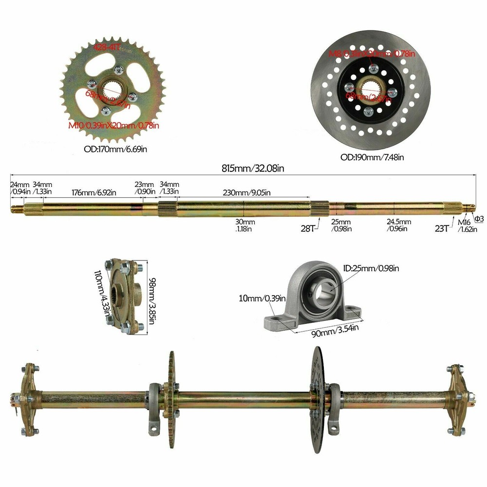 32" Rear Live Axle Wheel Hub Kit Fit for ATV buggy Quad Go Kart Golf Cart NEW ??♀️ This Rear Axle Kit Is Made by High Strength Chrome, Sturdy and Durable. ??♀️ Rear Axle Kit Length: 815mm (32"), Sprocket: 428 41 Teeth, Brake Disc Diameter: 190mm(7.5"). ??♀️ This Is a Complete Rear Axle Kits for Go Kart W/ Brake Assembly. ??♀️ Very Suitable for Diy Kart Projects or Reconstruction, Suitable for Four-wheel Atv Off-road Karts. ??♀️ Fit Many 50cc 70cc 90cc ATV Quads, Go Karts Such As Atomik, Motowork, DHZ, LEI etc. Product Description Product description: NOTE: Installation Manual Is NOT Included Professional Installation Is Highly Recommended Rear Axle Kit: This Is a Complete Rear Axle Kit for Go Kart Axle Overall Length (from End to End): 815mm (32"") The Thickest Part of the Axle Is 30mm (1.2"") Chain Sprocket: 428 41Teeth Brake Disc Diameter: 190mm(7.5"") Spline teeth: 24T and 28T Fits (For the Reference): Perfect for DIY Gokart Projects or Rebuilds Fit for Quad ATV Buggy Go Kart Fit Many ATV Quads, Go Karts Such As Atomik, Motowork, DHZ,LEI etc Package Includes: Rear Axle Kit (As picture) Payment Delivery details Terms of sales About us Contact us Payment We accept ebay payment 。 Fees such as import duties, taxes are not included in the item price or shipping costs. These charges are the buyer's responsibility. Delivery details Shipping: 2-9 working days to: USA Terms of sales We maintain high standards of excellence and strive for hundred percent customer satisfaction. Feedback is very important to us. We hope that you contact us immediately before you give neutral or negative feedback, so that we can address your concerns. It is impossible to address issues if we do not know about them! About us Your satis faction is our ultimate goal. We work hard to earn your trust and future business. Our certified technicians have tested each item before shipping. The unit comes with 1 year limited warranty on all manufacturing defects. a) If you receive a defective item, you may return it or ask for a discount. Please contact us within 14 days after you receive the package. b) What you returned must be intact and in its original packaging as re? u. Customer is responsible for shipping costs of the returned item. c) We will cover the cost of shipping back t with the shipping rate indicated in the registration page. We will send you a new unit or refund the full payment you paid. Thank you. Contact us Business Hour Business Hour: Monday To Friday: 8:30 AM to 5:00 PM (Beijing China time) Due to time zones, our reply to your questions may not be immediately. But within above working time, we will reply your email within 24 hours. If it's non-workdays, please kindly be patient and wait till Monday. Please contact us with ebay message. Please feel free to contact us if you have any questions. Monday To Friday: 8:30 AM to 5:00 PM (Beijing China time) Due to time zones, our reply to your questions may not be immediately. But within above working time, we will reply your email within 24 hours. If it's non-workdays, please kindly be patient and wait till Monday. Please contact us with ebay message. Please feel free to contact us if you have any questions. ~Feature~ AAAAA+ SELLER!!! * Feature * Creative Design,Durable Material,Beautiful Appearance Feature 1 Easy installation,Convenient Use,Easy Operation Brand Unbranded MPN Does Not Apply Bearing Length 815mm (32") Type Axles Product Type Parts & Accessories Disc OD 190mm(7.5") Sprocket 428 41 Teeth Placement on Vehicle Rear Product Complete rear axle kits for gokart Installation Instructions Not included