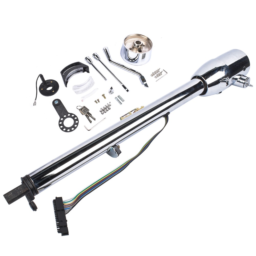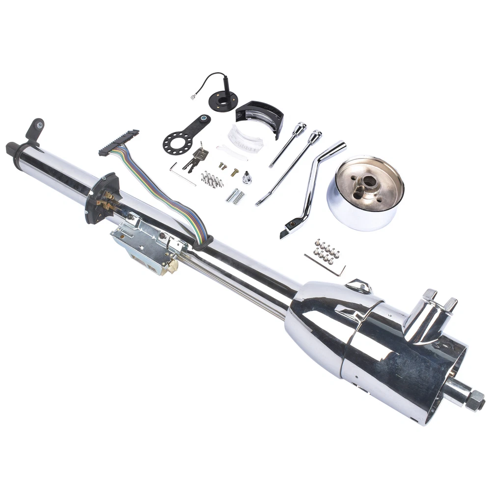 $ 120.8532" Chrome Tilt Manual Floor Shift Steering Column with 9-Hole Wheel Adapter