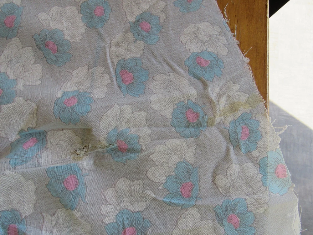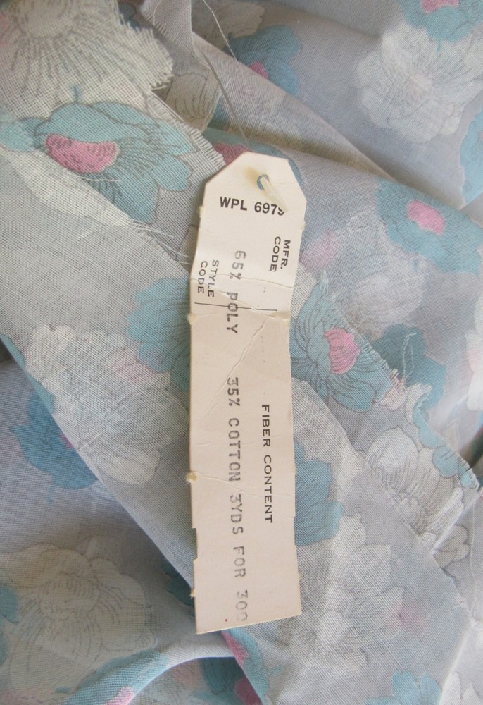 3.2 yd TRUE Vintage Semi Sheer Poly Cotton VOILE Muted Floral Dress Doll Fabric 3.2 yd TRUE Vintage Semi Sheer Poly Cotton VOILE Muted Floral Dress Doll Fabric Vintage Voile Fabric Lovely, muted floral on soft gray background Perfect for apparel (semi-sheer), doll clothes or baby dress 46" wide selvage to selvage 3.22 yds (116 inches) length but there is some cut away from one selvage edge (see last photo) 65% Polyester / 35% Cotton TRUE VINTAGE -- still has original tag! There are a couple stains and a tear at the very end of the fabric. It is right on the fold and affects 7" from cut edge. It looks like the fabric was originally taped or stapled to the bolt at this spot. Please see last photo. This fabric has been stored away for many years Never used or laundered Clean & odor free from pet & smoke free home Buyer pays shipping via USPS Pkg SAME or Next Day Shipping Please be sure to check my other store listings! Listing and template services provided by inkFrog