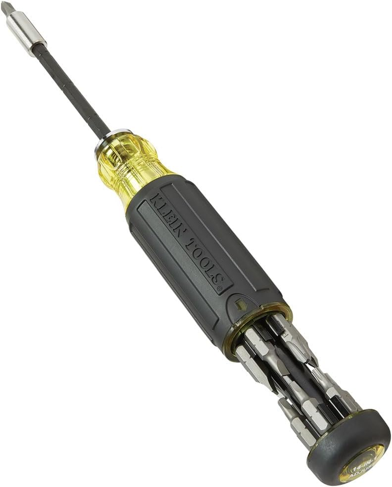 Multi-bit screwdriver includes 13 different screwdriver bits and a 1/4-Inch nut driver Industrial-strength bits that are conveniently housed in the handle Adjust the length of the blade for easier access Impact rated blade can be removed for use as an impact driver attachment Stainless steel bit holder contains powerful Rare-Earth magnet for securing bits and fasteners Cushion-Grip handle for maximum comfort Rare-Earth magnets for securing bits and fasteners Klein Tools Adjustable Length Screwdrivers function both as multi-bit screwdrivers and impact driver attachments. With these screwdrivers, there is no need to run back to your tool bag. Industrial-strength bits are conveniently housed in the handle. Simply adjust the length of the blades to allow for easier access or remove to use with an impact driver. Powerful rare earth magnets secure bits and fasteners while the Cushion-Grip handle provides outstanding comfort and control. For more than 160 years, Klein Tools has manufactured premium-quality, professional-grade hand tools that deliver the performance, durability and precision needed to get the job done right. Our family of engineers, workers and craftsman continue to put six generations of expertise into every tool we create by using only the highest quality materials, superior workmanship, and keeping manufacturing as close to home as we can. Klein isn't just the name of our company, it's also our family name. And since we're an American company that's family-owned and family-run, you know you can count on us to be here tomorrow. Klein Tools doesn't just make great products, we make great products that stand up to the demands of the professionals who use them every day ... Since 1857.