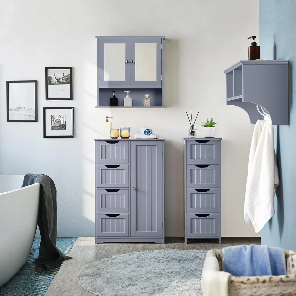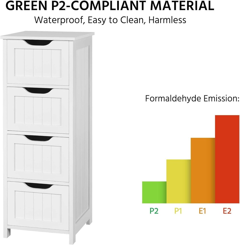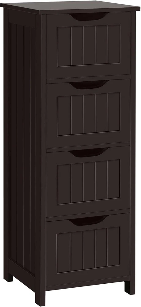 Features: Attractive: Our floor cabinet distinguishes itself from the competition by its outstanding work on details. Overlaid drawer face and innovative drawer pull are extra design elements to make your space more comfortable. Simple yet elegant style brings out the ideal taste of life Spacious: Vanity square tabletop of 30cm/12” L/W large for your table lamps, books/magazines, reading glasses/cups, etc. Each deep drawer offers ample out-of-sight space with inner dimensions of 22.3cm/8.8” L, 24.5cm/9.6” W, 10cm/3.9” H Cut-out Drawer Pull: The drawer is designed with easy-pull cutout treatment, giving you a comfortable holding feeling and a streamlined look Selected Materials: The freestanding cabinet with drawers is built of good P2 MDF with fine wooden finish. All the materials and fittings are subject to rigorous tests, so safe for your long-term use. Just so you know that we care about your health more than you do Easy Assembly: Assembly will be quick. To make the work easier for you, we’ve included illustrated instructions and necessary tools in the package before it arrives at your door. You’ll have the cabinet ready for use before you even know it Specifications: Color - White/Black/Espresso/Grey Recommended Uses For Product - Towels Product Dimensions - 12"D x 12"W x 32.5"H Special Feature - Removable Shelf Material - Wood Style - Modern Number of Drawers - 4 Shape - Rectangular Bathroom Floor Cabinet, Wooden Side Storage Organizer Free-Standing Cabinet with 4 Drawers This spacious storage cabinet provides you with an extra storage solution for your hygiene items, toiletries and medications. You can take a full advantage of 4 deep drawers and the tabletop. Constructed of quality MDF, the heavy-duty cabinet holds a maximum of load capacity up to 57.3lb. Also, the overlaid front face along with the sleek/clean drawer pulls makes it a great fit for any modern home décor. Don't miss it, keep your bathroom perfectly organized! Specification: Dimension (LxWxH): 11.8x11.8x32.3” Load capacity (max.): Tabletop: 19.8lb; Each drawer: 7.7lb N. W.: 20.3lb G. W.: 22.9lb Material: P2-compliant MDF Easy-to-read user's guide/assembly manual attached More Details: 4 spacious drawers make it easy to sort out different items Sleek and clean drawer faces overlaid with simple lines Quality water-resistant surface treatment for easy cleaning Anti-toppling fittings are designed to care about your safety Built-in fittings protect drawers from accidentally falling off the slides P2 MDF boards for your safe and long-term use Ideal for Bathroom, Living Room and Entryway as Storage Cabinet, Side Table or Console Table