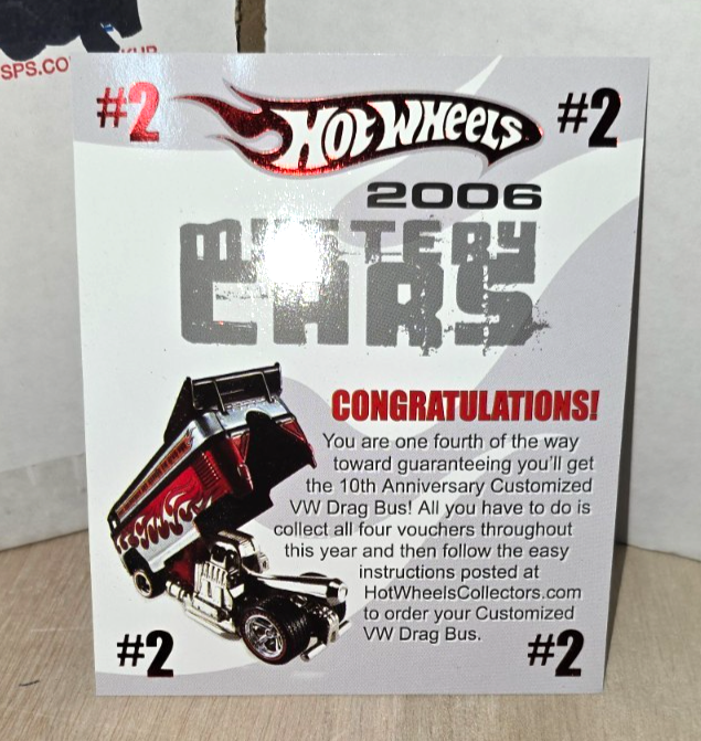 This is a Hot Wheels 2006 Mystery Cars Voucher #2 for Customized VW Drag Bus. See pictures for condition. Lot HW-298