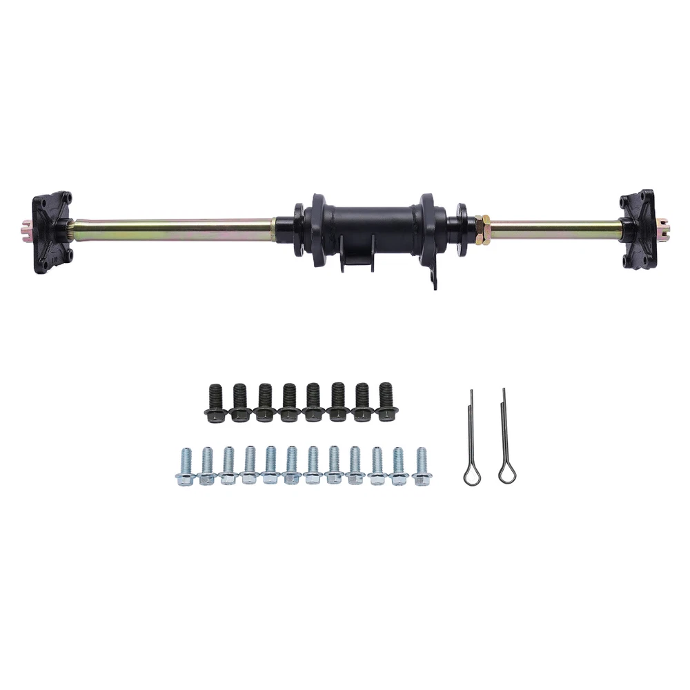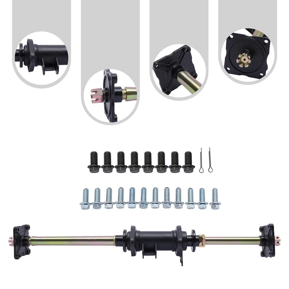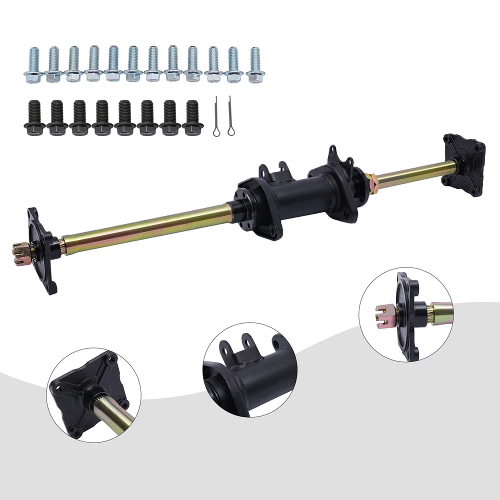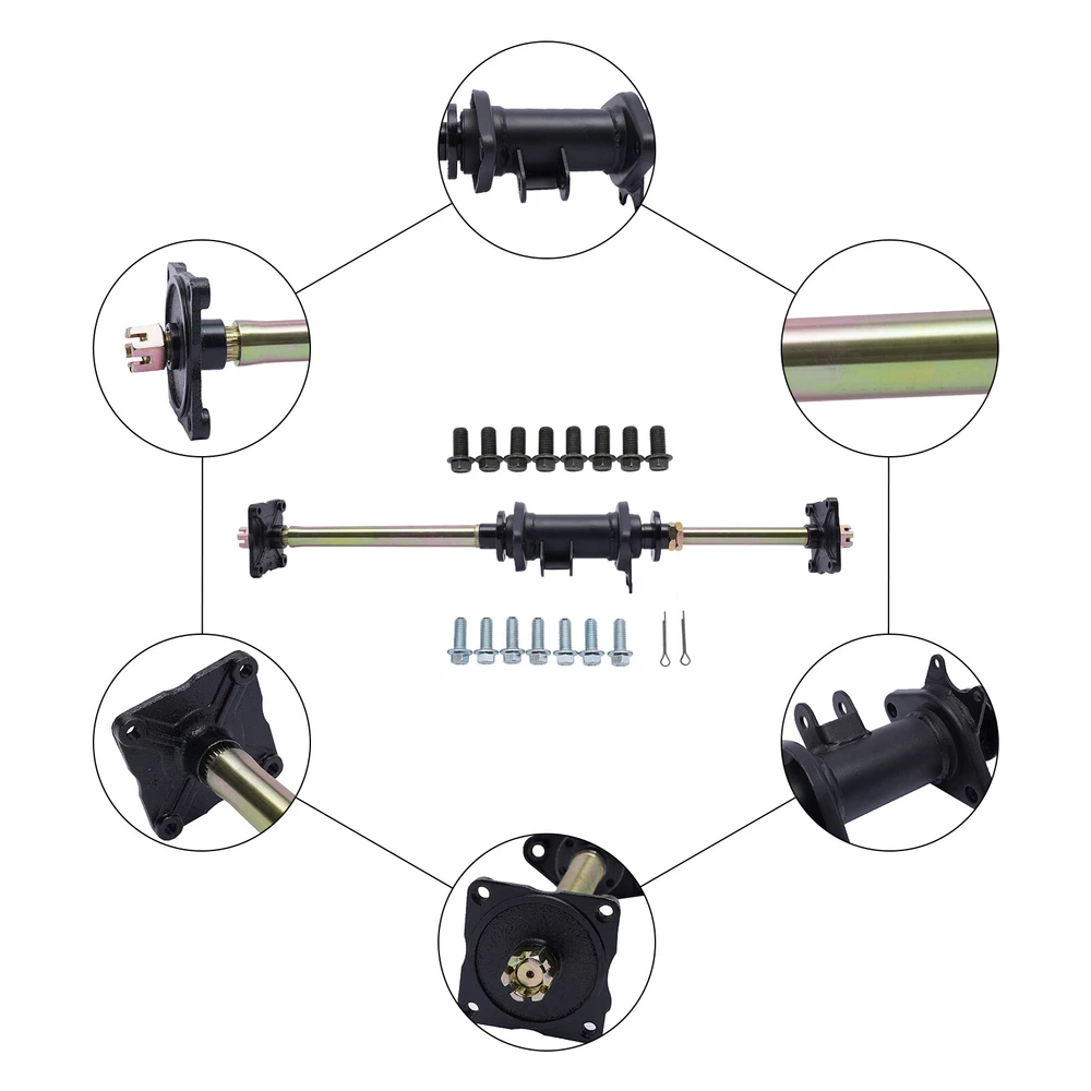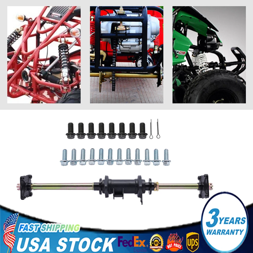 32"/81cm Rear Axle Complete Assembly Kit For 110/150/200cc ATV Quad Bike Go Kart Specifications Applicable Models: For 110/150/200cc ATV Quad Bike Go Kart Condition: New Color: Black Material: Iron, Rubber Surface Treatment: Painting Number of Items: 1 Style: Modern Type: Rear Axle Complete Kit Way of Use: Direct Replacement Placement on Vehicle: Rear Product Fit: Direct Fit Assembly Method: Closed Overall Length: 810mm/32inch Wheel Hub: 4 Holes Gross Weight: 9.8kg/21.61lbs Net Weight: 9.5kg/20.94lbs Package Size: 82*20*13cm/32.28*7.87*5.12inch Key Features Build to Last: High-quality iron, rubber, and painting process make this product durable, so it can better keep practical and beautiful without frequent replacement. Powerful Function: As a part of the rear drive shaft of the vehicle's power transmission, this kit can provide you with smoother riding and also protect your safety. Simple Installation Procedure: The simple structure and complete kit let you install it directly, saving you energy. Effortless Cleaning: The smooth surface allows you to wash it directly with a towel and water. Highlights Brand New, With High Quality Elaborate Design Direct Replacement Long Service Life Good Sealing Performance Protective Package(Pearl Cotton) Professional Adaptability Strict Manufacturing Process Convenient Use Quality Assurance Notes Please double confirm the compatibility before purchasing and you can contact us anytime if you have any questions. We strongly recommend professional installation. Please contact us if you have any questions. Please allow the slight color difference caused by the shooting light and 1-3cm error due to manual measurement, and make sure you do not mind before you place the order. Fits(As a reference) For 110/150/200cc ATV Quad Bike Go Kart Package Included 1*Rear Axle Complete Kit inkfrog terapeak Payment Delivery details Terms of sales About us Contact us Payment We accept ebay payment 。 Fees such as import duties, taxes are not included in the item price or shipping costs. These charges are the buyer's responsibility. Delivery details Shipping: 2-9 working days to: USA Terms of sales We maintain high standards of excellence and strive for hundred percent customer satisfaction. Feedback is very important to us. We hope that you contact us immediately before you give neutral or negative feedback, so that we can address your concerns. It is impossible to address issues if we do not know about them! About us Your satis faction is our ultimate goal. We work hard to earn your trust and future business. Our certified technicians have tested each item before shipping. The unit comes with 1 year limited warranty on all manufacturing defects. a) If you receive a defective item, you may return it or ask for a discount. Please contact us within 14 days after you receive the package. b) What you returned must be intact and in its original packaging as re? u. Customer is responsible for shipping costs of the returned item. c) We will cover the cost of shipping back t with the shipping rate indicated in the registration page. We will send you a new unit or refund the full payment you paid. Thank you. Contact us Business Hour Business Hour: Monday To Friday: 8:30 AM to 5:00 PM (Beijing China time) Due to time zones, our reply to your questions may not be immediately. But within above working time, we will reply your email within 24 hours. If it's non-workdays, please kindly be patient and wait till Monday. Please contact us with ebay message. Please feel free to contact us if you have any questions. Monday To Friday: 8:30 AM to 5:00 PM (Beijing China time) Due to time zones, our reply to your questions may not be immediately. But within above working time, we will reply your email within 24 hours. If it's non-workdays, please kindly be patient and wait till Monday. Please contact us with ebay message. Please feel free to contact us if you have any questions. ❤Highlights❤ ❤Creative Design❤,❤Durable Material❤,❤Beautiful Appearance❤ ★Features★ ★★★Good Quality Guarantee,Long Service Life★★★ * Feature * *Easy installation,Good Performance* MPN Does Not Apply Brand Unbranded Product Type Parts & Accessories Type Motor Material Iron, Rubber Style Modern Applicable Models For 110/150/200cc ATV Quad Bike Go Kart UPC Does not apply