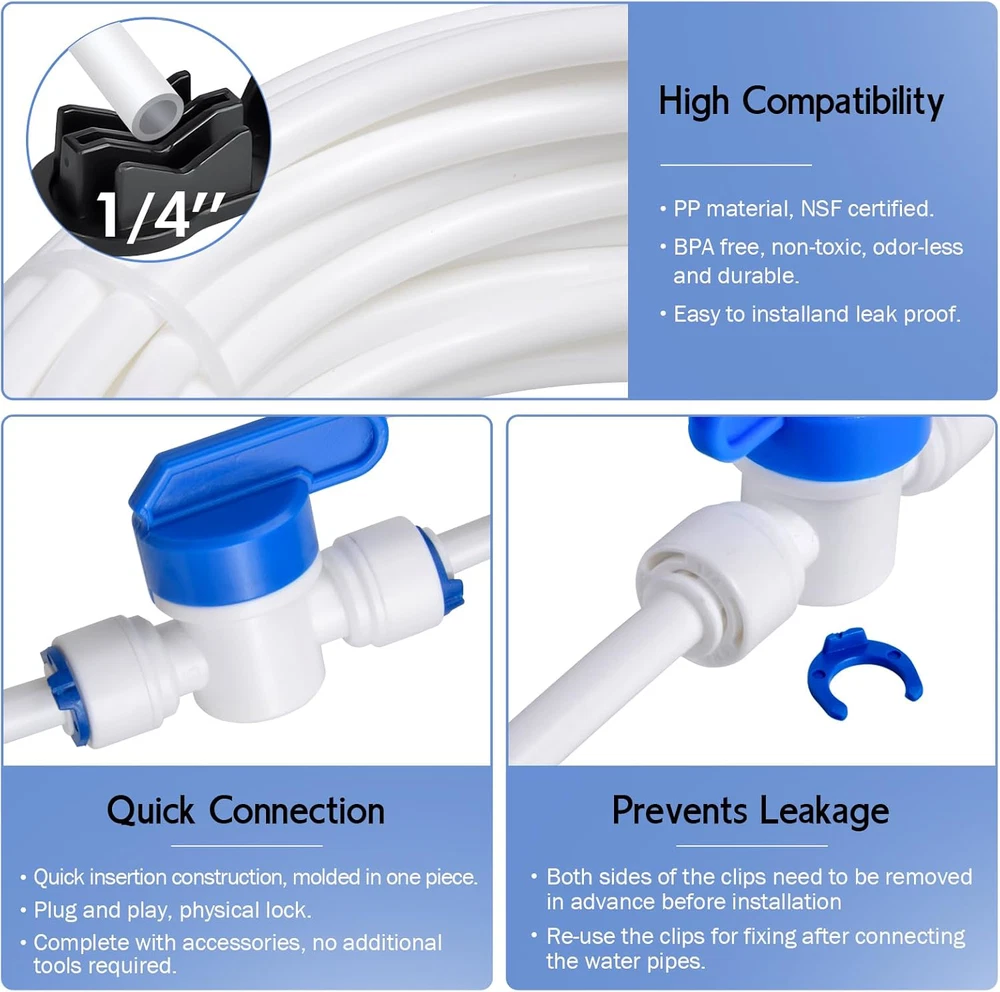Fast Shipping Great Customer Support Satisfaction Guaranteed DESCRIPTION Shipping Shipping Shipping All domestic packages are shipped for Free (Unless other shipping method was selected during the checkout) Most items ship and arrive much sooner than the estimate delivery date. Usually within 2-3 days from payment. However, we have longer estimates to compensate for the occasional delay or supply chain breakdown. We do not accept P.O. BOXES - PLEASE PROVIDE A PHYSICAL ADDRESS Return Return Return In the event that you would like to return your purchase, we allow returns that are processed within the defined return date (the return date is to be found in the return policy/shipping and handling section) Please contact us for a return authorization and the return shipping address. Payment Payment Payment PayPal is our preferred method of payments it's the quickest, easiest and most secure way to pay for your goods or services online. PayPal offers buyer and seller protection should there be a problem. If you do not have a PayPal account, to get started and buy your first item with us is very easy. Simply click on the 'Buy It Now' button and follow the eBay checkout steps. Select PayPal as the payment method you then will be given the chance to enter your card details in to PayPal's secure checkout in order to pay for your order. Once the payment has been made, you will then be given the opportunity to make your own PayPal account to make paying for your items in the future very easy. Should there be a problem with payment please do let us know. Feedback Feedback Feedback Customer satisfaction is very important to us. If you have any problem with your order,please contact us and we will do our best to make you satisfied, please do not leave a negative feedback before we resolve your problem. We guarantee that your issue will be solved quickly. As long as you are happy with your purchase of , please leave us a positive feedback. Your feedback is very important to us it affects our search placement on eBay. We will leave a positive feedback for you in return automatically once we receive your feedback. Contact Us Contact Us Contact Us If you have any queries, please contact us via ebay. We usually respond within 24 hours on weekdays. Thank you for visiting our ebay store! [Widely Compatible] Our refrigerator water line kit is ideal for linking under-sink filtration systems or reverse osmosis setups (with 1/4" or 3/8" outlets) to drinking water filter faucet, refrigerator, ice maker, water dispenser and more. It is compatible with most brands and models of refrigerator such as Samsung, GE, LG, Whirlpool, Frigidaire, etc [Safe Material] Our Ice maker water line kit is made by superior quality PP materials, have tested to meet NSF standards and BPA free. The quick connectors and tube are are strong structure, safe and reliable, can be reusable. Ensure you and your family enjoy crystal ice cubes and delicious pure water [Effective Leakage Prevention] Our ice maker kit quick coupler is equipped with snaps on both sides for secondary fastening, and the pipe cutter cuts efficient cutting smooth, effectively avoiding leakage caused by uneven cuts, and reducing troubles [Easy Installation] Fridge water line kit with professional pipe cutter and standard push-in quick connect, easy DIY installation without others tools. Clear installation instructions and manual help you finish the job easily and quickly [No Drilling Required] Our refrigerator water line kit contains enough fittings to meet all your installation needs, no drilling is required, no damage to the plumbing, and you can mix and match as you see fit 32.8ft Refrigerator Water Line Kit for Ice Maker & RO System, 1/4" Tubing Click here to see description Fast Shipping Great Customer Support Satisfaction Guaranteed DESCRIPTION Shipping All domestic packages are shipped for Free (Unless other shipping method was selected during the checkout) We ship within two business days of payment, usually sooner Standard FREE shipping takes between 3-5 business days Expedited shipping takes between 2-3 business days Overnight shipping takes between 1-2 business days We do not accept P.O. BOXES - PLEASE PROVIDE A PHYSICAL ADDRESS We Ship Globally using ebay's GSP, the item is sent to a logistic center in KY and shipped from there to the rest of the world. International customers are responsible for all duties and taxes Contact your local authority for questions related to the amount of duties or taxes you will be responsible for Return In the event that you would like to return your purchase, we allow returns that are processed within the defined return date (the return date is to be found in the return policy/shipping and handling section) Please contact us for a return authorization and the return shipping address. Please contact us for a Return Merchandise Authorization (RMA) number. We advise you to use a reputable carrier service when returning your goods. Please pack all returns appropriately. We ship globally Via eBay's global shipping program (GSP). Thus we don't cover returns for items shipped globally. Buyers returning such items will be refunded ONLY for the item's cost and not for the shipping. please check the Voltage information and make sure it matches the one in your country. In case it's not stated in the description, do ask us. Payment PayPal is our preferred method of payments it's the quickest, easiest and most secure way to pay for your goods or services online. PayPal offers buyer and seller protection should there be a problem. If you do not have a PayPal account, to get started and buy your first item with us is very easy. Simply click on the 'Buy It Now' button and follow the eBay checkout steps. Select PayPal as the payment method you then will be given the chance to enter your card details in to PayPal's secure checkout in order to pay for your order. Once the payment has been made, you will then be given the opportunity to make your
