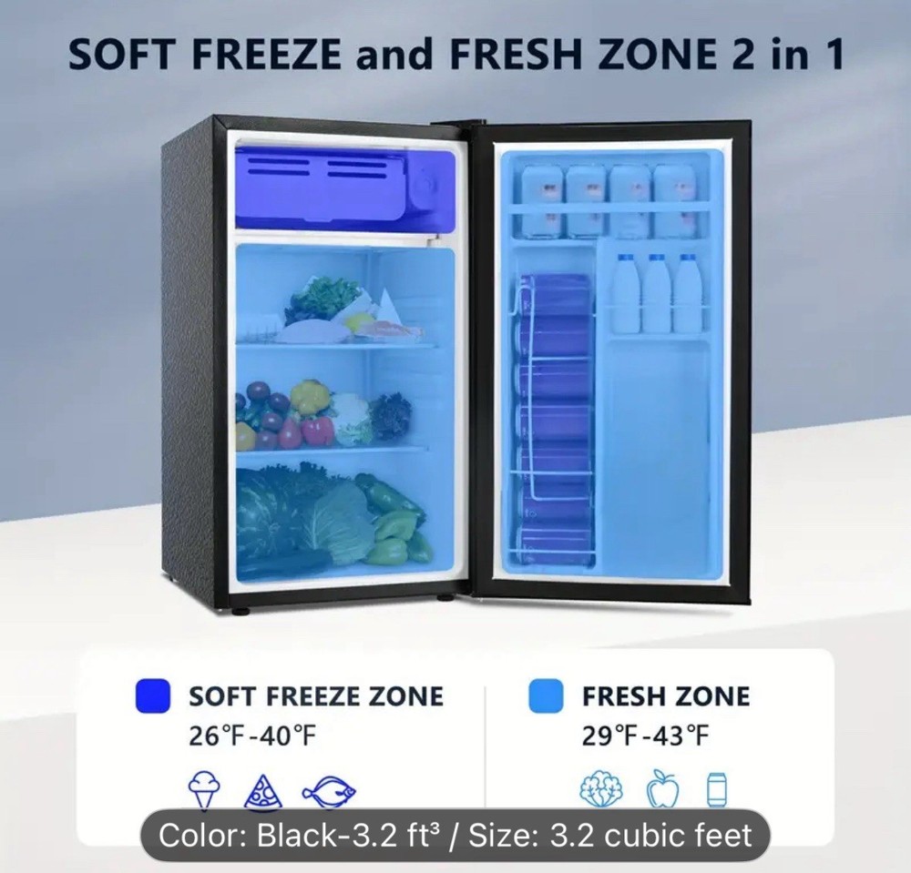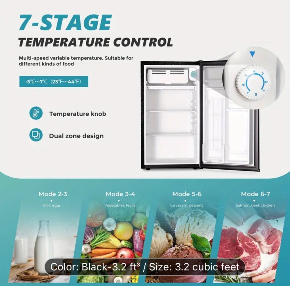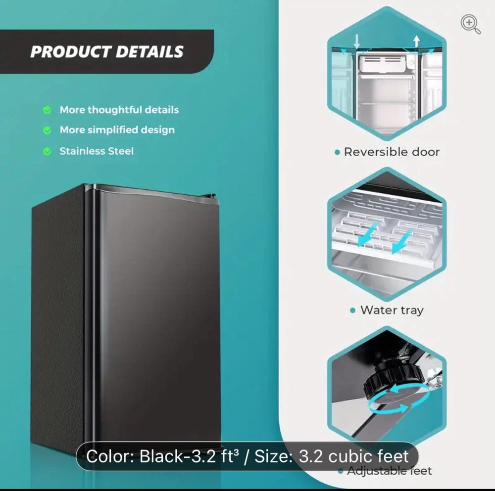 3.2Cu.Ft Single Door Mini Fridge with Freezer Compact Storage Refrigerator Home