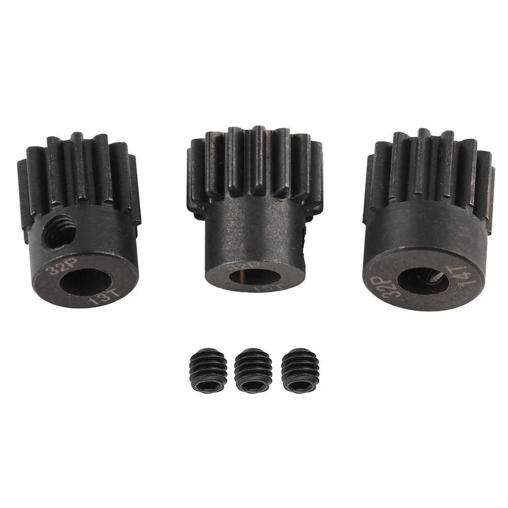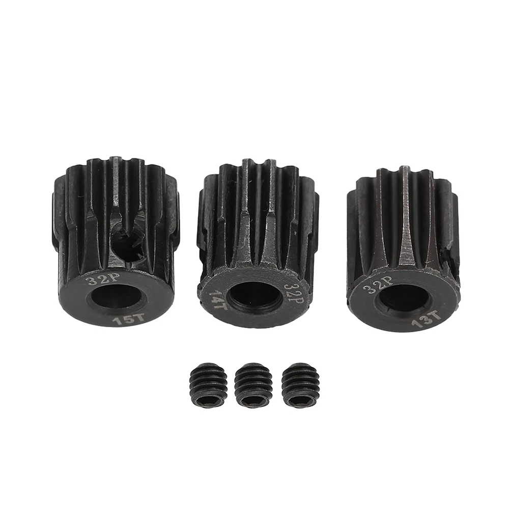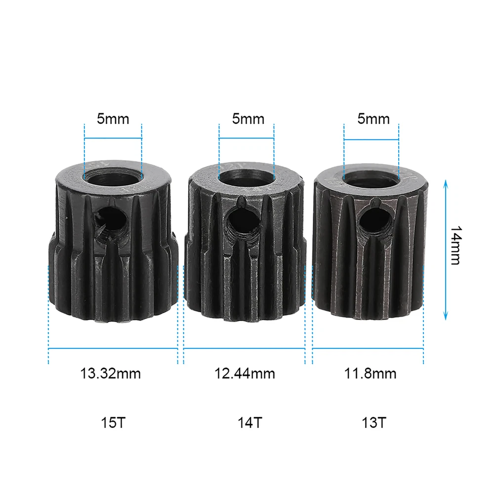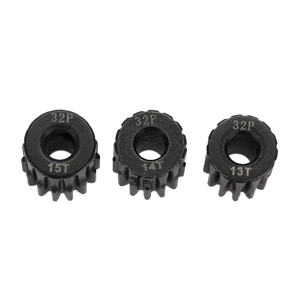 Feature: 1. Suitable for 1/8 RC cars motor with 5mm shaft. 2. Durable metal construction for long-lasting performance. 3. Rust-proof treatment on the surface of gears. 4. Each motor pinion gear is equipped with a set screw. 5. Fixed screw holes for easy and convenient to install. Specification: Features: Suitable for 1/8 RC cars motor with 5mm shaft. Durable metal construction for long-lasting performance. Rust-proof treatment on the surface of gears. Each motor pinion gear is equipped with a set screw. Fixed screw holes for easy and convenient to install. Specification: Material: Metal Color: Black Suitable Shaft Diameter: 5mm / 0.2inch Diametrical Pitch: 32DP Options: 13T 14T 15T, 16T 17T 18T, 19T 20T 21T Height: 14mm / 0.55inch Tip Diameter: 13T: 11.8mm / 0.46inch 14T: 12.44mm / 0.49inch 15T: 13.32mm / 0.52inch 16T: 14.3mm / 0.56inch 17T: 15.1mm / 0.59inch 18T: 15.9mm / 0.63inch 19T: 16.7mm / 0.66inch 20T: 17.5mm / 0.69inch 21T: 18.3mm / 0.72inch Weight: 30 - 42g Type: RC Part Package Includes: 1 x 13T Motor Gear 1 x14T Motor Gear 1 x 15T Motor Gear or 1 x 16T Motor Gear 1 x 17T Motor Gear 1 x 18T Motor Gear or 1 x 19T Motor Gear 1 x 20T Motor Gear 1 x 21T Motor Gear Note: Please note that the new type and old type of this product will be sent randomly, and make sure you will not mind before ordering. 1. Our listing price includes the value of goods,packaging cost,and export taxes,not including international duties. 2. duties,taxes,and charges are not included in the item price or shipping fee. 3. T he duties are buyers' responsibility .Please check with your country's customs office determine what these additional costs will be prior to your purchase. 4. All disputes arising from the duties will be submitted to ebay for solution. 1. Any questions, pls. contact us via ebay message or email us. We will reply your message within 48 hours. If you do not receive our reply within 48 hours, pls. post a message again because sometimes our message system may block some emails. 2. If you are satisfied with our service, pls. kindly leave us a positive feedback and give us the Detailed Seller Rating with all " 5 " in very area 3. Our aim is to provide Level Customer Service, your recognition will encourage us greatly and serve you better. We strive to keep all our customers satisfy. We will do our up most to exceed your expectations in customer service, communication and dispatching of your orders.