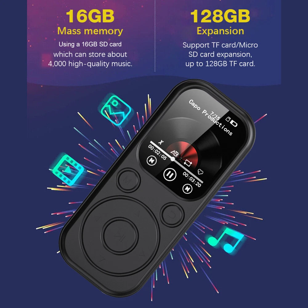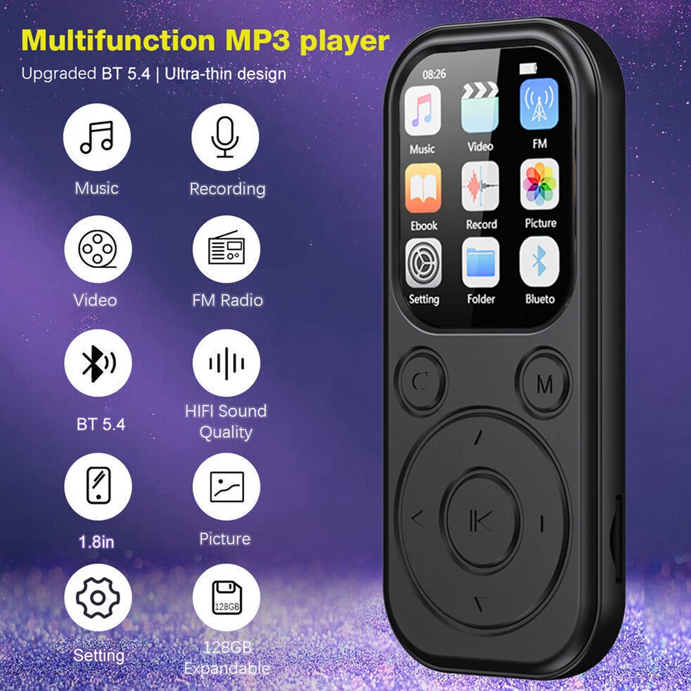 32GB Bluetooth 5.4 HiFi MP3 Player MP4 Media FM Radio Audio Recorder Music Portable Features: [HD IPS Color Screen] 1.8 inch color screen, HD resolution makes your eyes more comfortable, with IPS technology, giving you a visual feast and clearer display. 【Bluetooth 5.4 Chip】Connection is more stable, support Bluetooth connection, can be used with Bluetooth headphones and Bluetooth speakers, better experience. 【Multi-format Playback】Support AMV format video playback, it supports MP3/WMA/APE/FLAC/WAV and other music formats. [Memory Expansion] Supports up to 128GB micro SD card expansion (not included). You can download thousands of songs and store tons of files. 【Excellent Sound Quality】Provides near-original hi-fi grade sound quality, supports most audio formats, perfect sound quality makes it a must-have device for avid listeners, making your work and life more enjoyable. [Multi-functional Player】Support music playback, video playback, recording, picture browsing, FM radio, micro SD card expansion, Bluetooth, calendar, eBook. [High Capacity Battery】Using 500mAh high capacity lithium ion battery type-c fast charging technology. Quick charge for 2 hours to enjoy 12 hours of uninterrupted music (wired headphones resting to listen to music) [Widely Applicable] Suitable for traveling, outdoor activities, leisure and entertainment, hiking and cycling, running and fitness, a good companion for learning. Specifications: -Product name: MP3 player -Screen size: 1.8 inches -Screen material: IPS -Resolution: 240*288 -Operation mode: buttona -Battery capacity: 500mah -Charging time: 2 hours -Bluetooth chip: 5.4 -Picture format: JPG -Video format: AVI -Recording format: WAV,MP3 -Audio format: MP3/WMA/APE/FLAC/WAV -Playback Mode: All Songs/Playing/My Favorite/File Directory -Memory Expansion: Support up to 128GB micro SD card (not included) -Operating time: 12 hours (wired headphones resting to listen to music) -Other features: Radio/Bluetooth/Photo/Video/eBook/Music/Time/Calendar -Language support: English/French/German/Russian/Spanish/Korean -Headphone jack: 3.5MM stereo -Charging interface: type-c -Body material: ABS -Product size: 90*40*8mm -Product color: black Please note that this product must be used with a card, the machine itself has no built-in memory. Package List: 1*MP3 player(No memory card / 32GB memory card) 1*type-c cable 1*Owner's manual Attention: 1. micro SD card is not included Standard, headphones are not included! 2. Please allow 1cm error due to manual measurement! 3.Due to different display resolution, please take into account the slight color difference! Payment: The buyer is responsible for any applicable import duties and local taxes. Usually there's not any charges for small parcel. But please verify with your customs before making your purchase. Return: If you are not completely satisfied with your purchase, simply return the item to us in its original condition within 14 days of receipt. We will issue a full refund on receipt, excluding the return delivery charge. About US: We are a professional foreign trade e-commerce company, mainly engaged in foreign trade B2C platform business. Our foucs includes instrument meters and accessories, household items, car accessories, Led lighting etc. Our company is energetic and creative and wish to bring you great service and amazing experience.