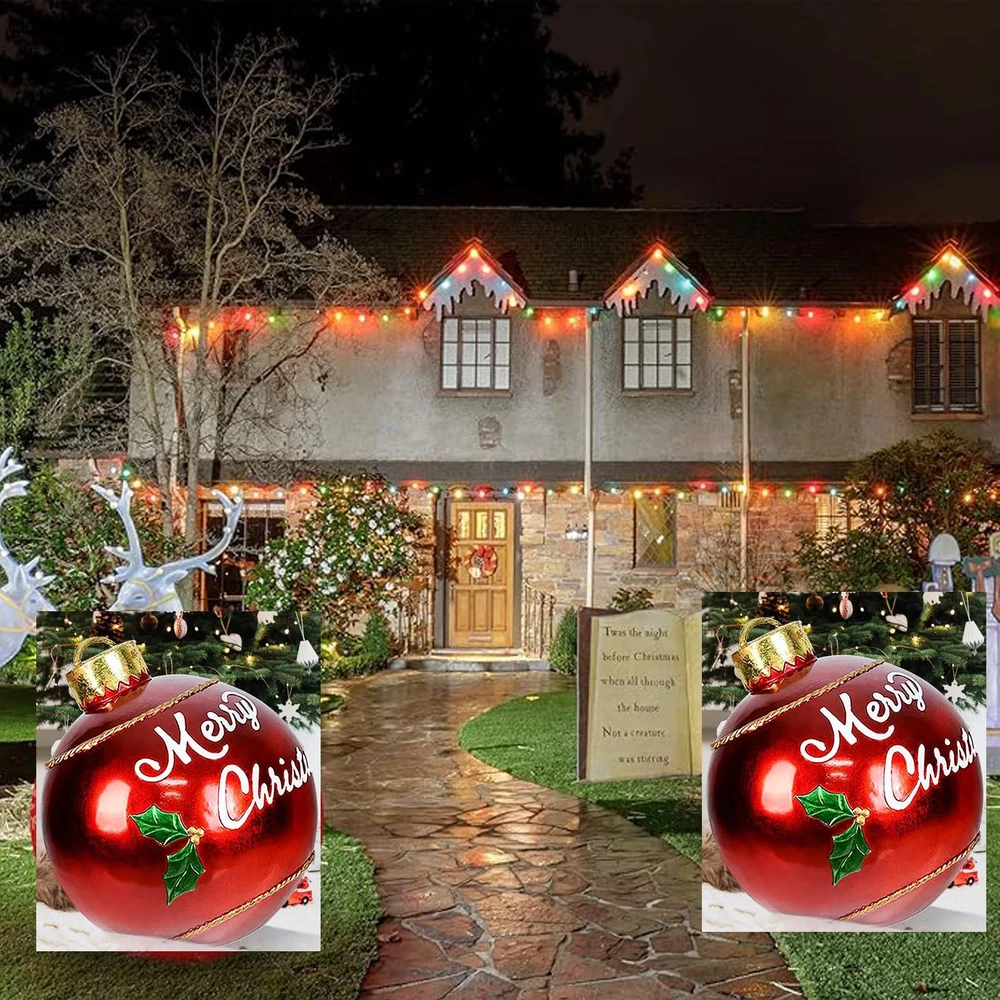 Large Size: you will receive 1 PVC inflatable ornaments in different styles, these outdoor PVC Christmas decoration balls measure about 80 cm/ 32 inches before they are inflated, about 60 cm/ 24 inches after inflated, large enough to attract people's attention from a long distance, making your places full of Christmas breath Holiday LED Lights Display: Adorned with vibrant LED lights, our inflatable santa claus outdoor shines brilliantly day and night. The carefully placed lights create a mesmerizing spectacle, enhancing the festive ambiance and ensuring that Santa remains visible even in winter evenings. Standing tall at 12ft, he's sure to impress and make a statement in your home, yard, garden, office, or hall plaza. Full Accessories for Outdoor Use: Comes with 6 ground stakes and 2 tethers to ensure firm stability in windy conditions. Built-in 2 plastic bags can be filled with water or sand and place at the bottom with a zipper of the christmas decorations for adding weight to make it more secure and stable. Finally, Don't forget to zip up and wait until it's inflated. No need to worry about the christmas blow up yard decorations flying away with the wind! Durable and Self-inflates In Minutes: Our christmas inflatable outdoor decoration are made of high-quality 210T durable thickened polyester PVC waterproof materials with excellent stitching that ensures durability and prevents tearing, whitch make it can withstand various weather conditions and ensure years of usage. In addition, we provide a powerful blower and UL certified adapter to continuously inflate christmas lawn Perfect Gift for Maximum Festivity: Our 12 ft santa inflatable christmas blow up is packed in a beautiful gift box, whitch is a very surprise christmas gift for Children. It's sure to be a hit with your family, friends, and neighbors, and is bound to become a staple in your xmas inflatables for years to come. Now, it's time to create a cheerful and welcoming environment for your family and friends!