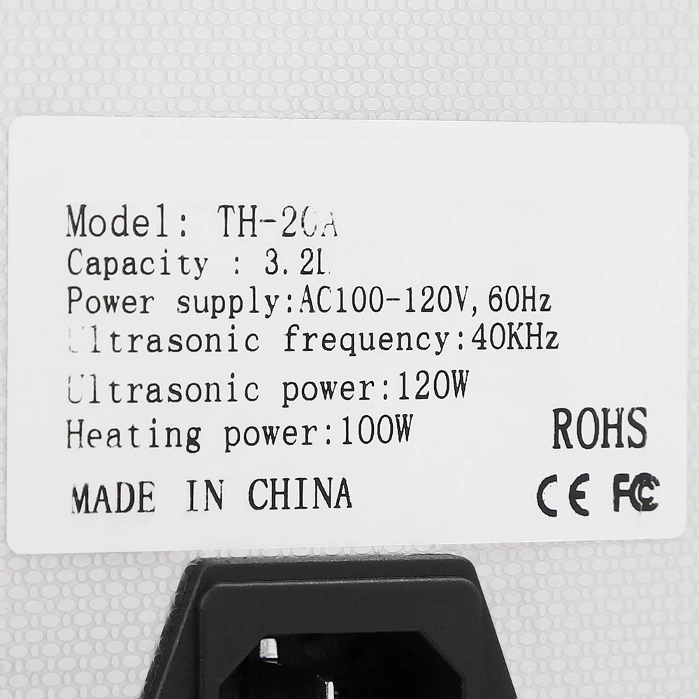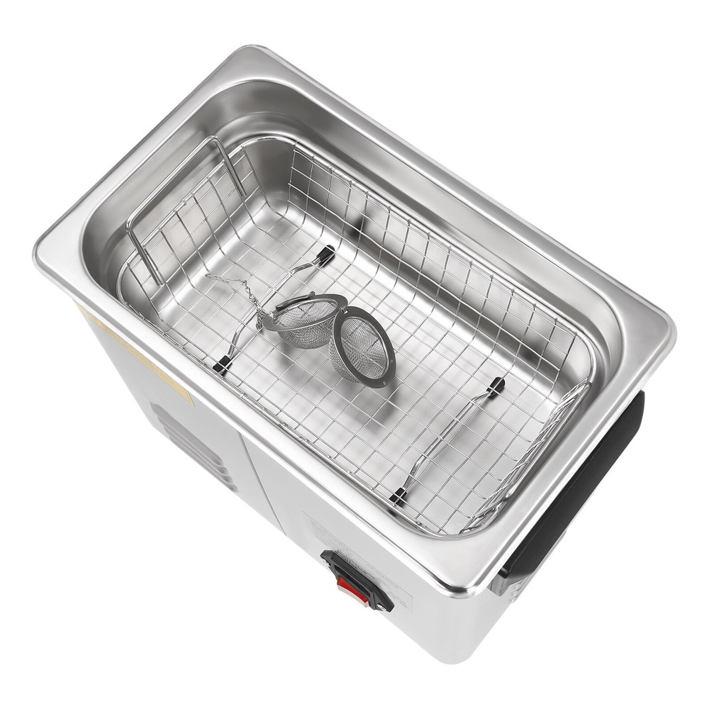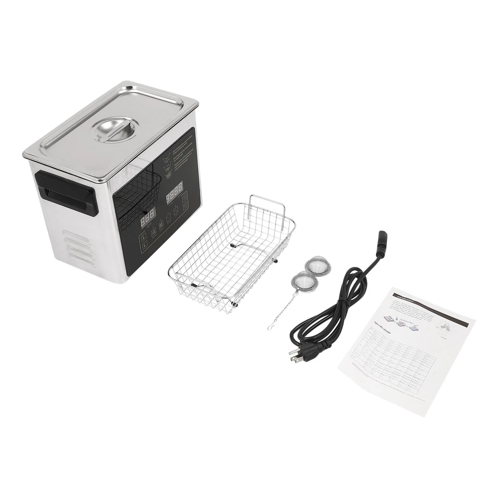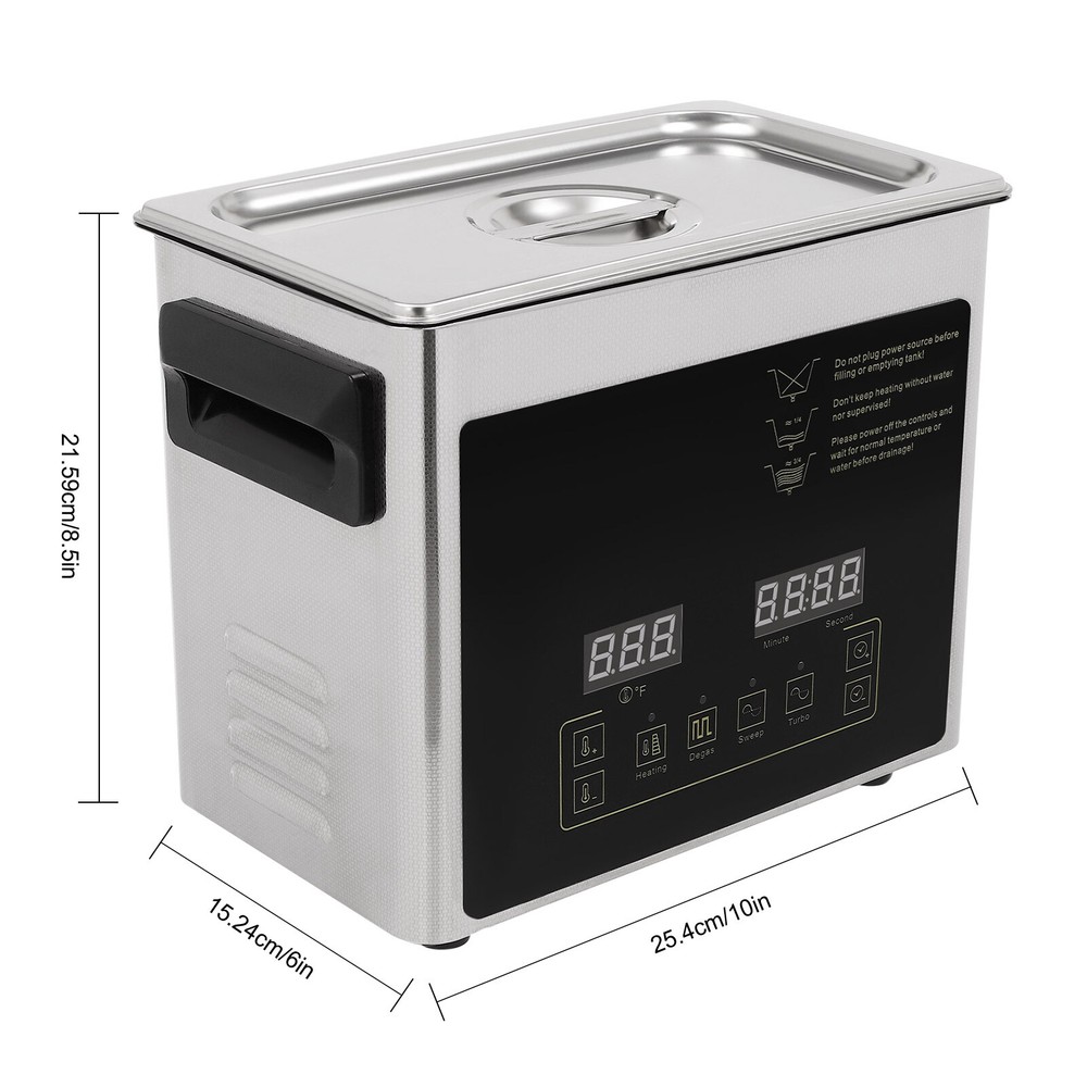 Specification Material: 201 Stainless Steel, 304 Stainless Steel Color: Silver Style: Modern Plug Type: US Standard Controller Type: Push Button, Touch Key Cleaning Modes: Sweep, Turbo, Degas Mount Type: Table Standing Style: Modern Model: TH-20A Shape: Rectangular Noise: 100dB Thickness: 1mm Capacity: 3.2L/0.84 gal Time Setting: 0-30min Heating Power: 100W Cavitation Range: 60W Ultrasonic Power: 120W Voltage: AC100-120V, 60Hz Ultrasonic Frequency: 40 Khz, 46,000/s Heating Temperature: 0-80℃/0-176℉ Power Cord Length: 1.5m/4.92ft Product Size: 25.4*15.24*21.59cm/*10*6*8.5in Package Size: 35*24*29cm/13.78*9.5*11.4in Net Weight: 3.2kg/7 lbs Gross Weight: 3.8kg/7.98 lbs lab Ultra Sonic Glasses Cleaning Ultrasonic Jewelry Cleaner Machine 3.2L Description Are you looking for ultrasonic cleaning? This product will win your favor! High power, high vibration frequency, three cleaning modes, and a heating function can meet your diverse cleaning needs. The timer function, LED screen, and touch control allow you to get rid of tedious operations and provide you with more convenience. This is your ideal choice! Key Features Sturdy and Durable : The high-quality 201 stainless steel shell and 304 stainless steel inner make it resistant to corrosion, deformation, tear, and wear and can withstand high-strength use, ensuring sufficient durability. Excellent Performance : It features an industrial strong vibration head (40kHz), high power (120W), a wide range of cavitation (60w), high-frequency vibrations (46,000 per second), and high heating power(100W) to produce millions of small bubbles to destroy the adhesion of dirt and grease, enabling effective 360° deep cleaning, penetrating blind holes, cracks and grooves, thus achieving a fast and efficient cleaning effect. High Safety : It uses high-frequency sound waves for cleaning without the use of chemical cleaning agents, which is harmless to the environment and the human body for added safety. It also has a double fuse protection system to prevent burnout. Three Cleaning Modes : It includes sweep (28khz-gross rinse of the sample surface), turbo(40khz-intensive cleaning of blind holes), and degas (high-intensity ultrasonic pulses and bubbles removal in solutions for effective cleaning), meeting the cleaning needs for different applications and different effects. Excellent Heating Dissipation : It comes with multiple heat dissipation holes, ensuring the motor can dissipate heat timely to avoid burning and providing a safer and more stable operation. Large Capacity : The large tank (0.84 gal) can accommodate multiple items at a time, and the cleaning basket and a ball-shaped jewelry cleaning basket can reduce friction and scratches during cleaning, better protecting your items and it also can be used to drip dry items. Easy to Operate : With a simple operation interface, sensitive touch keys, and a clear LED display, you can easily set parameters and monitor the product's working status in real-time, providing you with more convenience. Strong Function : The temperature (0-176℉) and time (0-30 minutes) can be adjusted freely through the panel button. When the temperature is higher than the preset value, the machine will automatically stop heating. Besides, it will automatically remember the last information to avoid frequent settings, providing more efficient and convenient operation. Protective Packaging : The strong box and pearl cotton provide comprehensive protection for products to ensure that it is fully delivered to you to the greatest extent possible. Guaranteed Customer Service: We aim to provide quality products and services. If you have problems, please feel free to contact us. We will reply and solve the problem for you as soon as possible. Details Top Lid : It can reduce heat loss and noise during operation and the enlarged handle on the top allows you to easily pick it up. Recessed Insulated Handles : The insulated handles with anti-static and high-temperature protection performance make it convenient to move the machine. Support Feet : The four support feet are abrasion-resistant, non-slip , and can ensure the stable placement of the product. Long Wire : The 4.92ft long wire reduces usage restrictions, and allows stable and reliable current and voltage, ensuring a safer use. Application It is suitable for cleaning jewelry, watches, glasses, tableware, dental equipment, milk bottles, circuit boards, hardware parts, razors, laboratory equipment, golf clubs, fishing reels, window blinds, firearm components, car fuel injectors, musical instruments, gramophone records etc. It can be used to clean the long holes, cracks, and shields of the workpiece and is mainly used in the laboratory, food industry, biology industry, agriculture industry, or daily necessities industry. Specification Material: 201 Stainless Steel , 304 Stainless Steel Color: Silver Style: Modern Plug Type: US Standard Controller Type: Push Button, Touch Key Cleaning Modes: Sweep, Turbo, Degas Mount Type: Table Standing Style: Modern Model: TH-20A Shape: Rectangular Noise: 100dB Thickness: 1mm Capacity: 3.2L/0.84 gal Time Setting: 0-30min Heating Power: 100W Cavitation Range: 60W Ultrasonic Power: 120W Voltage: AC100-120V, 60Hz Ultrasonic Frequency: 40 Khz, 46,000/s Heating Temperature: 0-80℃/0-176℉ Power Cord Length: 1.5m/4.92ft Product Size: 25.4*15.24*21.59cm/*10*6*8.5in Package Size: 35*24*29cm/13.78*9.5*11.4in Net Weight: 3.2kg/7 lbs Gross Weight: 3.8kg/7.98 lbs Package Included 1* Ultrasonic Washing Machine 1* Cleaning Basket 1* Ball-shaped Basket 1* Power Cord 1* English Manual Notes Please note that the machine can only work under 120V voltage. Turning the cleaner on or off frequently is not recommended. Please read the operating manual completely before use and pay particular attention to the safety instructions included. The best temperature we suggest is 40℃~60℃, and the cleaning time is 30 mins one time. The tank is made of 304 stainless steel , please do 
