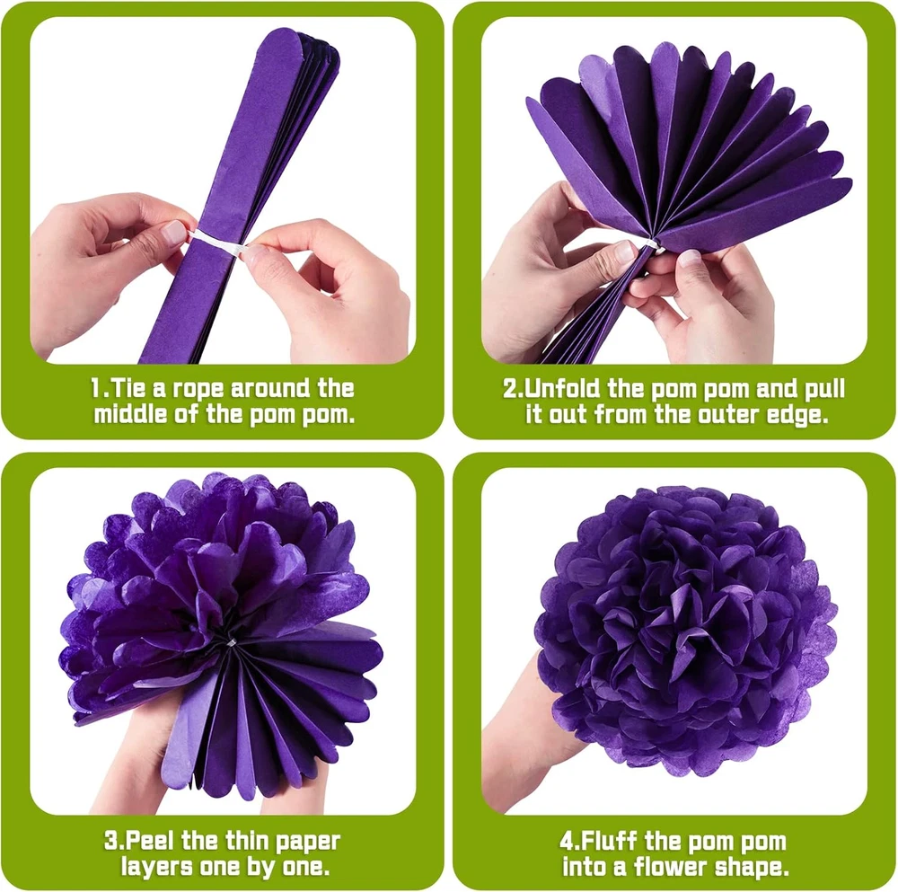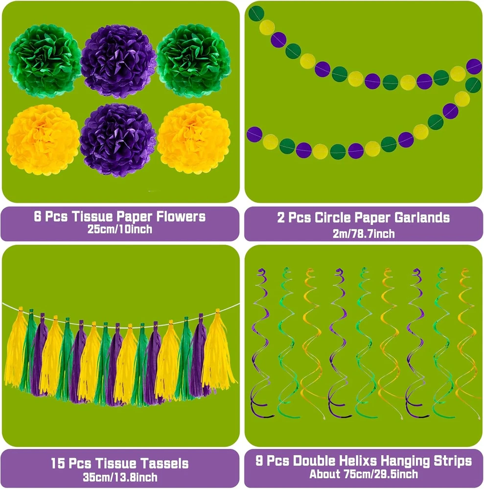 Unit Count:1.00 CountColor:Yellow,green,purperIs Discontinued By Manufacturer:NoMaterial:Papergtin13:7445027617658UPC:7445027617658Package Dimensions:13.89 x 6.69 x 1.69 inches; 6.74 ouncesIncluded Components:6 pcs tissue paper flowers, 15 pcs tissue tassels, 9pcs double heType:Does not applyBrand:Does not apply