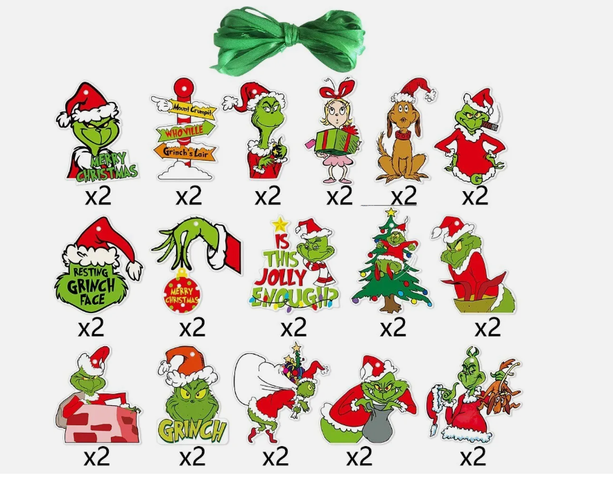 32-Pack Grinch Christmas Ornaments for Xmas Tree Decorations