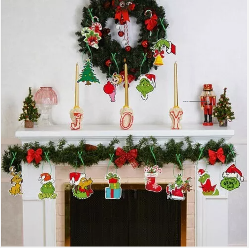 Item Length: 3.5 in Brand: Unbranded Features: Hanging Character: Grinch UPC: Does not apply Mounting Type: Hanging Country/Region of Manufacture: United States Occasion: Christmas Personalize: No gtin13: Does not apply Number of Items: 32 Color: Multi Color Type: Does not apply Material: Paper, Cord