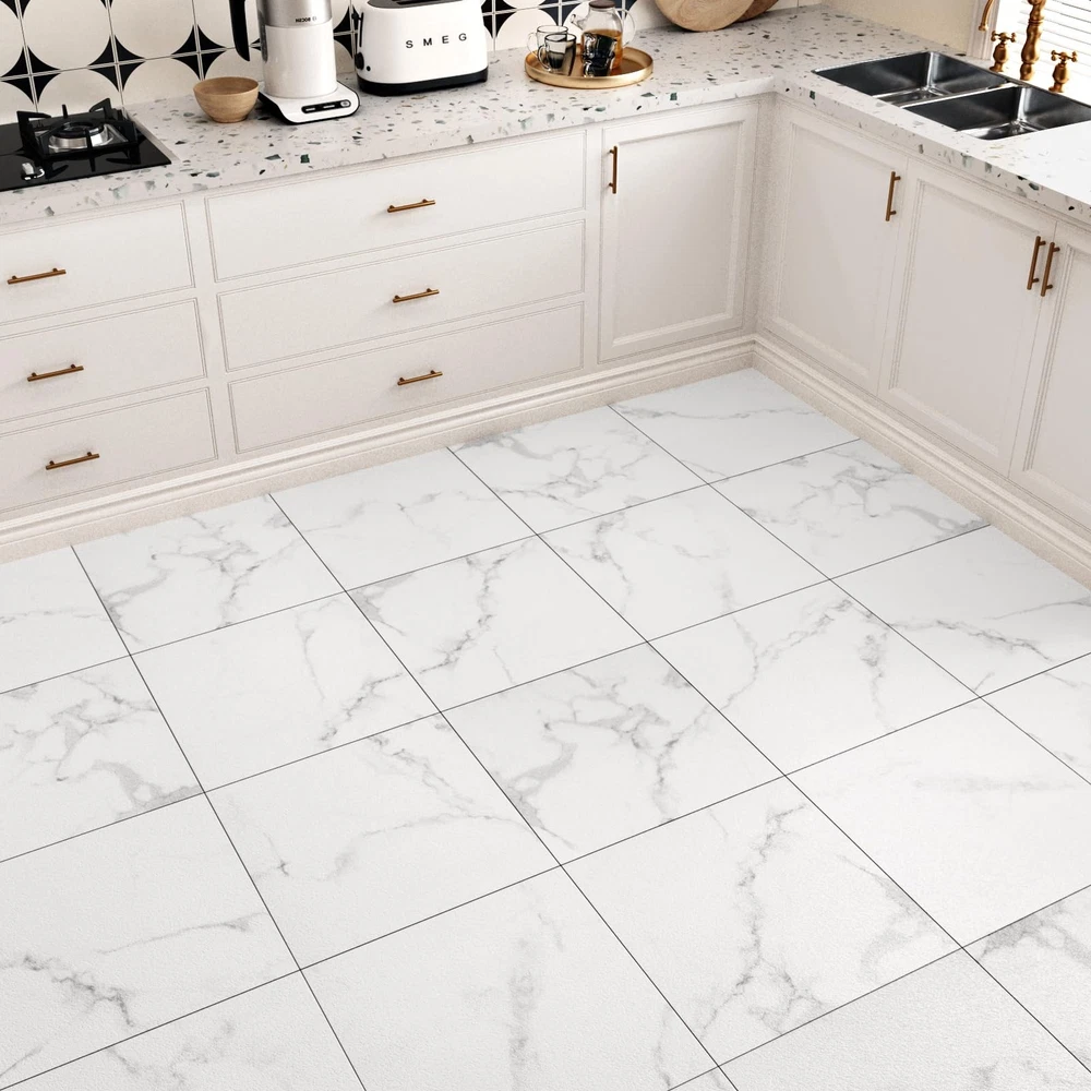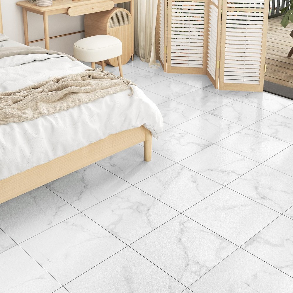 "Size: 12x12 inch,thickness is 0.058 inches/per tile, Waterproof. Self adhesive vinyl flooring are a peel and stick product, just peel off, used for house owners, renter friendly, making them ideally suited for DIY. Easy to install: No grout or special tools needed. Easy to cut, great adhesion allows them to be lifted for adjustment, removable without damaging the target surface and leaving sticky things. The stick and peel floor tiles are made of upgraded vinyl, thickened and durable version. Don't need to worry about damage easily. Tips: Please buy enough wallpaper at one time to avoid slight color difference between different batches. Before using peel and stick vinyl flooring, try to keep the surface dry, clean and smooth. Due to different angles of camera and light, there might be slight chromatic aberration." Peel and Stick Vinyl Tile: Easily transform any flat and dry flooring with our Vinyl Flooring Tiles. Our 32 pcs white marble floor tiles are perfect for DIYers as they require no grout or special tools for installation.Just peel and stick. Detailed Design: 12" x 12" x 1.5mm, (4 tiles per box). 1.5mm≈0.058 inches. 32 pieces of vinyl tiles can cover 32 square feet . Our vinyl flooring tiles offer an affordable way to give your room a brand new look. The white marble design is timeless and will elevate the aesthetic of any space. and stick it to the surface. It can decorate your space. Versatile Application: Our peel and stick vinyl flooring tiles are ideal for indoor use. They are waterproof and easy to install, making them perfect for renters, kids' playrooms, entryways, gyms, dance rooms, kitchens, bedrooms, and bathrooms. Durable and Waterproof: Our vinyl flooring tiles are protected with a sturdy layer that makes it resistant to scratches, dents, stains, and water damage. It's easy to install, simply stick on floor and easy to cut.This ensures that your floors remain stylish and functional for years to come. TIPS:There may be slight color differences in different batches. Please order enough pieces at a time to avoid color differences. If you have any questions about thicken marble vinyl flooring, please feel free to contact us or ask in Q&A.