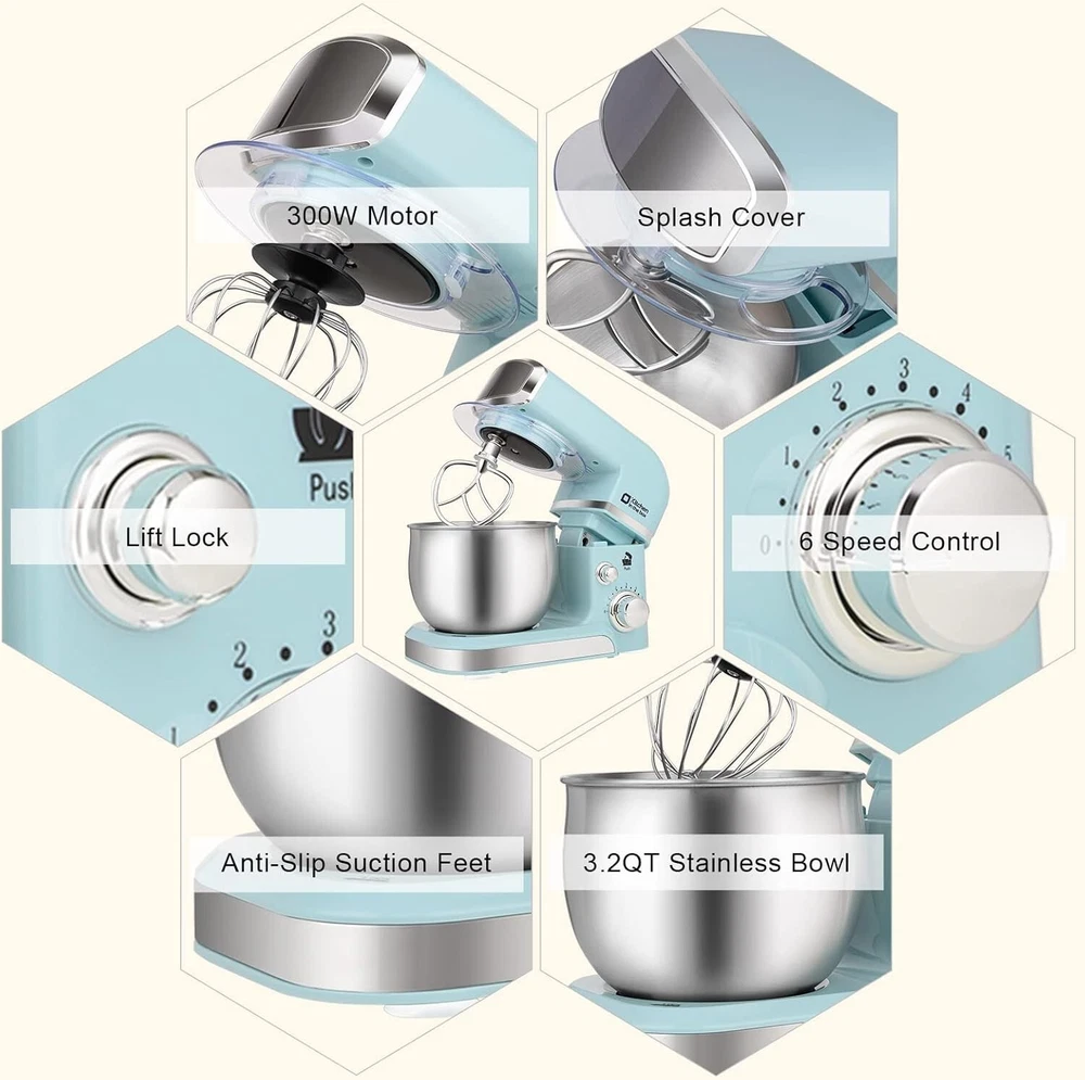 3.2Qt Stand Mixer with 6 Speeds - Compact Lightweight Electric Food Mixer Kit