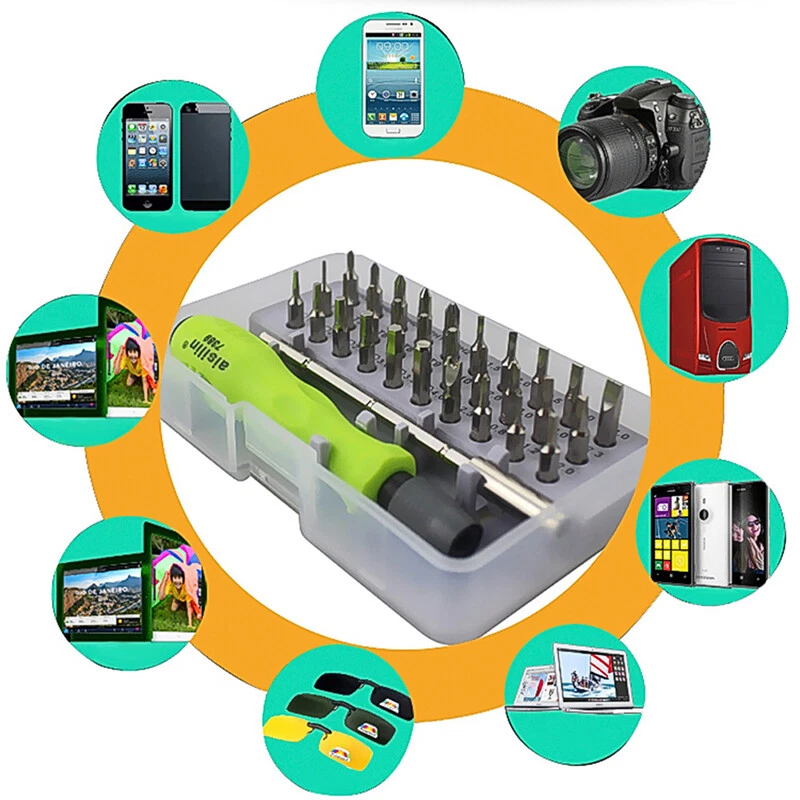 brand new and high quality Material: PP & TPR & for CR-V steel Color: as shown in pic This set of tools are designed for repair most mobile phones (include for hard drives and other electronic product. They are essential tools for family use. Features: 32-in-1 interchangeable precise manual tool set. Professional portable hardware tools. Light weight, compact design. High hardness and good toughness. PP&TPR material, non-slip handle. By using this set of tools, you can remove the small part of your cellphone/computer...and repair the device without damaging it. Size: 10cm Extended bar 10.3cm Handle 12 x 7.5 x 3cm Case Quantity: 1 Set Note: Manual measuring, please allow 0-1cm error,thank you. Due to the difference between different monitors, the picture may not reflect the actual color of the item. Thank you!!! 1 10.3cm Extended bar 1 * 10.3cm Handle 30 * types Screw driver 1 * for case