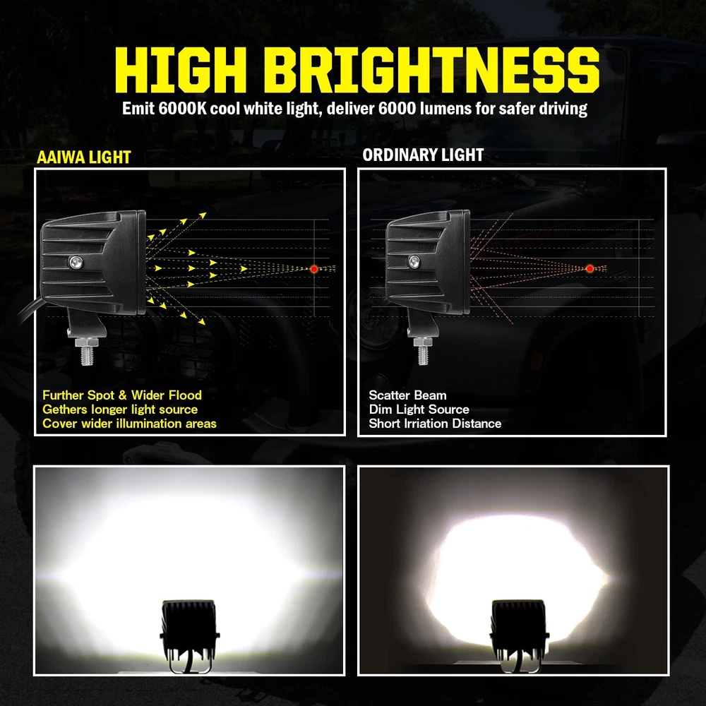 Store Categories Store Categories LED Work Light LED Light Bar 5x7" LED Headlight 4x6" LED Headlight LED Whip Light Jeep Light Mounting Brackets Front & Rear Bumper Accessories Toys For Kids Auction Others Floor Mat Clearance 20% OFF Shipping labels E-bike Other 32inch LED Work Light Bar Triple Row+ 3'' Inch LED Work Light Cube Pods Driving Features: Waterproof, shockproof, rustproof, dust proof Designed to handle the harshest environments UPGRADED REFLECTORS AND LEDs brings a more perfect combo beam Combo beam pattern for complete lighting coverage and superior visibility Solid die-cast aluminum body for extra durability while doubling as heat sink 32 Inch Led Light Bar Specification: Condition: New Dimension:32inch Operating Voltage: 10-30V DC Lumens:40500lm Light Color: White (6000K) Beam Type: SPOT+FLOOD COMBO Working Temperature:-40~85℃. Warranty:3 years Waterproof Rate: IP68 Certificates:CE/RoHs/IP68. Fitment Type: Direct Replacement Mounting Bracket: Stainless Steel Body Material: Aluminum Housing Lifespan: 50000 hours It is used on any vehicles, ATV, SUV, mining, boat, Jeep, Excavators, truck, tractor and other heavy equipment. It use the latest LED technology, Supplying superior light output and will not drain your battery. Saving more energy, efficient and so on. 3"inch Led Work Light Specifications: Housing material: black die-cast aluminum housing Lens material: impact resistant polycarbonate Beam pattern: combo Color temperature: 6000k High-intensity LED: 12pcs Led Wattage: 120W/pair Lumen: 12000LM/pair Lifespan: 50,000+ hours Ip68 compliant: dust / water ingress Operating voltage: 9-30V DC Operating temp: -40℃ to 85℃ Certified by CE & ROHS Applications: This compact and universal product can be installed in any location you see fit so that no matter what make and model you drive, such as front or rear bumper, bull bar, hood, A pillar, roof rack, truck bed, or other places. Fit for pickups, trucks, SUVs, 4x4, ATVs, UTVs, boats, and all your favorite off-roading vehicles. They can be used as driving lights, fog lamps, search lights, work lights, off road lights, backup reverse lights and more. Box come with: 2pcs 3 inch cube LED lights Excellent Service: Quick reply within 24 hour Professional Technic support Responsible Easy communication Specification: Condition: New Dimension:32inch Operating Voltage: 10-30V DC Lumens:40500lm Light Color: White (6000K) Beam Type: SPOT+FLOOD COMBO Working Temperature:-40~85℃. Warranty:3 years Waterproof Rate: IP68 Certificates:CE/RoHs/IP68. Fitment Type: Direct Replacement Mounting Bracket: Stainless Steel Body Material: Aluminum Housing Lifespan: 50000 hours It is used on any vehicles, ATV, SUV, mining, boat, Jeep, Excavators, truck, tractor and other heavy equipment. It use the latest LED technology, Supplying superior light output and will not drain your battery. Saving more energy, efficient and so on. Payment Shipping Returns Contact Us Feedback Payment We accept PayPal, Google Pay, VISA, Master Card, Amex. Credit card payment can also be made via PayPal E-check payment will be held until the payment is cleared. Item can only be shipped out when all payment is cleared. Please make sure your eBay address is correct before you pay. All the unpaid case will automatically opened after 4 days because the ebay final value charge of the transaction. Shipping All shipment will ship by UPS, USPS,Fedex Or DHL. We know you’re keen to receive your order as quickly as possible. Please note eBay’s delivery date estimate at the top of the listing. United States: 3-7 business days . Other countries: no more than 12 business days . Package will be sent out within 24 hours after the pament is cleared. We will not be responsible for any delivery failure due to unclear address. Delivery is not available on weekends, public holidays or after business hours. CANADA & International customers please note: your government might charge a duty tax (brokerage fees). We do not responsible for any custom duty or import tax. If you have any questions or issue about delivery, please contact us via eBay Messages and we will do our best to make sure you’re happy. Returns Although rare, we understand that an order might need to be returned to us for a number of reasons. Please contact us before sending anything back to make sure the correct process is followed. We will accept returns or refund or exchange if they are unused and unmarked within 60 days . If you received wrong of defective products, please take photos and contact us to confirm. We must protect your interest as promsied. Remember to contact us via eBay message firstly. Don't open the return request. Contact Us Office Opening Times: Monday to Friday-9:00AM-19:00PM .. We do our best to respond within 12-24 hours. If no response within 24 hours, please check the spam in your mail box. If you have any questions or issue about delivery, please contact us via eBay Messages and we will do our best to make sure you’re happy. Ask us about bulk discounts if you want to buy 3 or more. Our store is good ebay seller and we are renowned auto suppliers seller in China who had earned the highest feedback on high quality we have factory in HongKong. Our Company is a Branch company that of a manufacturer which producing of the LED and HID products,we move and in charge our main business in E-commerce on eBay,Aaiwa engages in lighting equipment and accessories for the car and vehicle Feedback We apprecaite your business and strived to improve our customer service and our commitment to quality. We will leave a postive feedback immediately after payment is received. We appreciate a positive feedback as much as you do. Please do NOT leave negative or neutral feedback . If for some reason there is any issue with the purchase, please contact us prior to leaving feedback, and we will be glad to work with you to have it resolved.