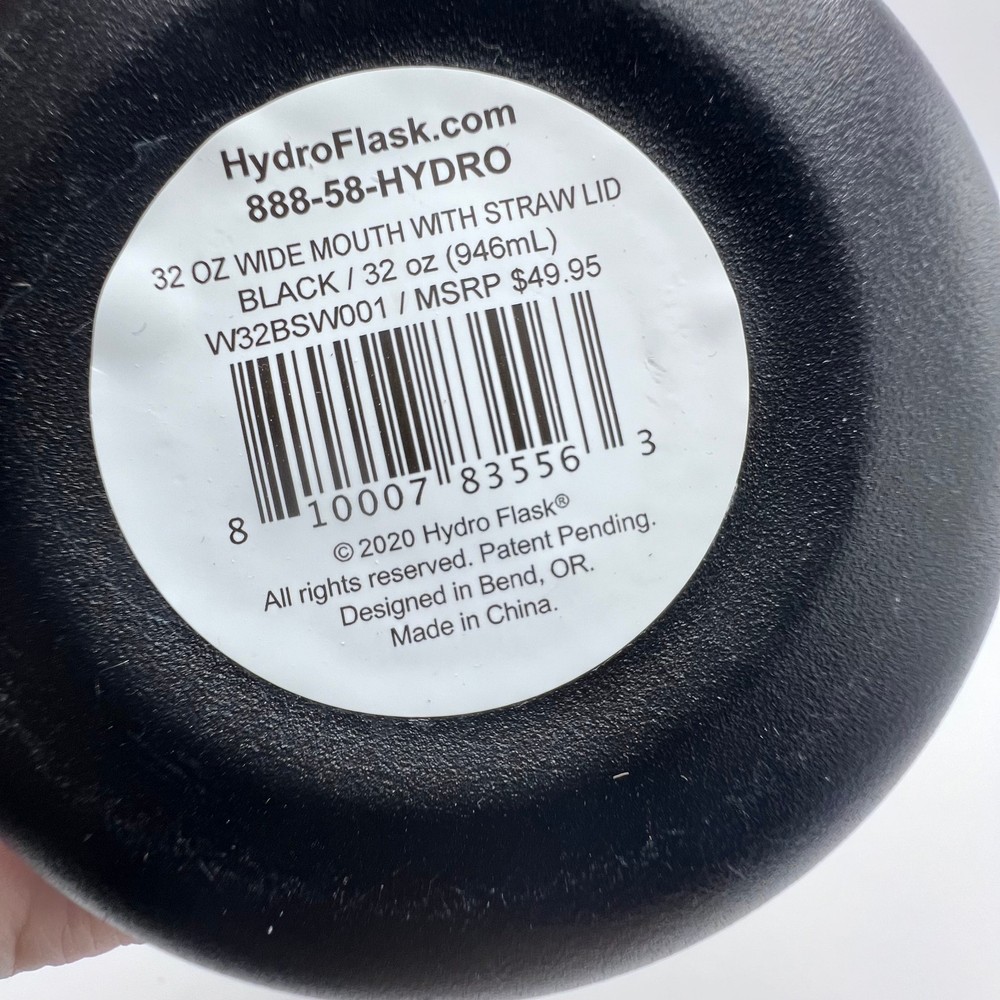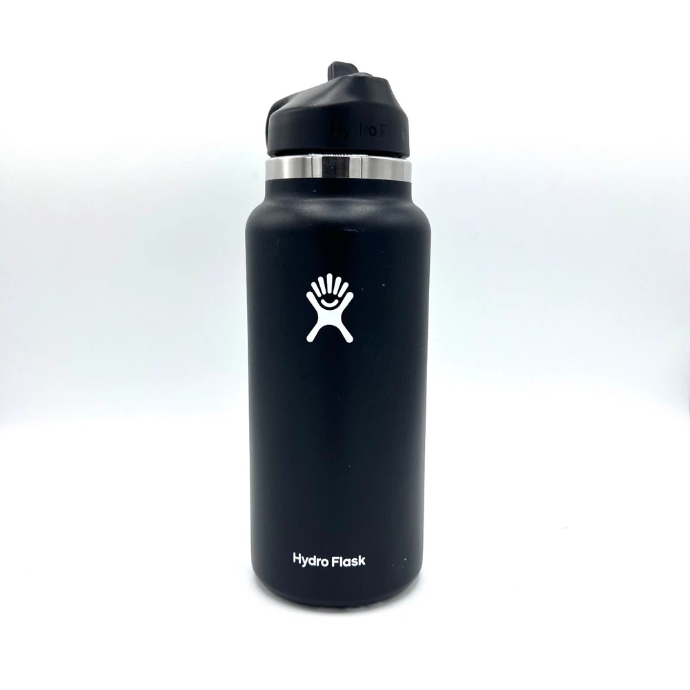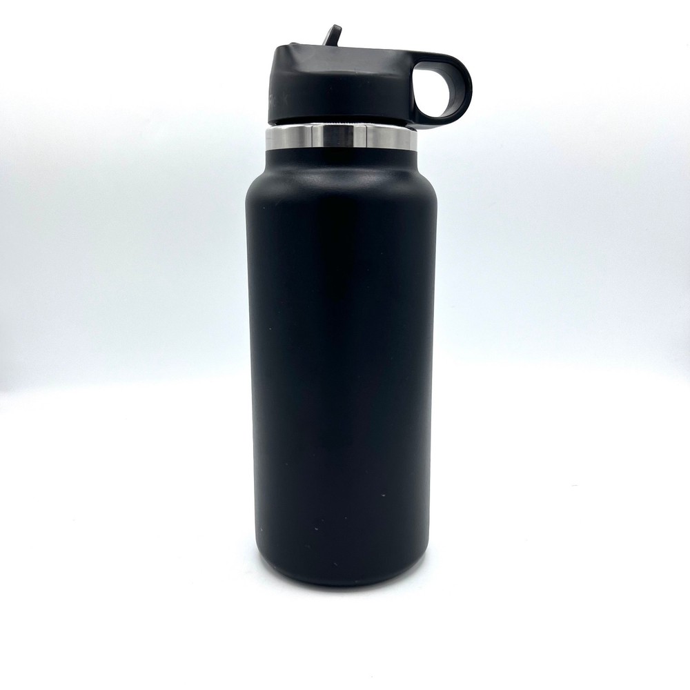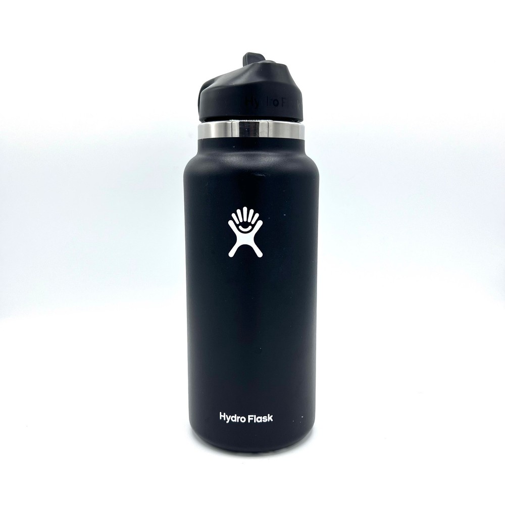 32oz BLACK Hydro Flask Water Bottle Stainless Steel Wide Mouth with Straw lid