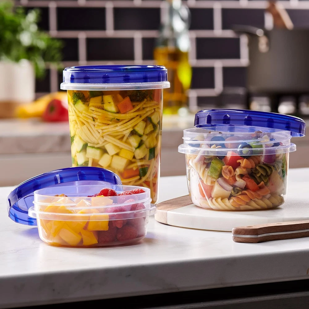 These food storage containers are a game-changer! The twist-cap lids seal tight, keeping leftovers fresh and leak-free. Perfect for meal prep, the 32oz size holds plenty, and they’re freezer and microwave-safe. Love the vibrant blue color—easy to spot in the fridge. Great value for a 6-pack!