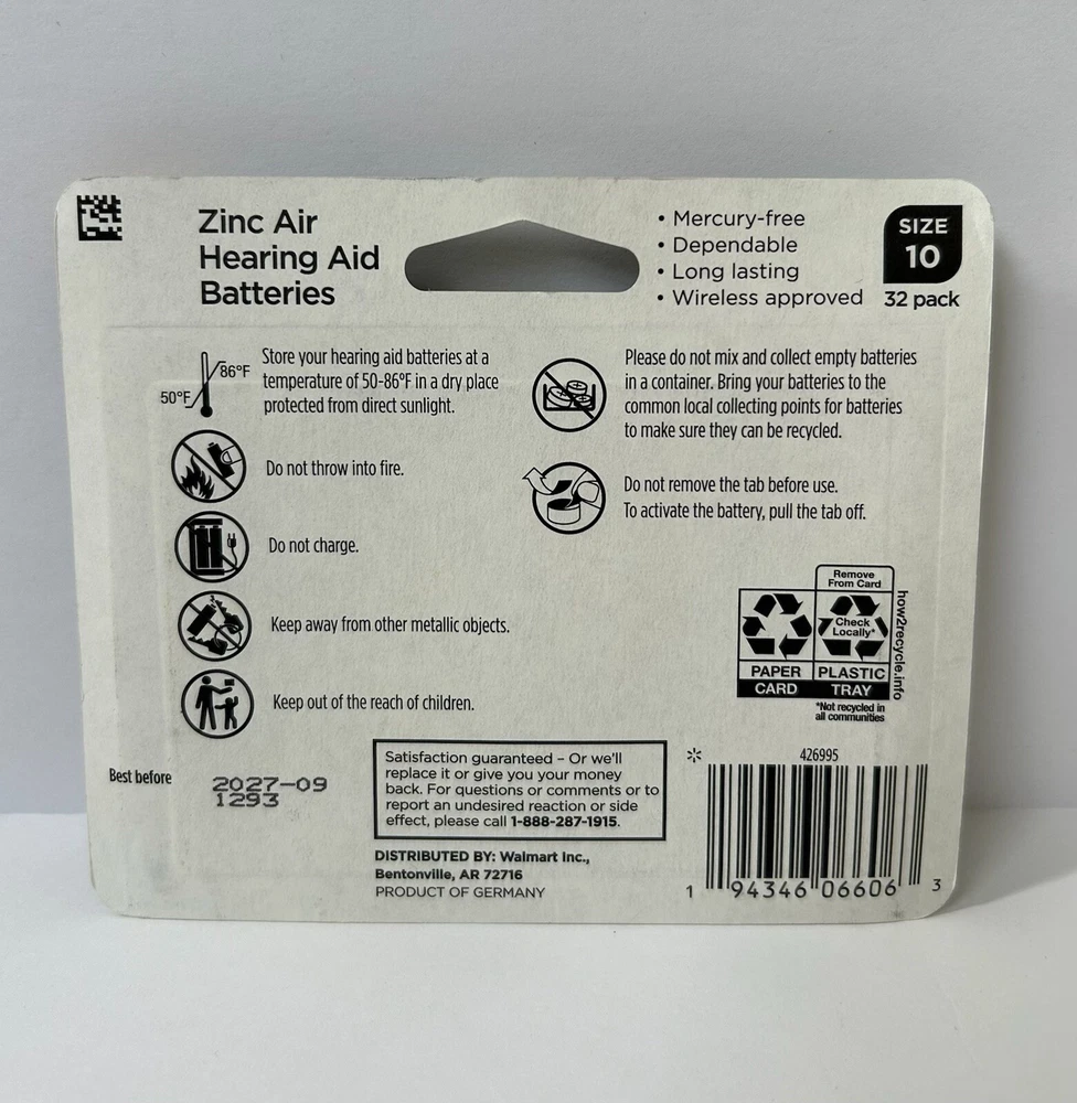 32-pack Hearing Aid Batteries Size 10 - Equate