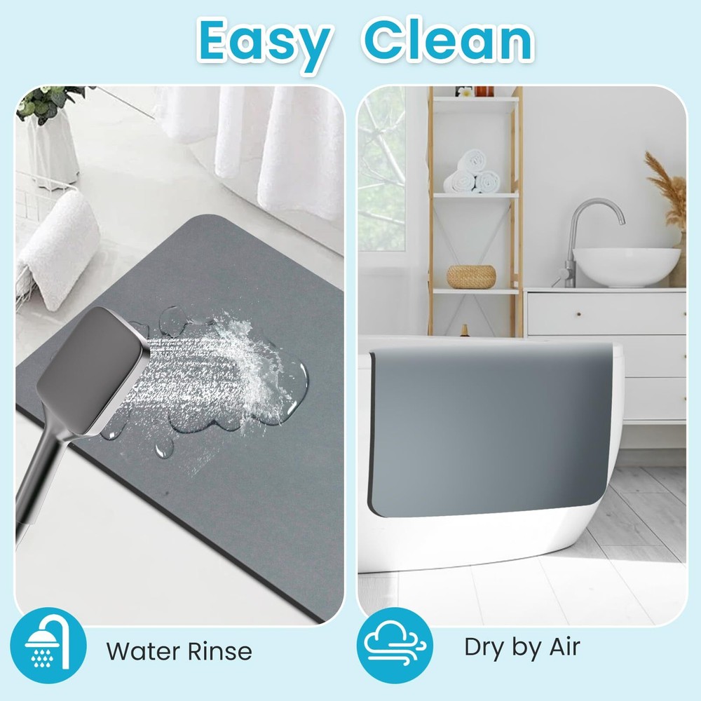 Bath Mat Rug 32"x17.8" Bathroom Mat Non Slip Bath Mat Quick Dry Super Absorbent Bathmat Bath Rug Bathroom Rug Easy to Clean Rectangle Grey 【Absorbent & Quick Drying】:The bath mat for bathroom is made of diatomite materials,which is easier to dry than normal plush mat. They can absorb as much water as possible from your wet feet immediately when you come out from bathtub or shower. This super absorbent bath mat will keep your space clean and safe. If you want to dry it quickly, just hang to air dry for one night. 【SOFT & COMFORTABLE】:The diatomite shower mat for bathroom contains a cushioning sponge layer for added comfort.,When you get out of the bathtub or shower, your feet will feel very soft on the surface. You won't feel cold or hard anytime. Enjoy a dry and comfortable experience after your shower. 【NON-SLIP BACKING Design】:The bathroom mat is designed with a rubber backing, it have a strong adsorption to the ground preventing slips and skids on wet surfaces. You can step out of the shower or bathtub with confidence 【Wide Use & Warmer】: This thin bathroom mat is suitable for wherever is easy to get wet, such as shower or bathtubs.Used for door mat, laundry room mat, kitchen mat, pet feeding mat, plant placement mat, desk mat, sink mat, living room mat,RV mat etc, You won’t feel cold in winter and won’t feel hot in summer when step on it. It's more than a mat for bathroom. 【Easy Clean & Durability】:The washable bathroom mat’s surface is designed to be smooth,unlike the plush bathmat. Never worry about cleaning hair and dust anymore.Just clean it with a damp cloth or rinse with a shower nozzle,even without the need of machine & hand washing. The rubber bath rug for bath room is used longger without problems caused by fibers, like fading, shedding, wearing. 【Best After-sales Service】: If you have any problem, please contact on us straightly. We will give you a satisfactory answer. SHIPPING Domestic Buyers - We have confidence in our products, but if you are not fully satisfied please contact us within 30 days of purchase and you will get full refund. - We ship within 3 business days of payment, usually sooner - We offer FREE shipping on all orders! - We only ship to the lower 48 states, no APO/FPO addresses or PO Boxes allowed International buyers – please note: Import duties, taxes, and charges aren't included in the item price or postage cost. These charges are the buyer's responsibility. - Please check with your country's customs office to determine what these additional costs will be prior to bidding or buying. * Order Cancellation Policy ** You can return a product for up to 30 days from the date you purchased it. 1. The seller reserves the right to cancel the special case only due to eBay cancellation fee. 2. The decision of seller is the final. 3. The seller will respond to the cancellation request within 2 business days. Please wait for the result of cancellation. 4. In case the cancellation is not completed by some reasons, the buyer can follow the options below to get the refund. 4.1 The buyer can reject the item when it arrives. 4.2 The buyer can send the item back to the seller within 30 days If the buyer receives item (USA Shipment ONLY). The seller will provide the FREE return label to the buyer when the buyer opens " Return Item" case on eBay by using the reason as "Change my mind" ONLY. 5. When buyer has placed the order. The order will be processed and completed by automatic warehouse system within 5 minutes. In case that buyer sends the cancellation request after 5 minutes of placing the order, the request will be rejected. **Sending direct message to cancel the order is not allowed for every case.* Return Policy For the return case - If buyer would like to return the items for refund or replacement, please CONTACT SELLER to receive the free return label from seller. The refund or replacement will be processed with the tracking number of return label which is provided by seller only. The other ways of return which are not approved by seller will not be processed for the refund or replacement.