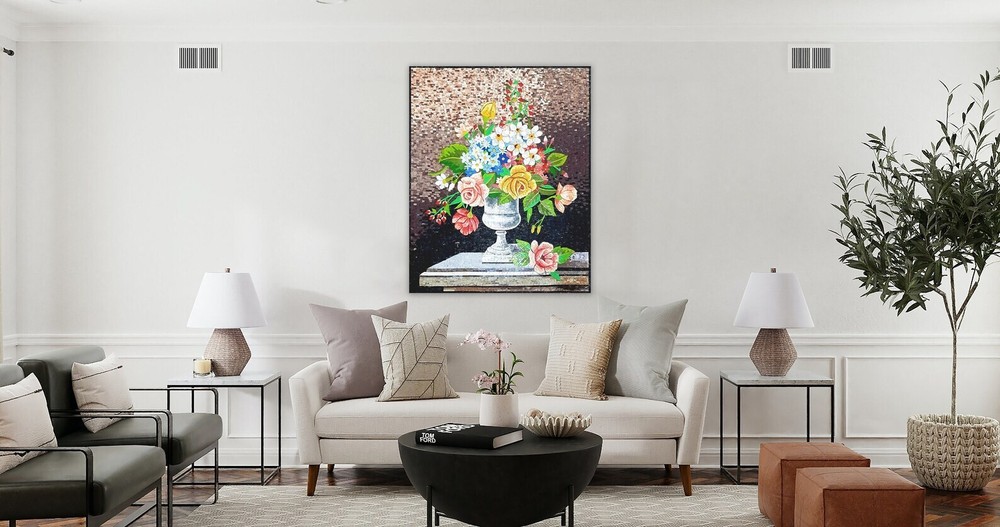 Size (80x 100 )cm / (32" x 40")inch Foundation : mesh backing Thickness : 5 mm Material : Marble & Stone Processing Time : 1-2 weeks Can be customized to any Size or Color as needed Add a touch of elegance to your home decor with this stunning handcrafted marble tile. The 47"x32" rectangular tile features a beautiful art deco style mosaic design made from natural stone, marble, stone, and granite. The tile is 5mm thick and has a matte finish. This interior wall tile is suitable for use in various rooms such as the conservatory, bathroom, kitchen, living room, patio, hallway, and more. It is chemical resistant, frost-resistant, waterproof, and water-resistant, making it a perfect choice for outdoor and indoor use. Features : * Easy installation, Your mosaic will reach you in one piece rolled as a carpet on a mesh backing. * Our mosaics are suitable for both indoors or outdoors. Installation : Your mosaic will reach you in one piece rolled as a carpet on a mesh backing. Installation of the mosaic is carried out in a similar manner as installing standard ceramic tiles and does not require special tools or professional skills Although feel free to contact us if you need any help , we can guide you through The installation process. Made to Order : All our mosaics are made to order. we need from 1 week to 2 weeks in order to finish your order , For the larger quantities we can organize to make better production lead time. Please note that our mosaics are Hand-cut which means that the colors might slightly vary from the images on ebay. we can't guarantee an exact replica. Your masterpiece will have slight variations in color and cut of the tiles that will make it truly one of a kind. Customization : Whether you seek to personalize the dimensions or colors of this mosaic, or draw inspiration from a picture or nature, we're here to create the handmade custom mosaic of your dreams.