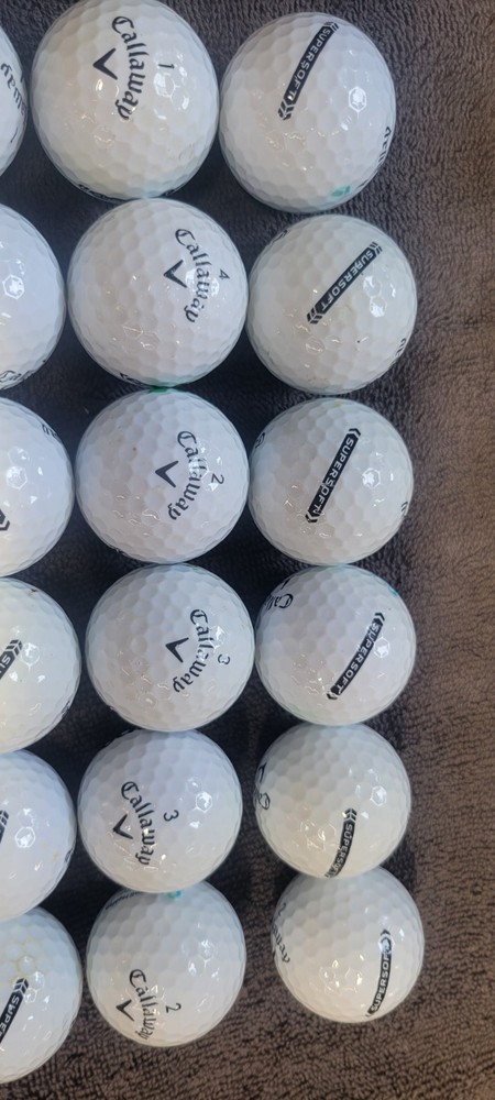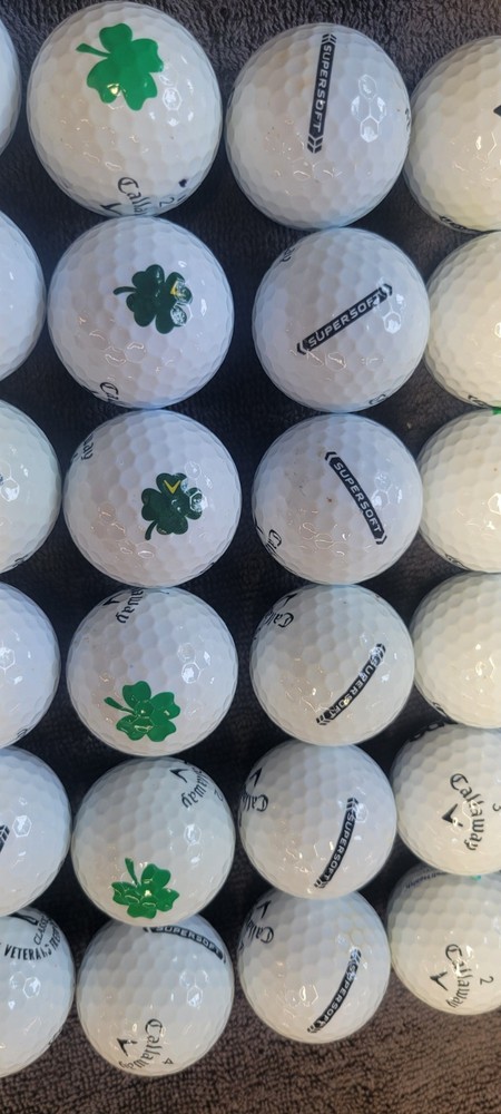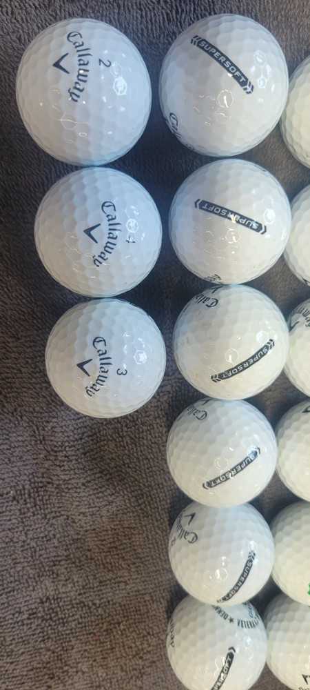 A total of 33 Callaway supersoft golf balls, all are near mint condition.,plus 4 superhot, one max. and one Superfast ball ,39 total. a lot of these have logos, or player marks, the balls in the photos are the balls you will receive. buyer will pay shipping.