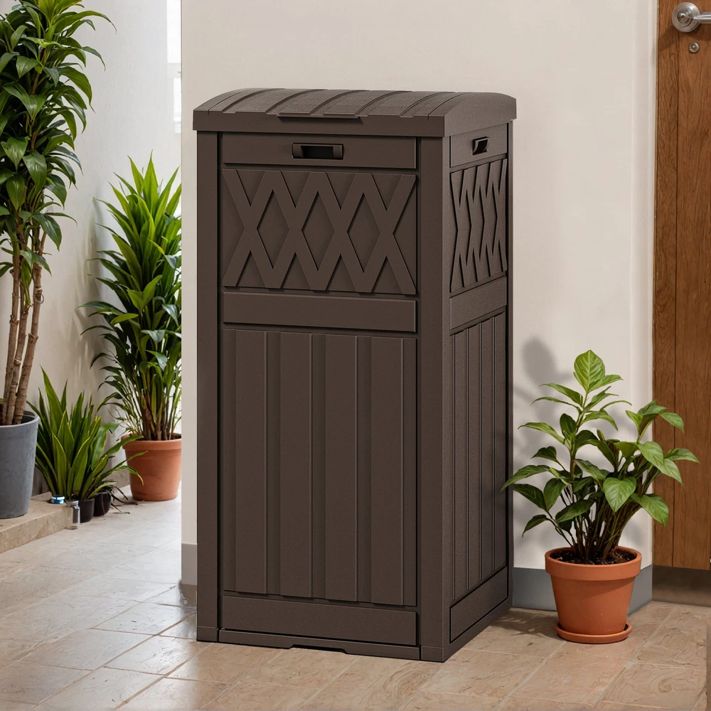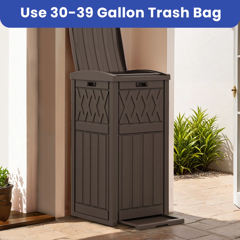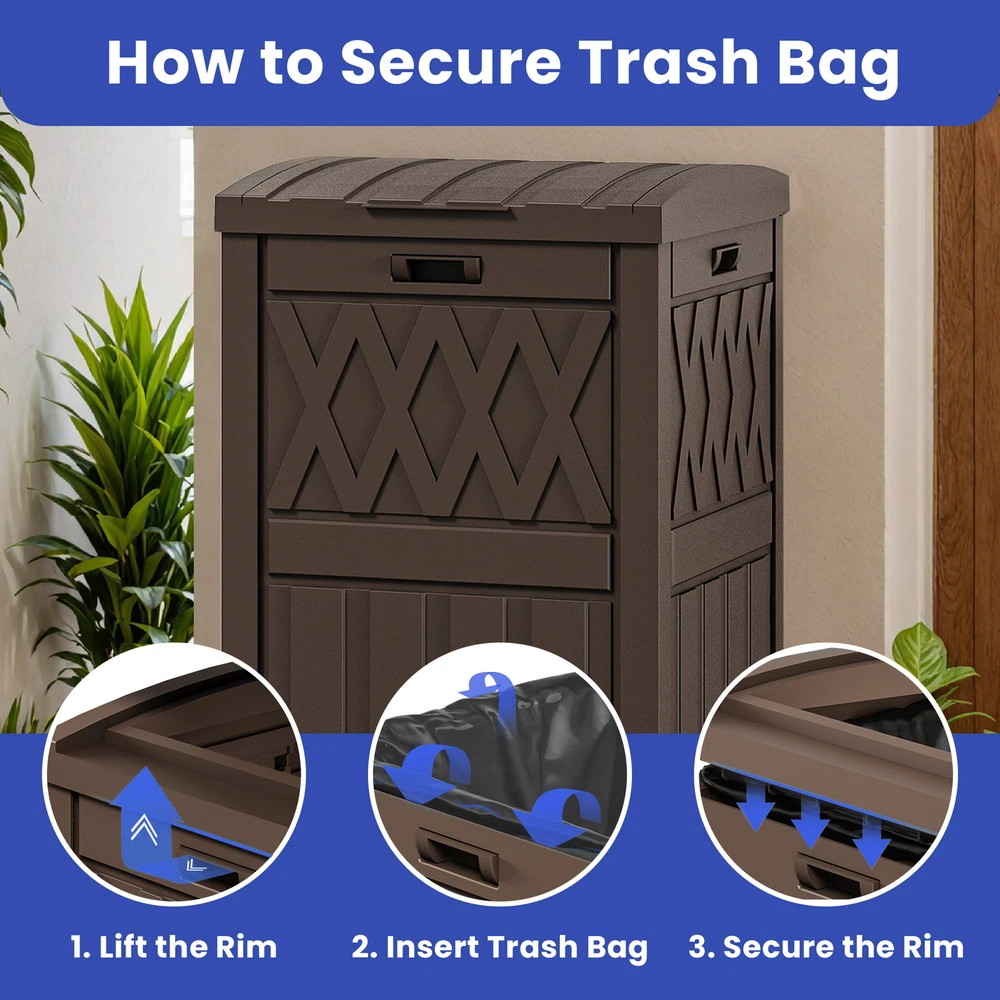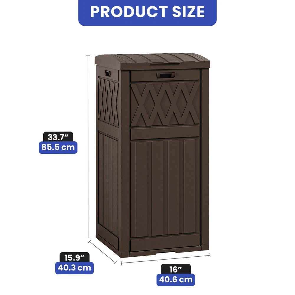 33 Gallon Outdoor Trash Bin Storage Can Garbage Kitchen Waste Lock Odorless Tray Product Description NOTE: Professional Installation would be Highly Recommended. Description: 1. Color : Brown 2. Features : Anti Fading, Lockable Lid, Removable, Water/Weatherproof 3. Material : Polypropylene and Resin 4. Room : Garage, Kitchen, Laundry Room, Patio, etc 5. Suitable For : Food Waste, General, Indoor/Outdoor, Paper, and Plastic Features: Spacious and Functional Design With dimensions of 16"L x 15.9"W x 33.7"H and a weight capacity of 53 lbs , our bin accommodates all your waste needs without frequent emptying. Our single compartment design ensures easy sorting and disposal. It’s a practical addition for both small and large households. Weatherproof and Fade-proof for Outdoor Versatility Built with premium waterproof materials . Our bin stands up to harsh weather and proofs fading for long-lasting beauty in any environment. Whether placed outdoors or indoors, it maintains functionality and aesthetic appeal for years to come. Enjoy reliable performance without compromising on style. Secure and Practical Lockable Lid Our lockable lid feature keeps contents safe and secure. Protecting your trash from curious pets or wildlife. While the padlock is not included , we provide an option to add extra security for peace of mind. Ideal for managing food waste, paper, or plastics in shared spaces. Easy Maintenance and Portability Lightweight at just 16 lbs . Our bin is easy to move wherever needed, while our removable components simplify cleaning. Our included assembling hardware and instruction manual makes setup quick and hassle-free. Enjoy effortless waste management with minimal upkeep. Dimensions: 1. Maximum Weight Capacity : 53 lbs 2. Overall Dimensions : 16"L x 15.9"W x 33.7"H 3. Weight : 16 lbs Package Included: 1. 1x Outdoor Trash Bin 2. Assembling Hardware Kits 3. Instruction Manual Book *) EXCLUDING PADLOCKS Shipping 1. Normally the item will be dispatched within 1 business day if payment is cleared before 12pm PST. 2. Please verify the correct shipping address in your PayPal account before making the payment. We only dispatch the item to the address that is sent to us at the time of checkout. 3. We don't ship to Hawaii, Alaska, Puerto Rico, APO/FPO/PO Boxes. 4. We don't provide local pick-up service. 5. Normally we will use USPS, UPS, FedEx & LTL to dispatch items. Payment 1. We accept PayPal and credit card. 2. We will ship to the confirmed Paypal shipping address that is provided with the payment only. Return 1. 30 days Money Back Guarantee. 2. Please contact our customer service to receive a RMA form first if want to return the item. 3. All returned items MUST in new condition with the original package. Contact If has any problem, please contact us by sending an ebay message. Our customer service will resolve the problem as soon as possible. On Dec 3, 2024 at 21:11:48 PST, seller added the following information: