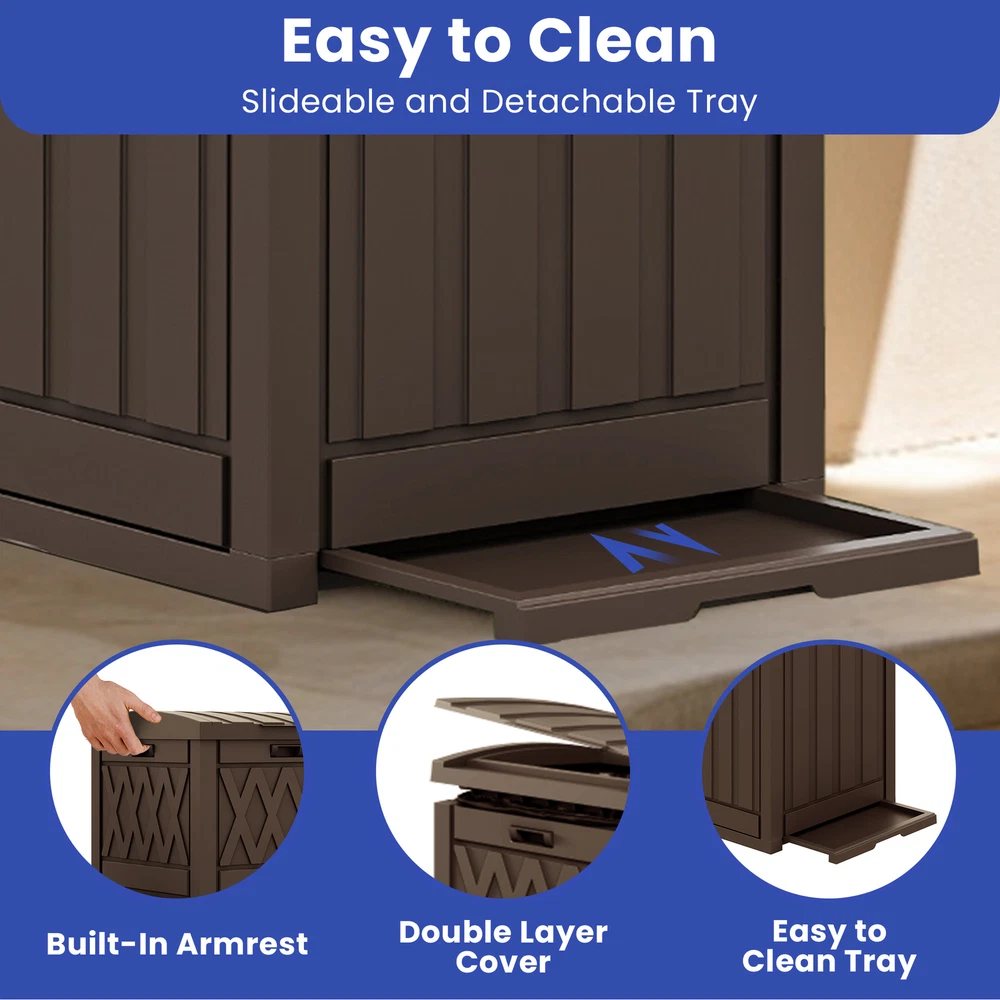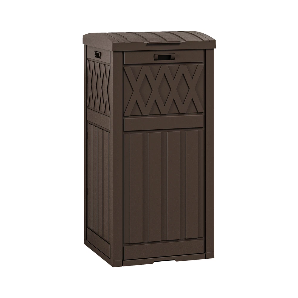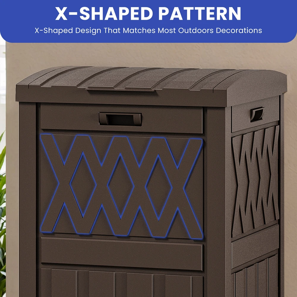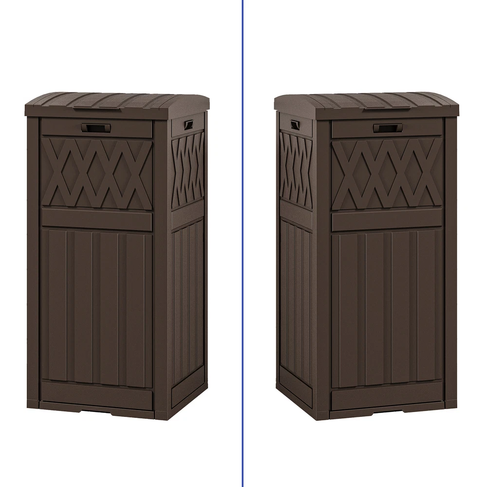 33 Gallon Outdoor Trash Bin Storage Can Garbage Kitchen Waste Lock Odorless Tray Product Description NOTE: Professional Installation would be Highly Recommended. Description: 1. Color : Brown 2. Features : Anti Fading, Lockable Lid, Removable, Water/Weatherproof 3. Material : Polypropylene and Resin 4. Room : Garage, Kitchen, Laundry Room, Patio, etc 5. Suitable For : Food Waste, General, Indoor/Outdoor, Paper, and Plastic Features: Spacious and Functional Design With dimensions of 16"L x 15.9"W x 33.7"H and a weight capacity of 53 lbs , our bin accommodates all your waste needs without frequent emptying. Our single compartment design ensures easy sorting and disposal. It’s a practical addition for both small and large households. Weatherproof and Fade-proof for Outdoor Versatility Built with premium waterproof materials . Our bin stands up to harsh weather and proofs fading for long-lasting beauty in any environment. Whether placed outdoors or indoors, it maintains functionality and aesthetic appeal for years to come. Enjoy reliable performance without compromising on style. Secure and Practical Lockable Lid Our lockable lid feature keeps contents safe and secure. Protecting your trash from curious pets or wildlife. While the padlock is not included , we provide an option to add extra security for peace of mind. Ideal for managing food waste, paper, or plastics in shared spaces. Easy Maintenance and Portability Lightweight at just 16 lbs . Our bin is easy to move wherever needed, while our removable components simplify cleaning. Our included assembling hardware and instruction manual makes setup quick and hassle-free. Enjoy effortless waste management with minimal upkeep. Dimensions: 1. Maximum Weight Capacity : 53 lbs 2. Overall Dimensions : 16"L x 15.9"W x 33.7"H 3. Weight : 16 lbs Package Included: 1. 1x Outdoor Trash Bin 2. Assembling Hardware Kits 3. Instruction Manual Book *) EXCLUDING PADLOCKS Shipping 1. Normally the item will be dispatched within 1 business day if payment is cleared before 12pm PST. 2. Please verify the correct shipping address in your PayPal account before making the payment. We only dispatch the item to the address that is sent to us at the time of checkout. 3. We don't ship to Hawaii, Alaska, Puerto Rico, APO/FPO/PO Boxes. 4. We don't provide local pick-up service. 5. Normally we will use USPS, UPS, FedEx & LTL to dispatch items. Payment 1. We accept PayPal and credit card. 2. We will ship to the confirmed Paypal shipping address that is provided with the payment only. Return 1. 30 days Money Back Guarantee. 2. Please contact our customer service to receive a RMA form first if want to return the item. 3. All returned items MUST in new condition with the original package. Contact If has any problem, please contact us by sending an ebay message. Our customer service will resolve the problem as soon as possible. On Dec 3, 2024 at 21:11:48 PST, seller added the following information:
