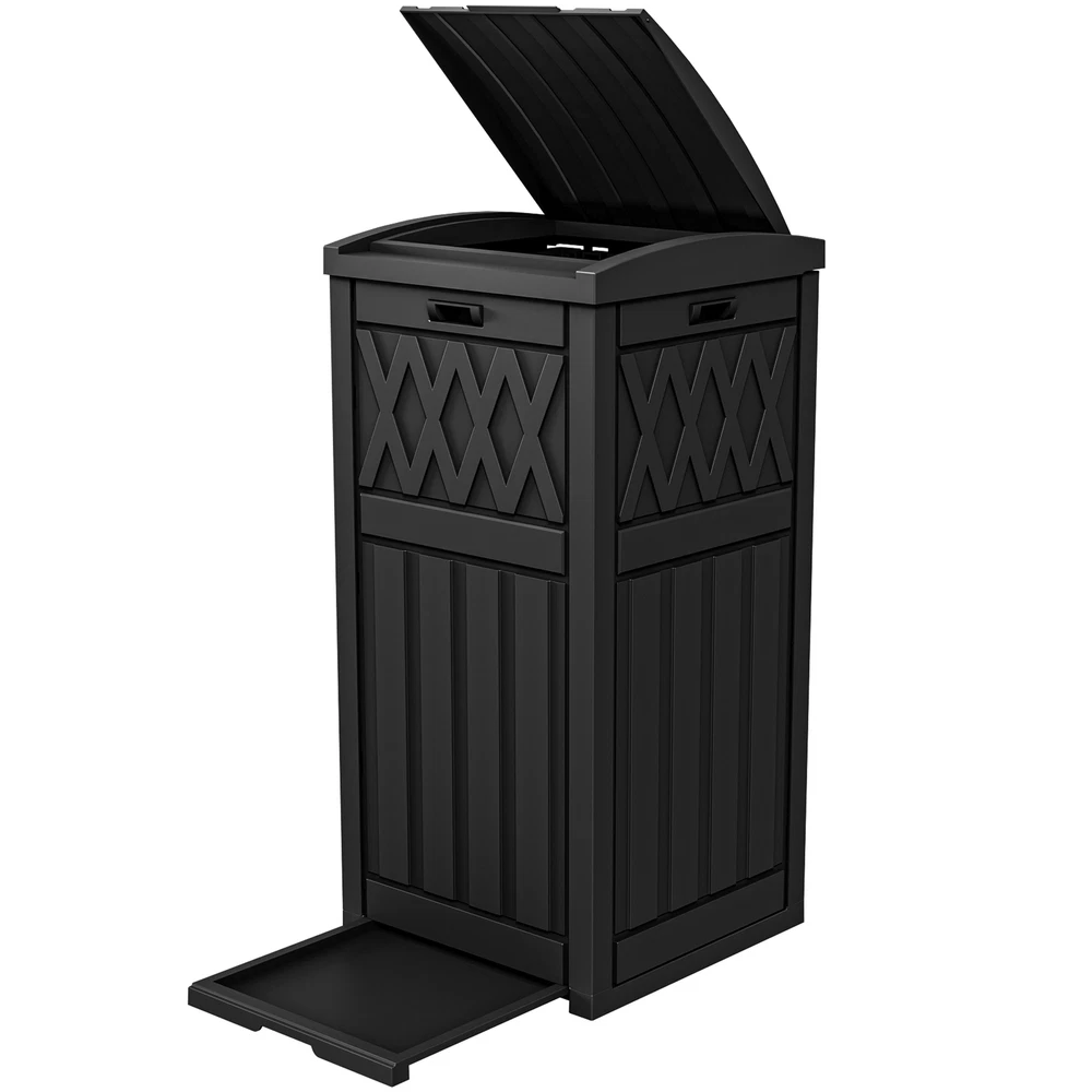 seattle-design Product Description Spacious and stylish: Measuring 16.02 "long x 15.94" wide x 33.66 "high and holding 33-39 gallon garbage bags, our trash cans are perfect for both indoor and outdoor use; The stylish design adds a touch of elegance to your patio, garden, porch, backyard or deck while keeping litter clean Weatherproof construction: This trash can with a lid is made of sustainable and strong resin material for durability; It provides effective protection against water, fading, bending and various weather conditions Layered cover design: Special double cover design with removable plastic edges to hold garbage bags and hinged covers for easy access, efficient capture of odors, and cleaner living Spaces Sliding drip tray: The bottom of the outdoor trash can is equipped with a movable smooth sliding tray, which can catch the liquid leaking from the garbage bag for easy cleaning Toolless assembly: Simple snap-on assembly takes only 10 minutes and all panels are effortlessly glued together without screws or tools; Includes a detailed manual for easy setup of kitchen trash cans Product Details Shipping 1.The shipping rates listed are only for residential or commercial destinations in the continental 48 United States. All international sales will go through eBay Global Shipping Program.please ask us if there are any questions. 2.We only ship the item to the address that is sent to us at the time of checkout. Please verify the correct shipping address in your PayPal account before making your payment. If we ship your item to an old or invalid address and you are not able to locate the item, we are not responsible for shipping a replacement. 3.Currently, we do not ship to Hawaii, Alaska, Puerto Rico,APO/FPO/PO Boxes. 4.We use USPS, UPS & FedEx as shipping method. 5.Payments cleared before 12 PM PST, will be shipped on the same day. Payment 1.We accept PayPal and all forms of credit card. 2.We will only ship to the confirmed Paypal shipping address given with the payment. 3.We do not offer local pick up service. Return 1.30 days Money Back Guarantee. 2.If any package that needs to be returned, please contact our customer service first to receive a RMA form. 3.All return items MUST be in brand new condition. About Us 1.Specialized in aftermarket auto parts since 2012, we source and work directly with professional manufacturers to provide the highest quality parts at the most economical prices. 2.We also has over 5 years of shipping experience with FedEx and USPS . Our Packing Quality is Guaranteed , Item Ship-ping is timely!