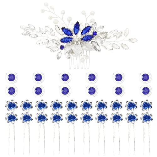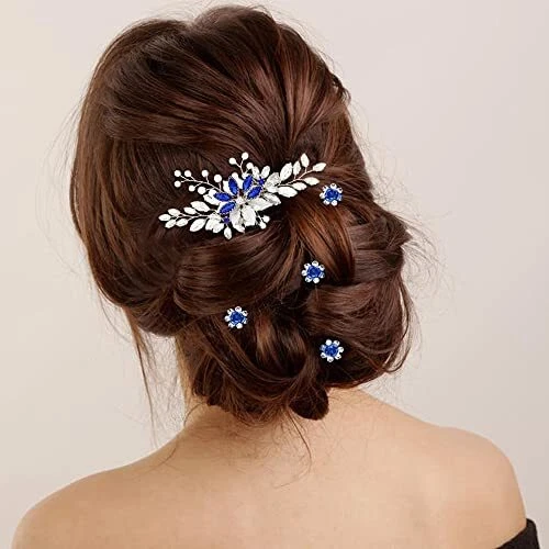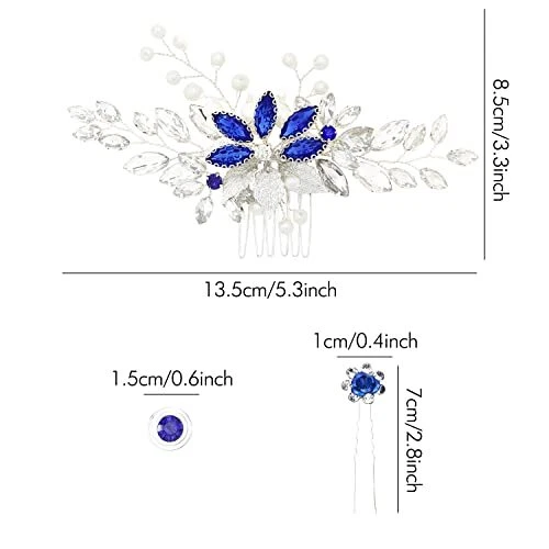 Return Policy Fast Delivery Trusted seller 33 Pack Royal Blue Rhinestone Pearl Crystal Leaf Flower Bridal Hair Side Combs+Spiral Gems Hair Clips+U Shaped Hair Pins Wedding Headpieces Accessories for Women Girls Brides Bridesmaids Product Description Material: Every hair side comb or hair pin is handmade by high quality alloy decorated with artificial rhinestones, crystals or pearls. Excellent materials make these wedding headpieces more elegant, unique and pretty. Main Color: Royal blue, special color for you. What You Get: 33 pack in total as photo show (1pc hair side combs+32pcs U-shaped hair pins) in the good package. Size: See the size photo on the left. Different sizes and styles are enough for you to do your hair styles. Design: Well made bridal hair accessories. Flower or leaf hair side combs/hair pins with artificial rhinestones, crystal and pearls decoration. Beautiful look and easy to use. They are good assistant for you to DIY your own hairstyles. Make women, brides or bridesmaids more charming and graceful. Occasions: These exquisite wedding headpieces are perfectly suitable for brides or bridesmaids to wear at a wedding party or as photography props in photo shoot. Also as great gifts for your friends or relatives. Shipping Returns Payment Shipping Shipping is FREE to all addresses other than APO/PO boxes in the lower 48 states. All our stock ships from US-based warehouses. Shipped via USPS or UPS (depending on location and package weight) Unless stated otherwise, all orders will ship within 24-72 hours of your payment being processed. Check our feedback to see the great reviews of FAST shipping we offer. Returns Seller does not accept returns Payment We currently accept payment via eBay managed payments only. Once payment is cleared, we will dispatch your shipment within 1-3 business days. Please refer to the "Shipping" tab for more information regarding shipping speed to your destination.