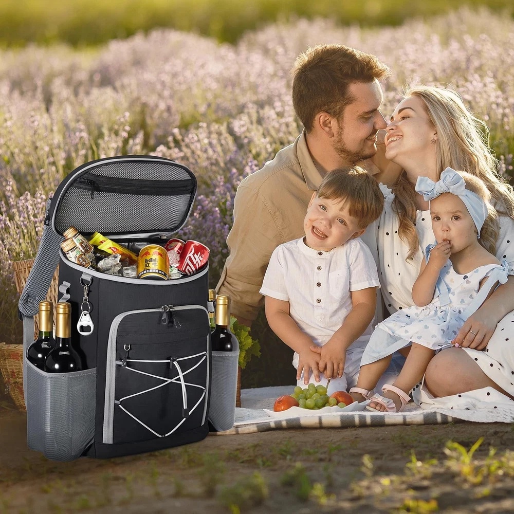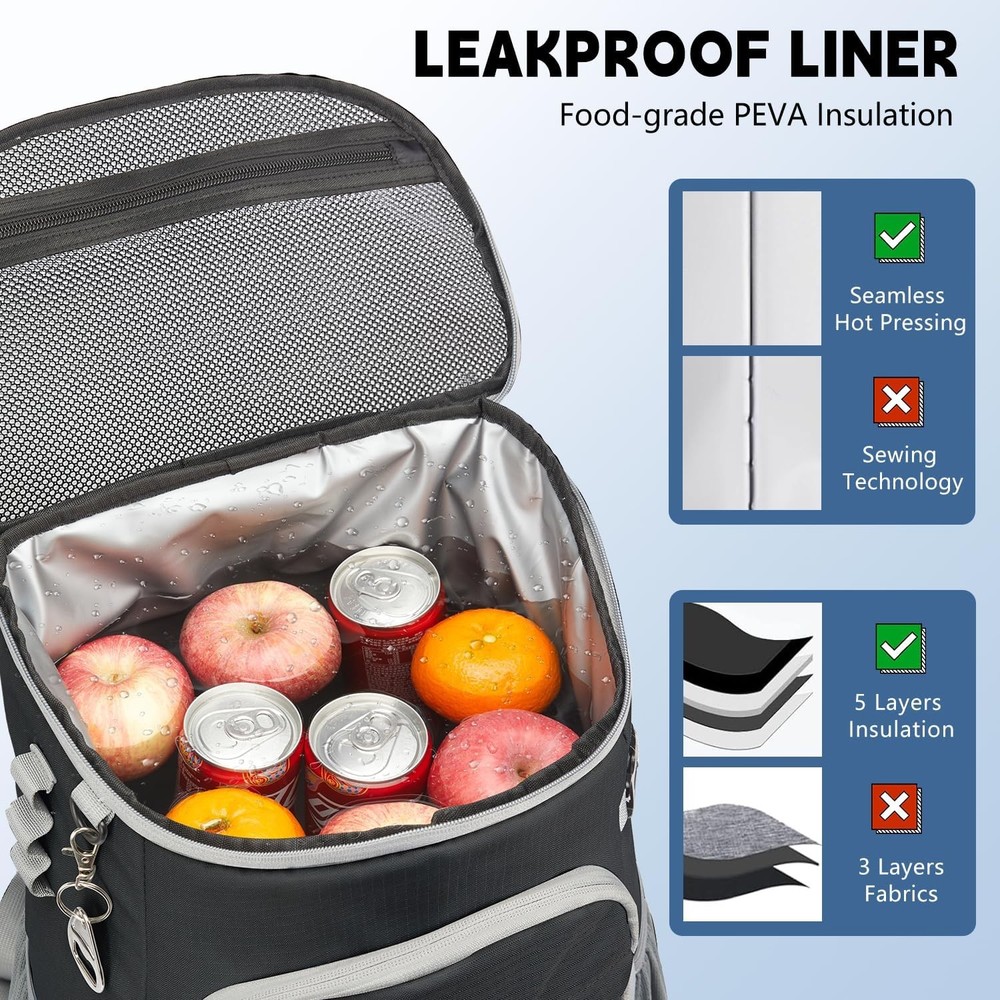 Cooler Backpack, 33 Cans Backpack Insulated Leak Proof, Large, Black Product Details Brand: COW STAUNCH Color: Black Material: Nylon Package Information: Bag Capacity: 10.89 Liters Product Dimensions: 7.1"D x 13"W x 19"H Item Weight: 0.9 Kilograms Special Feature: Outdoor, Insulated, Leakproof, Water-resistant, Portable Included Components: 1 * Beer Opener Model Name: Cooler Backpack Pattern: Letter Print Insulation Material: Polyethylene Vinyl Acetate (PEVA) Chamber Depth: 19 Inches Size: Large Manufacturer: COW STAUNCH Item Package Dimensions L x W x H: 15.71 x 9.45 x 4.88 inches Package Weight: 0.9 Kilograms Item Dimensions LxWxH: 7.1 x 13 x 19 inches Brand Name: COW STAUNCH Suggested Users: unisex-adult Number of Items: 1 Part Number: Backpack Cooler Style: All-season Hand Orientation: Ambidextrous Brand: COW STAUNCH Color: Black Material: Nylon Package Information: Bag Capacity: 10.89 Liters Product Dimensions: 7.1"D x 13"W x 19"H Item Weight: 0.9 Kilograms Special Feature: Outdoor, Insulated, Leakproof, Water-resistant, Portable Included Components: 1 * Beer Opener Model Name: Cooler Backpack Nylon, Polyethylene Vinyl Acetate (PEVA) Imported High-density Insulation Material 【Excellent Insulation】The backpack cooler is insulated with advanced PEVA material seal and thickened foam, keeping drinks and foods cold/hot/fresh for up to 16 hours with ice packs. Take the cooler backpack and enjoy fun time with your family and friends 【Leak-proof & Water-resistant】The cooler backpack adopts high-tech seamless hot pressing process for leak-proof and water-resistant nylon material. It weighs only 1.8 pounds, making it ideal for beach picnics, hiking, camping, trip, boating, baseball/golf games and work 【33 Cans Large Capacity】Measuring 19'' x 13'' x 7.1"( H x L x W) and can hold up to 33 cans (330ml). The insulated backpack is spacious enough to pack meals, beverages, beers, soda, wine, fruits and snacks for any outdoor activity. It makes for a good cooler backpack for both men and women 【Multiple Pockets】This portable thermal backpack is designed with 6 pockets to meet storage needs. It includes 1 main insulated compartments for cooling drinks & dry foods; 1 top zipper pocket for snacks; 2 front pockets for cutlery and other small items. 2 mesh side pockets for wine 【Unique Design】The ice chest cooler backpack includes a detachable beer opener and a survival whistle on the chest buckle for emergency situations. Additionally, the elastic rope net and 3 webbing holes can hold a picnic mat, keys and other tools. Also an choice as a lunch backpack, hiking backpack, camping backpack * Our Backpack Cooler, a reliable companion for camping, work, hiking, BBQ and travel, is made of Insulation material and leak-proof liner inside the insulated backpacks work together to ensure anti-leaking and keep food hot / cold for 16 hours with ice packs . Feature Material: Insulation Material and Leak-proof Liner Lightweight: 1.8 Pounds Size: 19"H * 13"L * 7.1"W 33 Cans Large Capacity, keep food hot / cold for 16 hours with ice packs . This cooler backpack for men and women is ideal for the people who often go for camping, picnic, beach, hiking and other outdoor activities, large enough to store 33 cans. Good for birthday, christmas, mother's day, father's day, valentine's day Structure Details 1 * Main Insulated Compartment with dual zippers, including a mesh pockets for cooling drinks & dry foods. 1 * Top Zipper Pocket for snacks or small items. 1 * Dedicated Front Cutlery Storage Pocket 1 * Front Zipper Pocket for easy access your stuff 2 * Side Mesh Pocket 1 * Front Elastic Rope Net Package includes 1 * Cooler Backpack 1 * Beer Opener