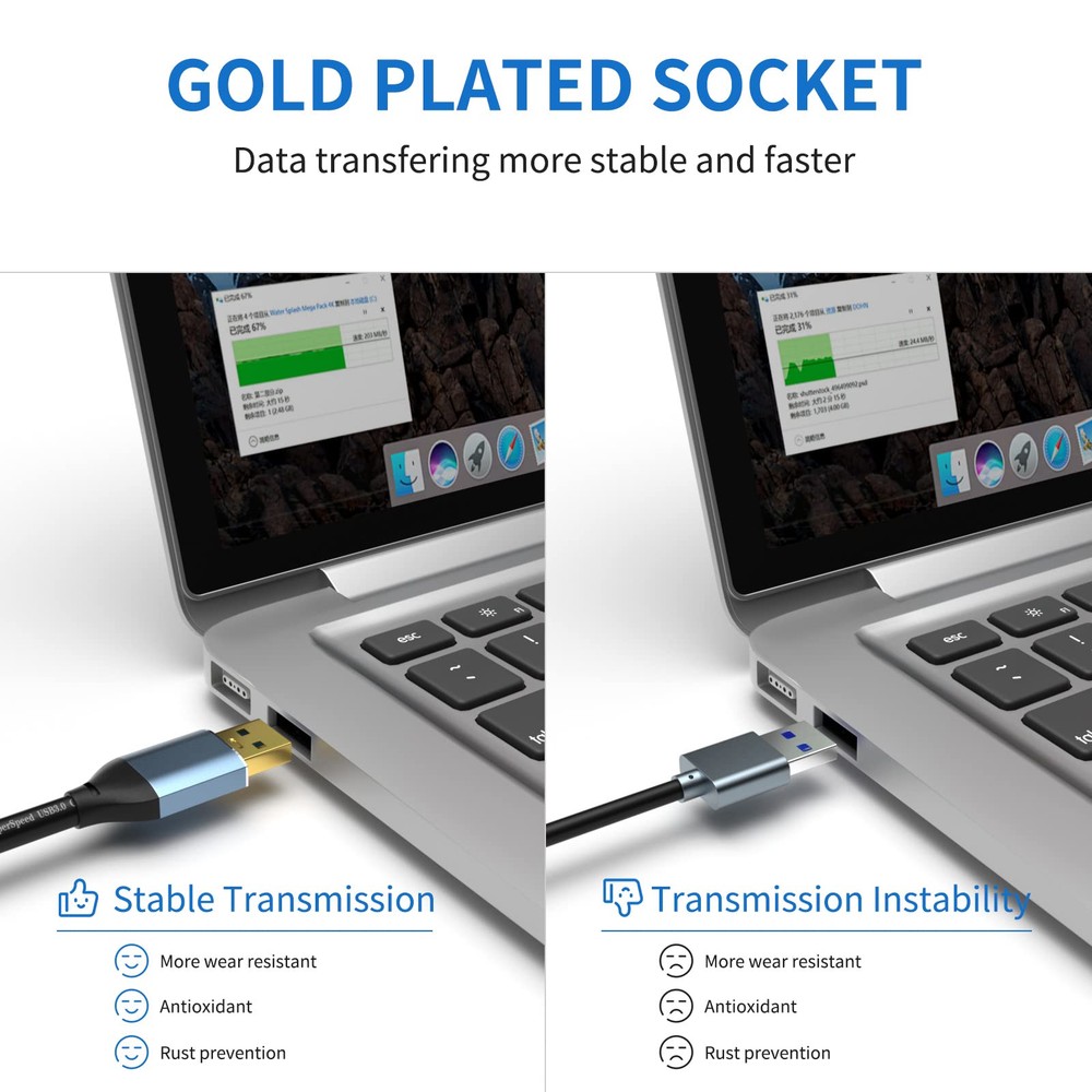 This USB 3.0 extension cable is a game-changer! The 33ft length gives me plenty of reach without losing speed—charging stays fast at 2A, and data transfers hit 5Gbps smoothly. The sturdy build feels durable, and it works flawlessly for syncing devices or extending my setup. No lag, no drop in performance—just reliable connectivity. Perfect for home offices or entertainment systems where extra length is needed. Highly recommend for anyone needing a long, high-speed USB extension!