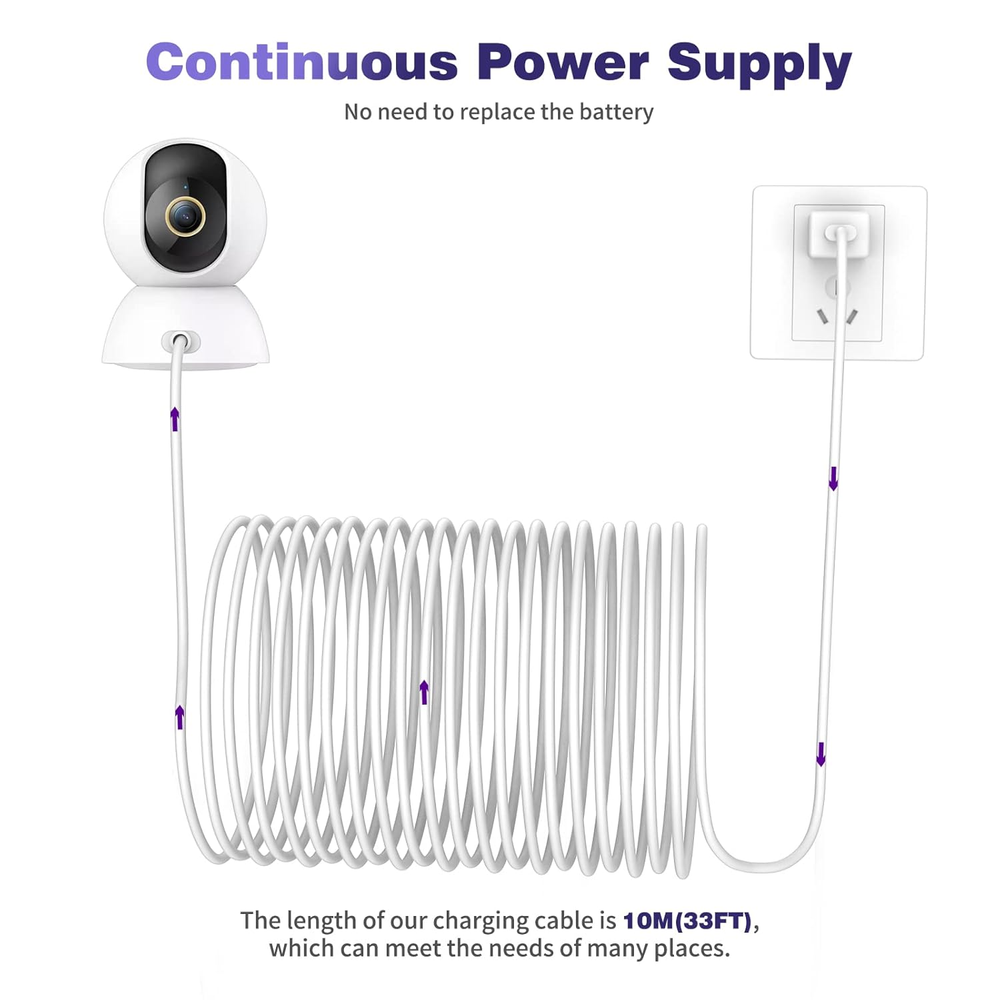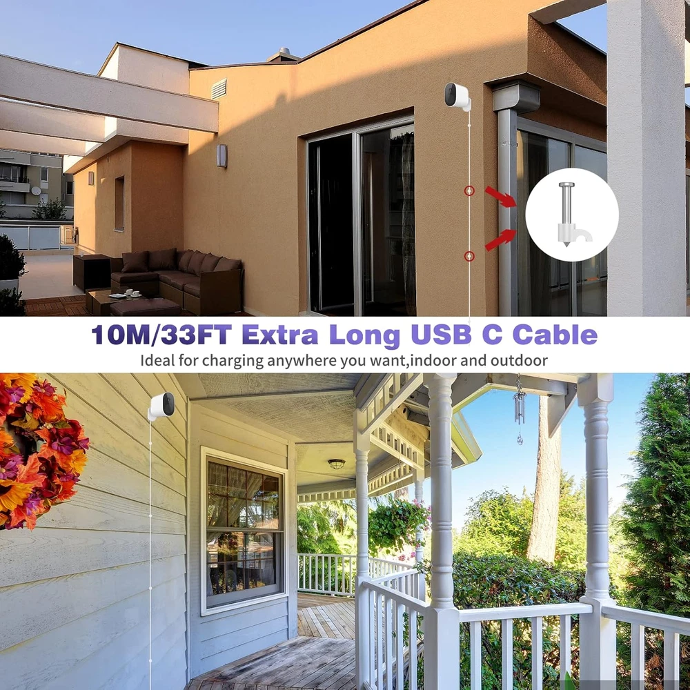 This long USB-C power cable is perfect for keeping CCTV cameras running nonstop—no more battery hassles! The 33ft length gives plenty of flexibility for setup, and the durable PVC coating prevents tangles while protecting the wiring. Works reliably for continuous power, just note it’s designed for cameras, not fast charging phones. Highly recommend for security setups!