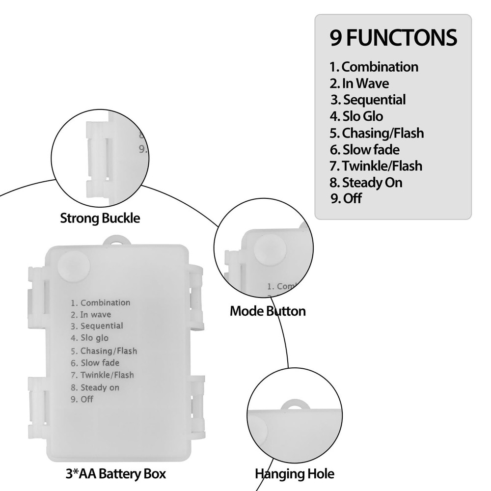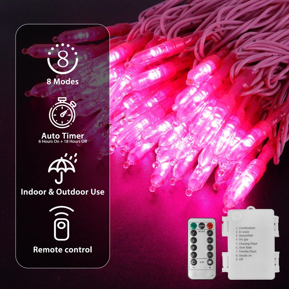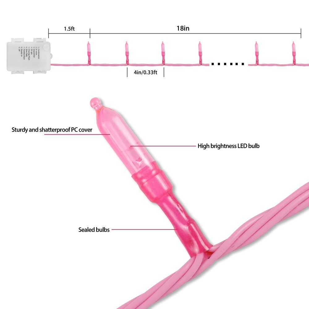 Filltown Pink Lights Battery Operated String Lights, 33Ft 100 LED with Auto Timer & 8 Modes & Remote Control, Shatterproof Waterproof for Outdoor Indoor Valentine's Day Wedding Party Home Battery Operated Pink String Lights Pink Wire: Battery-powered string of lights come with 100 led bulbs and a total length of 33 ft. Wide coverage to accent your Christmas tree, decorate your indoor/outdoor space, enhance any holiday atmosphere with its beautiful lighting effects and add a charming holiday glow to your decor. 8 Lighting Modes: Press the black button on the battery box to select the mode you want: Combination, In wave, Sequential, Slo glo, Chasing/Flash, Slow fade, Twinkle/Flash, Steady on. Allow you to hang anywhere, no plug needed, energy-saving and low consumption. Upgraded with Remote Control: These battery-operated led lights also come with remote, which is convenient to a greater extent. And it will be more convenient for you to control the string of lights when used at a farther or higher place. The remote control distance is up to 26-32 feet. Timer Function: Built-in timer (6 hours ON and 18 hours OFF) is convenient to control turn on/off the string lights and keep battery last as long as possible. This battery operated string lights is warm pink, no harsh on eyes at night, comfortable and relaxing. Very suitable for your Valentine's Day and daily decor. UL Listed Long-Lasting and Safe: The mini Christmas lights are powered by 3AA batteries (not included), no extra cords or sockets required, safe and convenient to use, the bulbs remain bright and cool to touch even after long hours of use. Wide Range of Applications: These battery operated led mini string lights is great for Christmas tree, roof, roofline, window, door, corridor, balcony, bedroom, garden, fence, hallway, restaurant, yard and so on. SHIPPING Domestic Buyers - We have confidence in our products, but if you are not fully satisfied please contact us within 30 days of purchase and you will get full refund. - We ship within 3 business days of payment, usually sooner - We offer FREE shipping on all orders! - We only ship to the lower 48 states, no APO/FPO addresses or PO Boxes allowed International buyers – please note: Import duties, taxes, and charges aren't included in the item price or postage cost. These charges are the buyer's responsibility. - Please check with your country's customs office to determine what these additional costs will be prior to bidding or buying. * Order Cancellation Policy ** You can return a product for up to 30 days from the date you purchased it. 1. The seller reserves the right to cancel the special case only due to eBay cancellation fee. 2. The decision of seller is the final. 3. The seller will respond to the cancellation request within 2 business days. Please wait for the result of cancellation. 4. In case the cancellation is not completed by some reasons, the buyer can follow the options below to get the refund. 4.1 The buyer can reject the item when it arrives. 4.2 The buyer can send the item back to the seller within 30 days If the buyer receives item (USA Shipment ONLY). The seller will provide the FREE return label to the buyer when the buyer opens " Return Item" case on eBay by using the reason as "Change my mind" ONLY. 5. When buyer has placed the order. The order will be processed and completed by automatic warehouse system within 5 minutes. In case that buyer sends the cancellation request after 5 minutes of placing the order, the request will be rejected. **Sending direct message to cancel the order is not allowed for every case.* Return Policy For the return case - If buyer would like to return the items for refund or replacement, please CONTACT SELLER to receive the free return label from seller. The refund or replacement will be processed with the tracking number of return label which is provided by seller only. The other ways of return which are not approved by seller will not be processed for the refund or replacement.