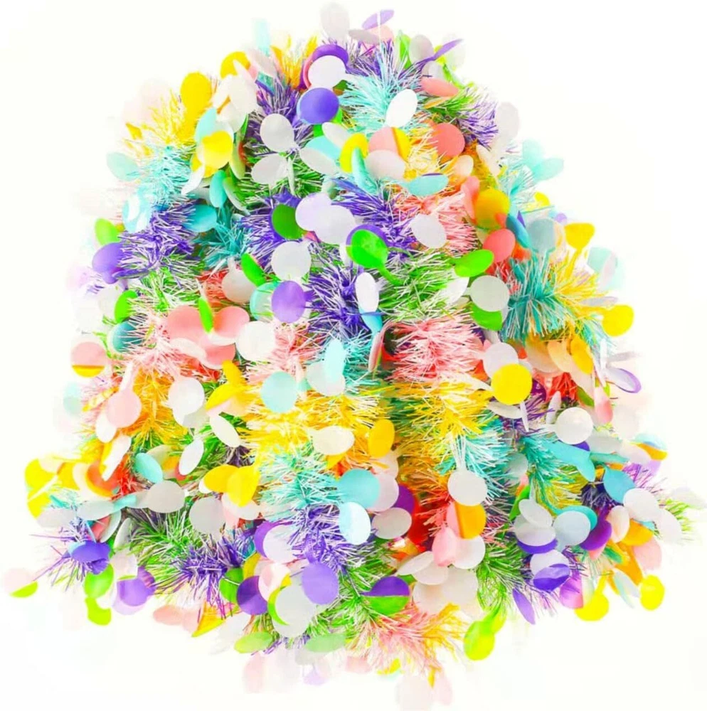33ft Easter Tinsel Garland,Colorful Egg Tinsel Twist Garland with Confetti Sprin