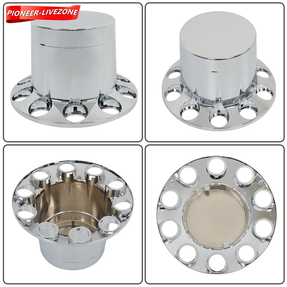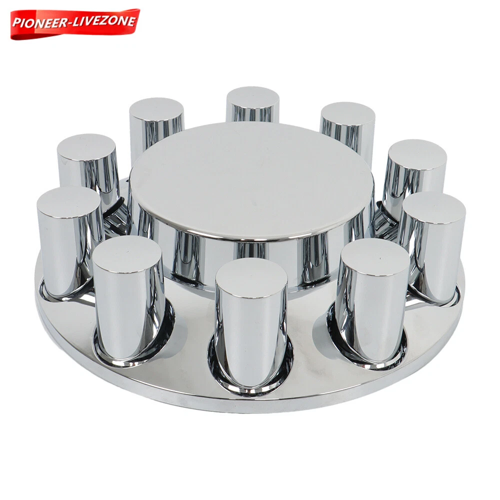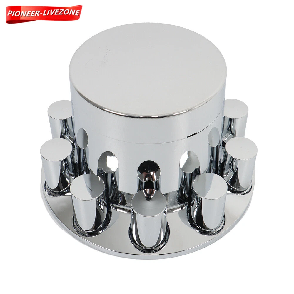 33mm Chrome Flat Top Hub Cover Kit Lug Nut Wheel Axle Covers Semi Truck 6PCS
