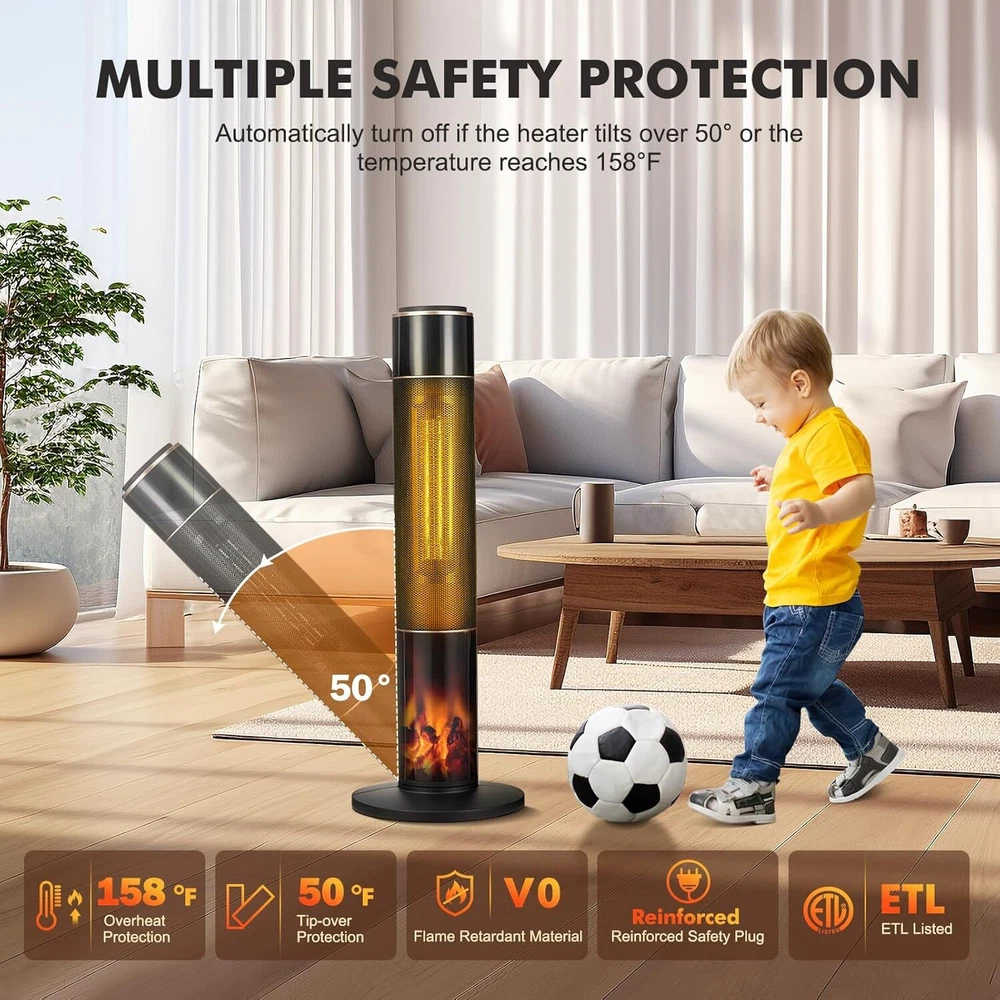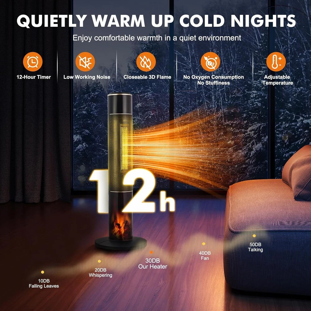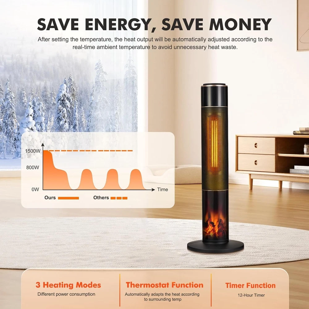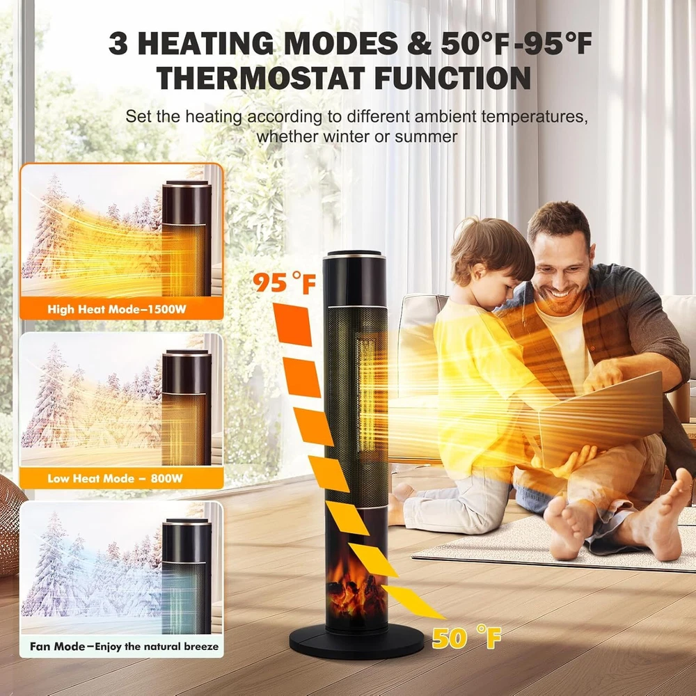 Description: Description: 1. Safety: Made of V0 flame-retardant materials with multiple safety features including built-in smart tip-over protection, overheat protection, and enhanced safety plug, once overheated or accidentally dumped, this space heater will automatically shut down. Safe to use for family with children and pets 2. Design: 12-hour timer, remote control, portable handle for easy warmth in cold winter. 12-hour timer with automatic shut-off. Top touch button and remote control for easy operation. Remote control distance up to 20 feet. Concealed handle on the back for lightweight portability. It's time to add a beautiful space heater to your home and enjoy a cozy winter with your family! 3. Function: The room heater has 3 modes: 1500W high heat, 800W low heat, and fan mode. Meanwhile, the Adjustable Space Heater Thermostat adjusts the heat output based on the ambient temperature to maintain a constant temperature, saving you more money on your electric bill. Use the thermostat to personalize your warmth from 50 to 95°F in 1°F increments! 4. Tip: Heats up quickly in seconds with a 1500W high-efficiency PTC heating element. The 34-inch tall space heater with a 70° oscillation range has a larger, wider heating range than other heaters, making it ideal for spaces up to 300 sq. ft, including offices, bedrooms, and living rooms 5. Occasion: A realistic 3D flame makes this electric heater stand out while providing visual warmth and comfort, so you can use it as a decoration during festive seasons like Christmas or Halloween. It can also be used as a soothing night light, the low-noise heater with timer is perfect for a restful night's sleep! Package Include: 1x Space Heater Payment Delivery Returns Feedback We accept Payoneer only. All major credit cards are accepted through secure payment processor PayPal. Payment must be received within 7 business days of auction closing. If you have bought multiple items from me, you can send me one payment for all the items instead of paying for them individually. When you click the Pay Now button, eBay will automatically determine if there are other items you have won or purchased from me and will combine them for your review. NOTE: Import duties, taxes and chargers are not included in the item price or shipping charges. These charges are the buyer's responsibility. Please check with your country's customs office to determine what these additional costs will be prior to bidding buying. 1. We will delivery out at the handing time when we receive the payment. 2. The delivery time is 3-5 business days to US by usually time.The parcel maybe delay 1-2day of the weekend.Due to the bad weather,Holidays,Hot Season ect.the parcel maybe delay,If you have any problems,mssage us,we will try our best to solve it. 3. We ship to your eBay address. Please make sure your eBay address is correct before you pay. 4. If you want to change the shipping address,message us before our send out. 5. We cannot deliver your order if your state is PR. 1. If you donot receive the items at the delivery time,the parcel has broken/missing,Please message us before you open case/return,we will try our best to solve it. 2. We offer a 30 day return policy from checkout winning date. 3. An RMA number is required for all returns. Message us for return instructions. Items Returned without a RMA number will not be processed. 4. Items defective upon receipt must be packaged in their retail packaging as if new and returned with a detailed description of the problem. 5. Return shipping fees are not refundable. We reserve the right to decline any returns if the above guidelines are not followed. If you are not satisfied with the item for any reason, please do not quick to leave negative/neutral feedback even open request and case without any communication with us. We devote ourselves making EVERY CUSTOMER in 100% Satisfactory and resolve any problem. Thank you for your understanding and recognition,we are always leave positive feedback to all our customers. Reply: All replies will be sent to your email box, if you do not get response within 24 hours (Sat. & Sun. excluded) please check your eBay My Messages in case that our emails will be filtered automatically by your settings.