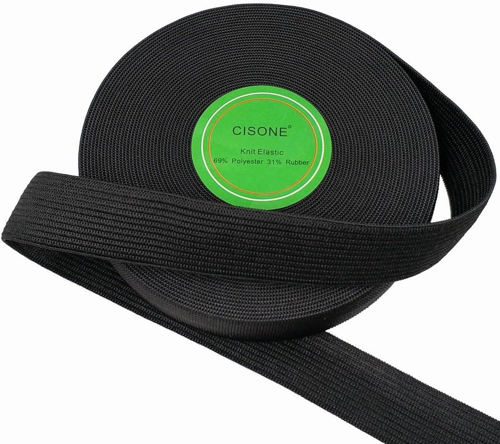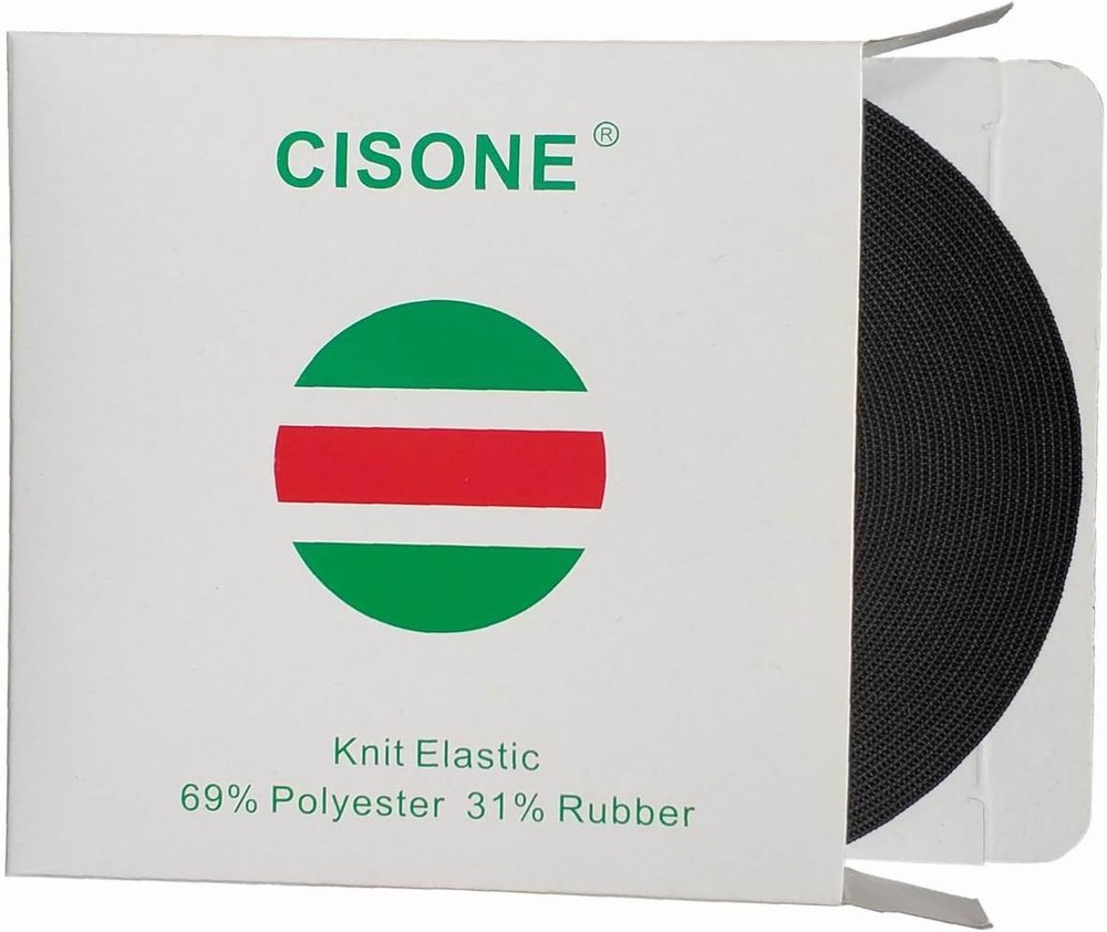 Knit Elastic 3/4 Inch Wide Black Heavy Stretch High IN Wide, Product Details Product Dimensions: 4 x 4 x 0.75 inches Is Discontinued By Manufacturer: No Item Weight: 3.12 ounces Manufacturer: CISONE Country of Origin: China 3/4 inch wide, 10 yard in length, color: black. 69% polyester, 31% rubber. Heavy knit high elasticity. Flat elastic, extends in two directions, it doesn't narrow when stretched. Heavy knit elastic perfect for home sewers and any DIY production. Great for wig, waistbands, sleeves, suspenders, sweat bands and more. Knit elastic bands is designed to be a bit stiffer and offer more "kick" to its stretch than other elastics. it offers a stiff, strong stretch and can be used on heavier fabrics.
