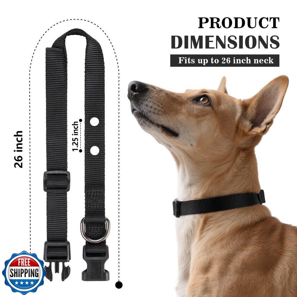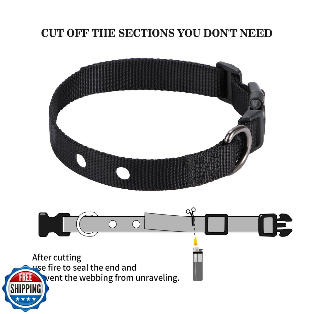3/4 Inch Dog Shock Collar Replacement Strap with 2 Holes - Compatible with Most Brands of Ecollar Dog Fences and Training Collars, Black Features 3/4 inch wide - adjustable from 9 to 26 inches, suitable for dogs of all sizes. Best Value! Our collar fits perfectly on these models: Pet, Safe: UL-250, PUL-250, UL-275V, UL-275M, UL-275D and PUL-275, PIF-275-19, PRF-275-19, Invisible, Fence Brand: Micro-Lite, Extreme (Active and Stubborn), Sport Dog(SDF-R) and so on. Thickened webbing and special buckle ensure that the collar will not come loose easily. Works with top electronic dog training systems. Comfortable for dogs of all sizes. Quick-release buckle makes it easy to remove when not needed. If you are looking for a long lasting collar that doesn't come loose easily, this collar is the perfect for you. Shipping Free & Fast Shipping: We offer free shipping to most of the USA with a normal delivery time of 3-7 days. However, due to the current situation, additional delivery time (up to 3 weeks) may be required for some items. Alternative Carriers: We may use alternative carriers (e.g., USPS, FedEx, UPS) to ensure your package arrives safely and on time. Due to the use of multiple carriers, we are unable to provide a tracking number automatically. Handling Time: Orders are processed and shipped within 1-2 business days of receiving cleared payment. Shipping Restrictions: Shipping to Alaska, Hawaii, Puerto Rico, Guam, and other US territories may incur shipping charges or delivery restrictions. Please contact us before ordering, or your order can be refunded/cancelled. State Restrictions: Certain items may not be shipped to California due to state regulations. Contact for Tracking Updates: If you require tracking updates or have any concerns about the delivery of your order, please feel free to contact us, and we will be happy to assist you. Return Policy 30-Day Hassle-Free Returns: If you are not completely satisfied with your purchase, you can return the item for free within 30 days of receiving it for a full refund or exchange. Easy Return Process: Contact us, and we will provide you with a prepaid return shipping label and detailed instructions. No Restocking Fee: There are no restocking fees for returns. However, the buyer is responsible for return shipping costs if the return is not due to a seller"s error. Refund Processing: Refunds will be processed within 1 business day of receiving the returned item in its original condition. Feedback Your feedback is extremely important to us. We strive to provide the best products and customer service possible. If you are satisfied with your purchase, please take a moment to leave us a positive review. If you have any concerns or issues with your order, please contact us before leaving negative feedback. We are committed to resolving any problems and ensuring your satisfaction. Contact Us If you have any questions or concerns, please feel free to reach out to our customer support team. You can contact us through the eBay messaging system. We are available Monday to Friday, 9:00 am to 5:00 pm EST, and we will do our best to respond to your inquiry within 24 hours. Thank you for supporting our small family business!