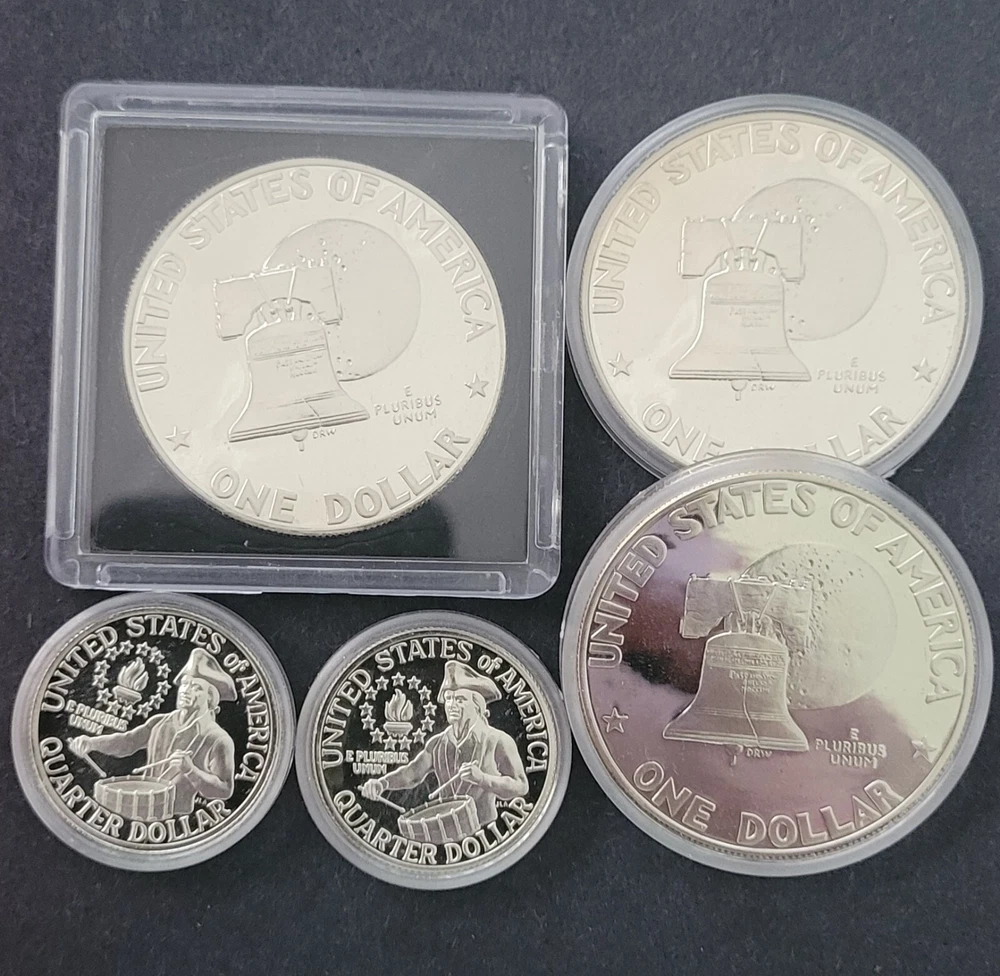 3-40% Silver PR 1776-1976 S 1$ EISENHOWER PLUS 2-40% Silver Washington Quarters